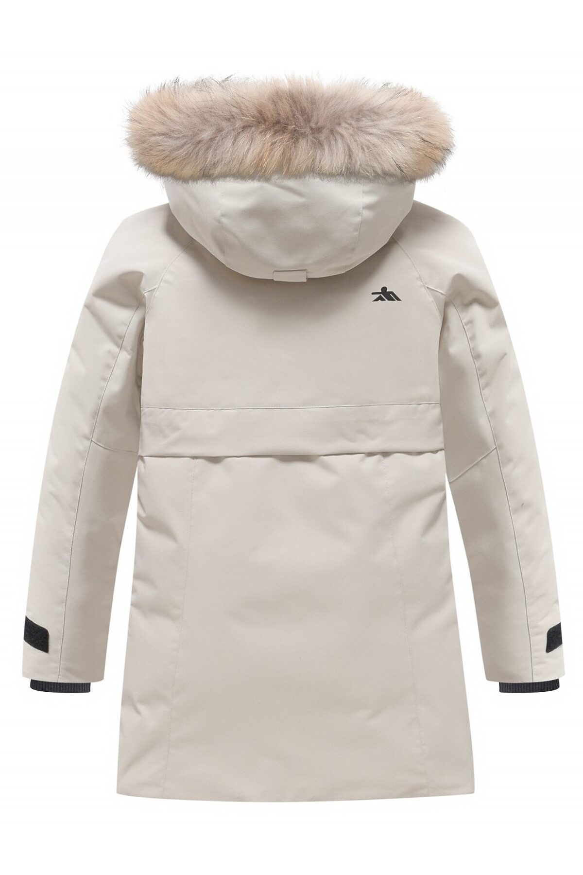 Стильная и практичная зимняя парка для девочки подростка создана для комфортных прогулок в холодное время года. Модель выполнена из прочной водо- и ветронепроницаемой ткани, утеплена плотным слоем и дополнена мягкой подкладкой из искусственного меха, что гарантирует тепло даже в мороз. Особое внимание заслуживает съёмный ремень и пояс, которые подчёркивают силуэт и позволяют легко регулировать посадку. Для удобства в торговых центрах и помещениях парку можно расстегнуть или снять ремень, превращая её в более лёгкий вариант носки. Капюшон с меховой отделкой надёжно защищает от ветра и снега, а фиксаторы на рукавах, по линии талии, на капюшоне и по низу парки помогают сохранить тепло и защитить ребёнка от продувания. Эта парка станет универсальным выбором: она одинаково уместна и на улице зимой, и в торговых центрах или школе. Родителям понравится её практичность, а девочке — стильный современный вид.
