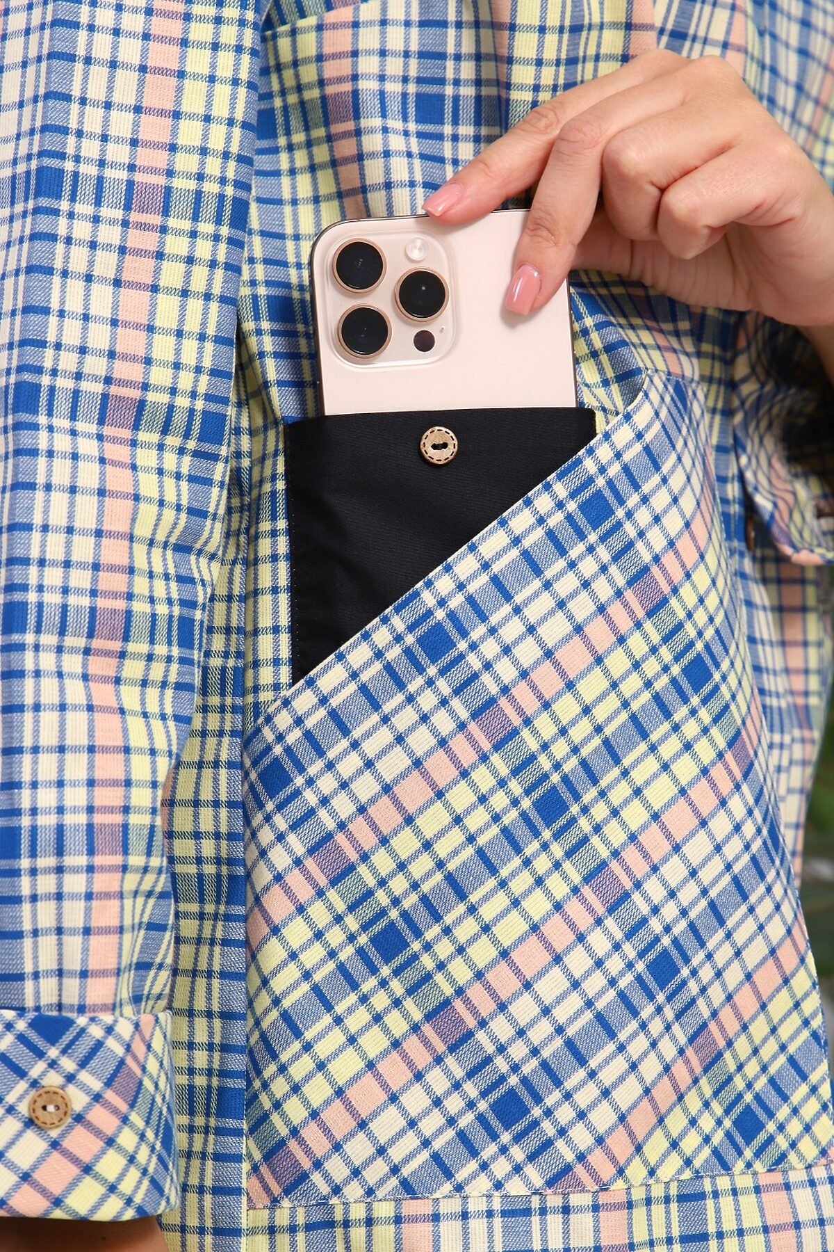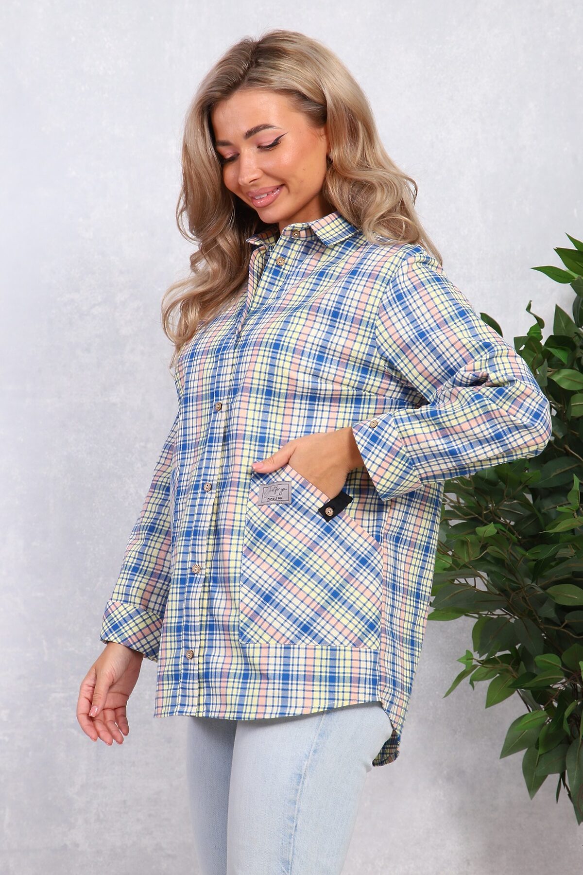 Женская рубашка с очень удобными карманами-кенгуру и специальным акцентным карманом для смартфона (пластиковых карт, ручек, очков и т.п.), один из карманов-кенгуру можно застегивать петелькой на пуговицу. Рукава с манжетом, который подгибается - благодаря этому длина рукава регулируется в пределах 5 см (можно сделать чуть короче, чуть длинне). Крой рубашки очень комфортный в ношении, не сковывает движений. Прямой силуэт стройнит. Ткань шотландка (относительно плотный материал, похожий на лён/полулен), 100% хлопок. Замечательный выбор для прогулок, для работы. Наверняка, станет Вашей любимой рубашкой.
