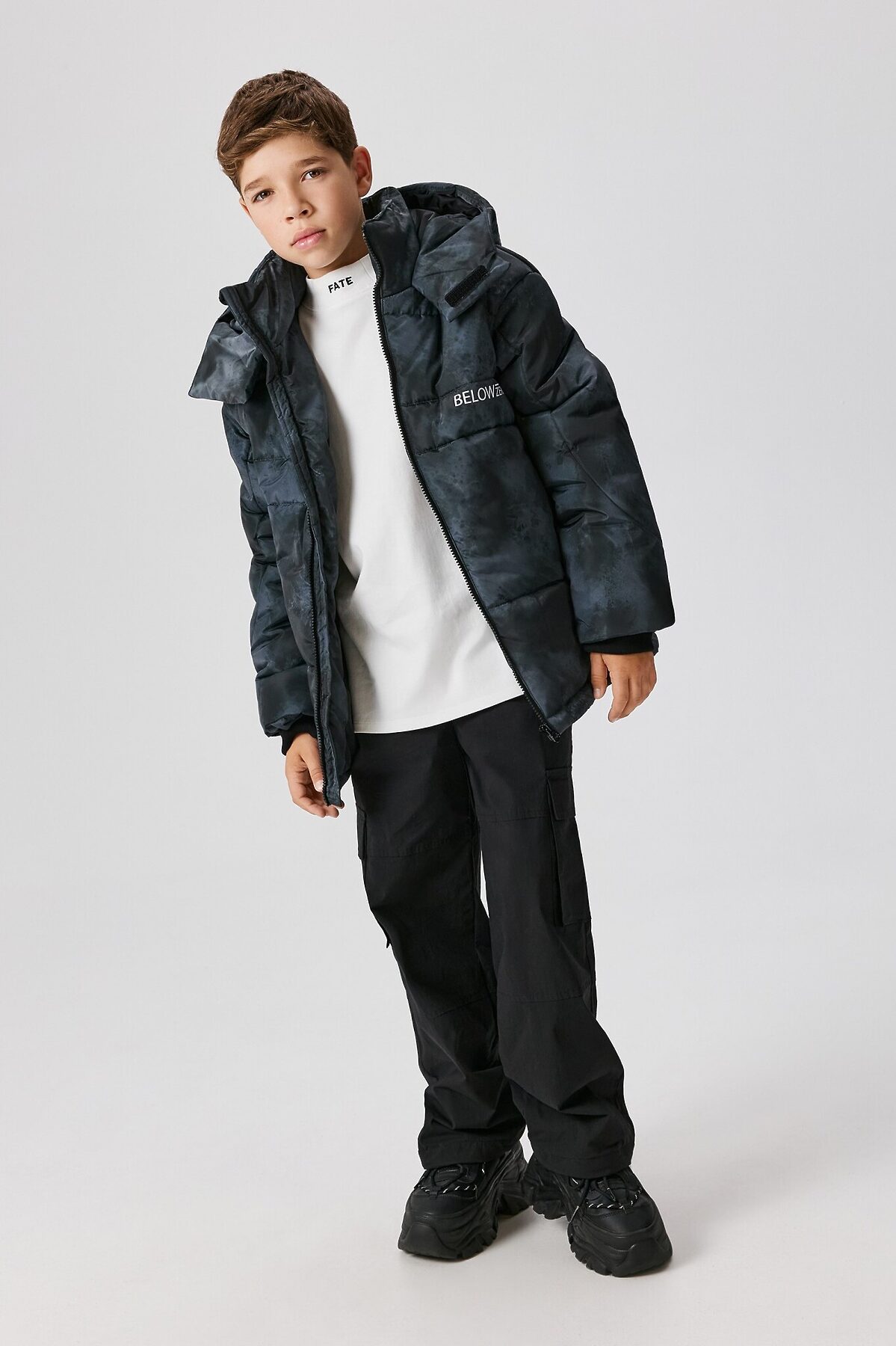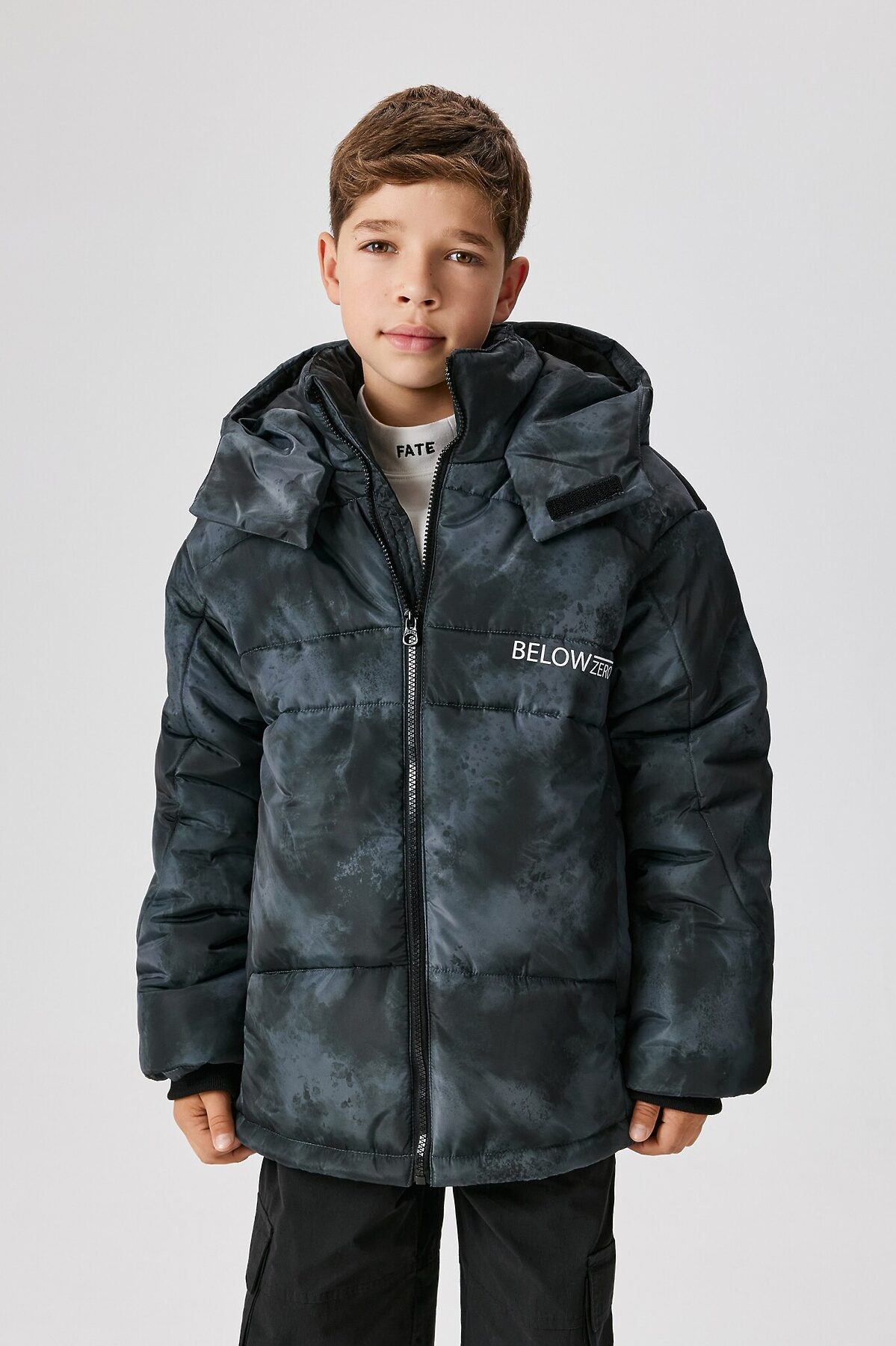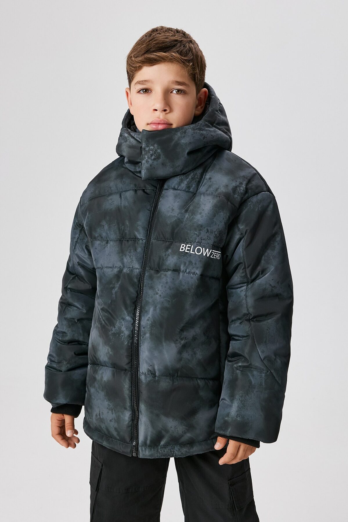 Детская утеплённая стёганая куртка для мальчика выполнена из ткани с водоотталкивающей пропиткой, которой не страшен мелкий дождь или мокрый снег. Подкладка выполнена из стандартной подкладочной ткани. Вид утеплителя – синтепон (350 гр/м2). Рекомендованный температурный режим от 0 до -25 градусов. Застёжка на молнию с внутренней ветрозащитной планкой облегчает одевание. Защита от защемления подбородка добавляет удобство в ношении. По низу изделия расположен эластичный шнур со стопперами, что обеспечивает лучшее прилегание к телу. Два прорезных кармана на липучках позволяют хранить перчатки или согревать руки. Несъемный капюшон застегивается на липучку, защищая от холодного ветра. Спереди расположен текстовый принт "BELOW ZERO" англ. - "Ниже нуля", что придает изделию стильный акцент. Низ рукавов дополнен манжетами для лучшего прилегания к телу и сохранения тепла. Добавьте куртку в темно-сером цвете к брюкам и водолазке (20110520001), чтобы создать теплый и стильный лук на прогулки.