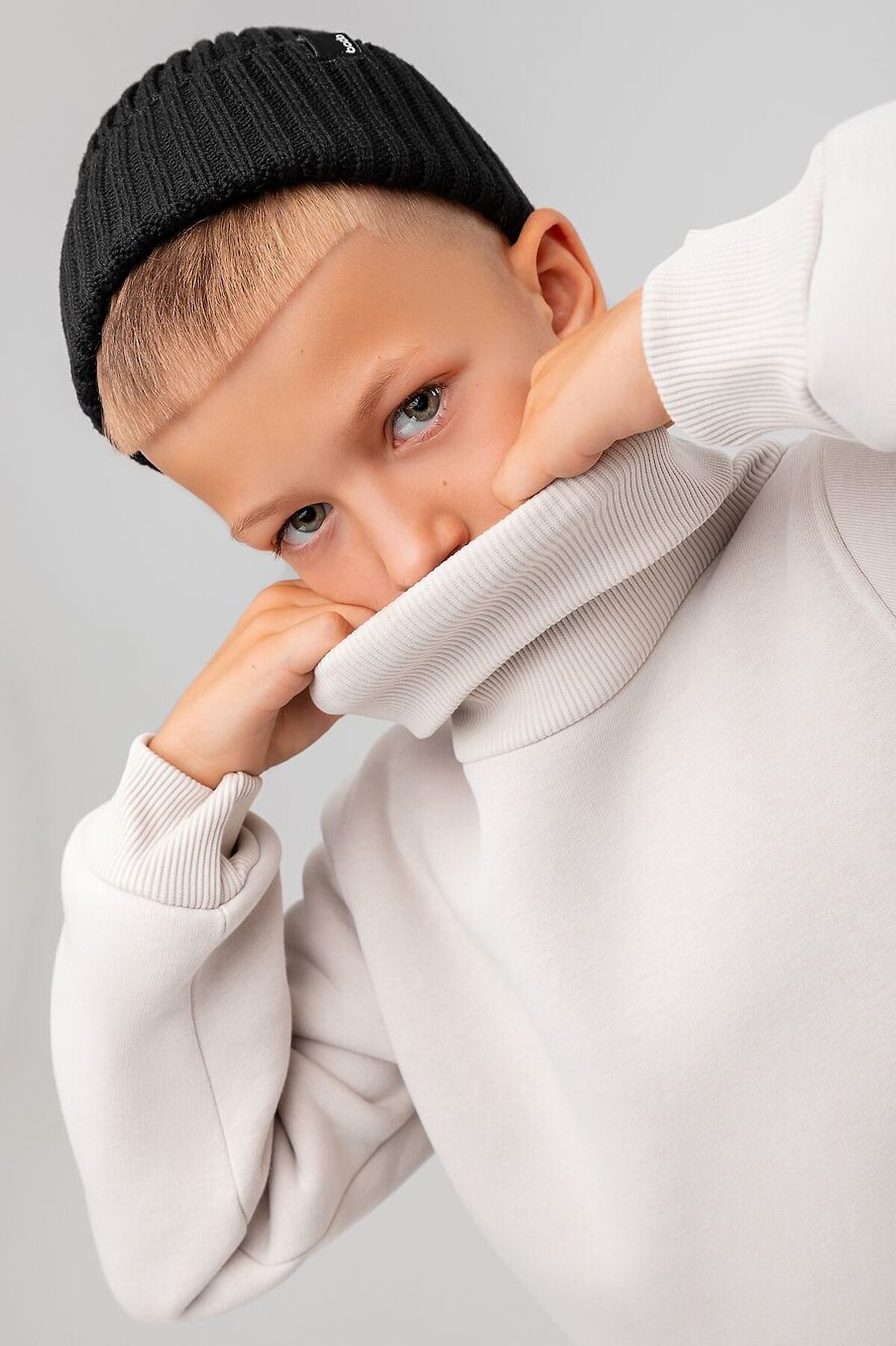 Детский костюм. Толстовка с воротником-стойка, рукава на манжетах, полуприлегающий покрой. Брюки- джоггеры, детали: пояс - эластичная резинка, низ изделия- манжеты. Состав: футер трехнитка с начесом 80% хлопок 20% полиэстер