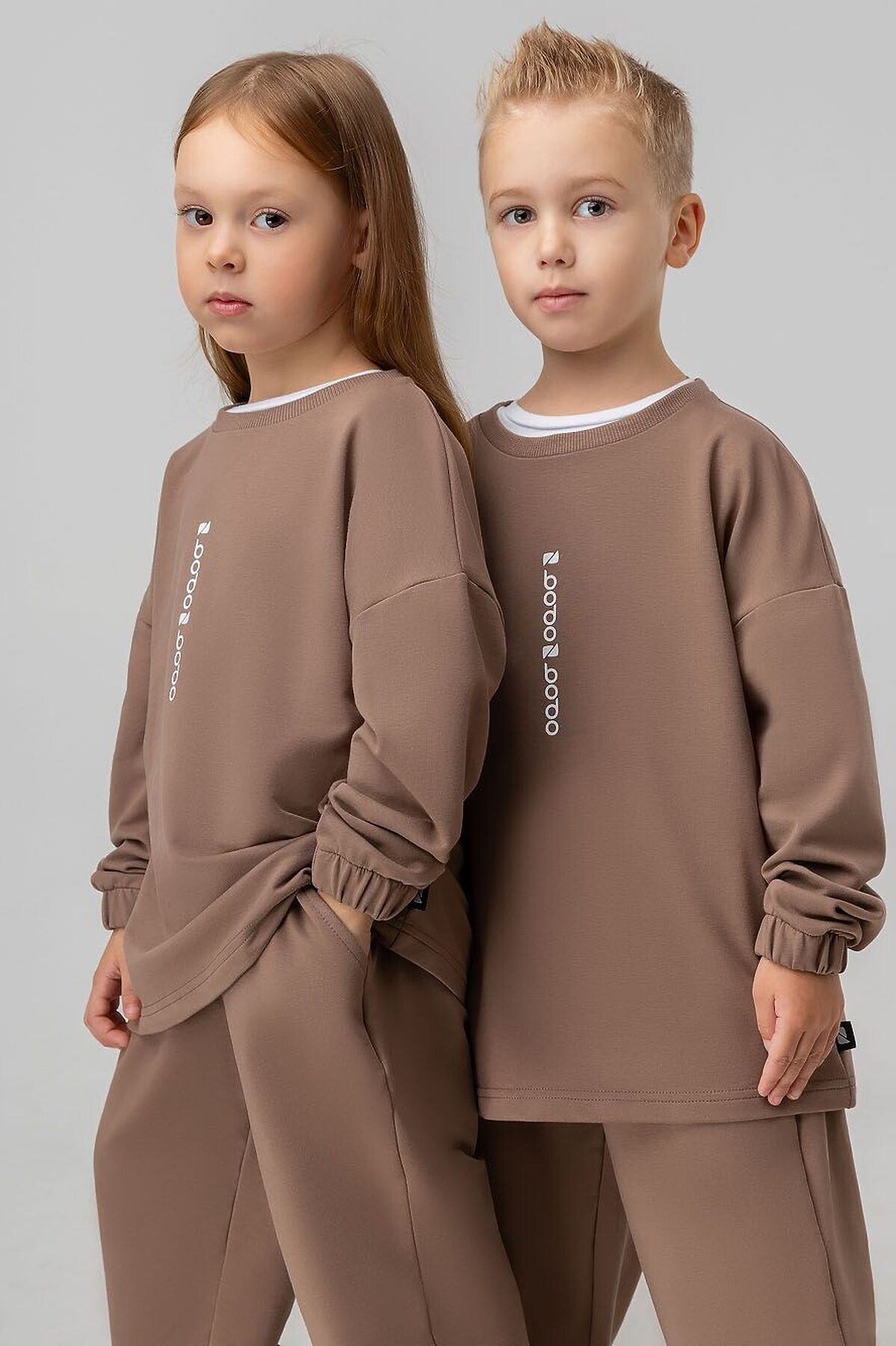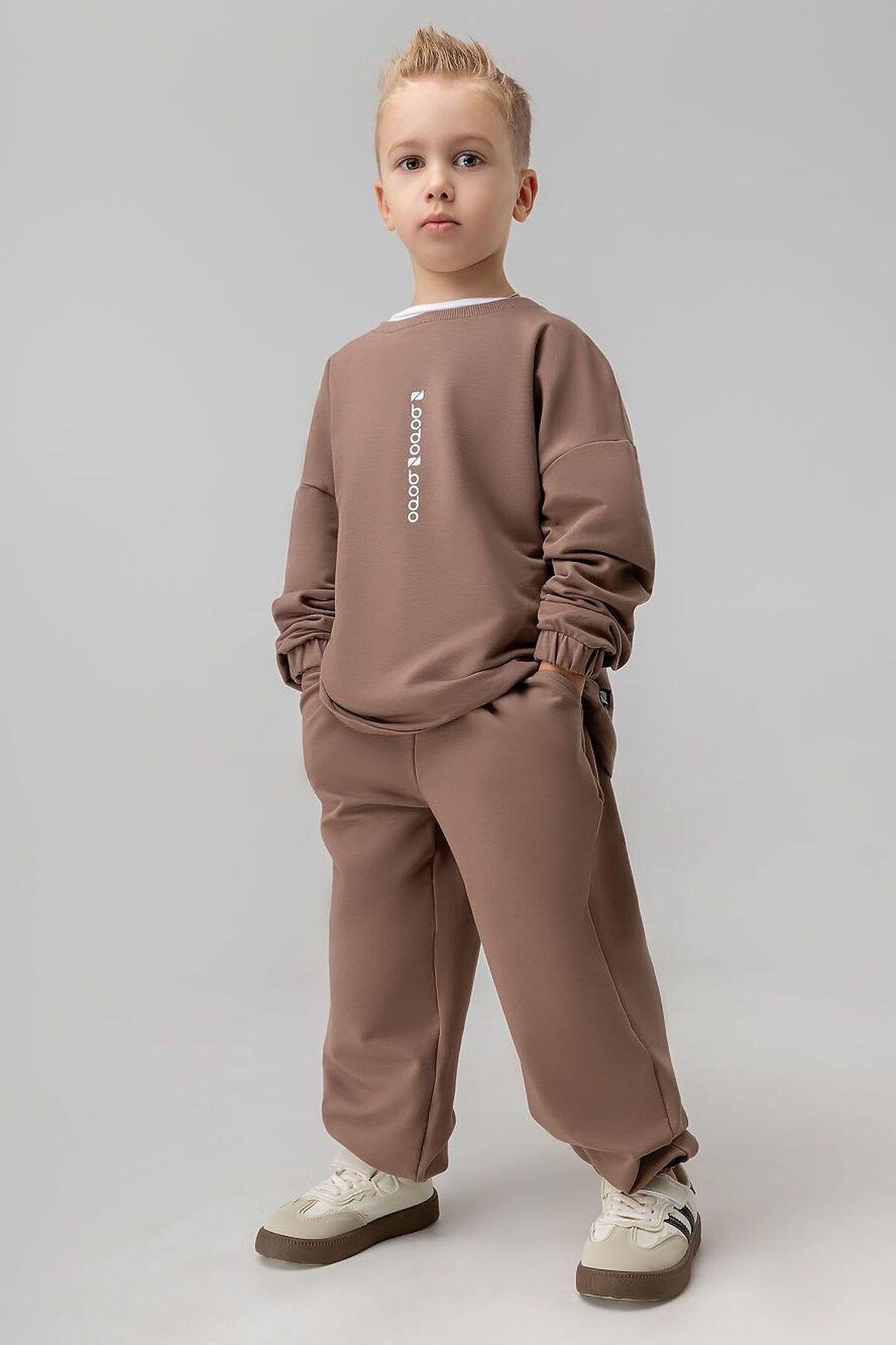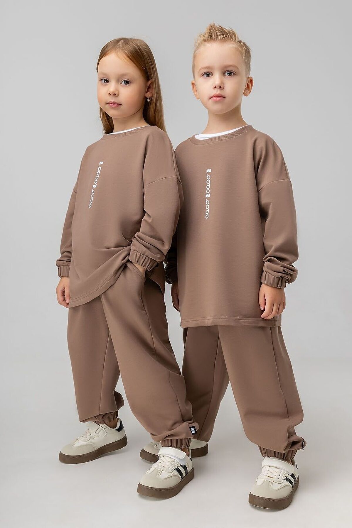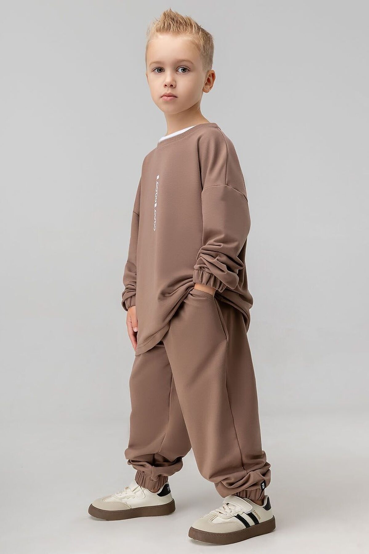 Костюм детский. Свитшот, полуприлегающий покрой, рукава на манжетах, Брюки- джоггеры. Детали: пояс - эластичная резинка, низ изделия- манжеты, карманы с отрезным бочком. Состав: футер двухнитка 92% хлопок 8% лайкра