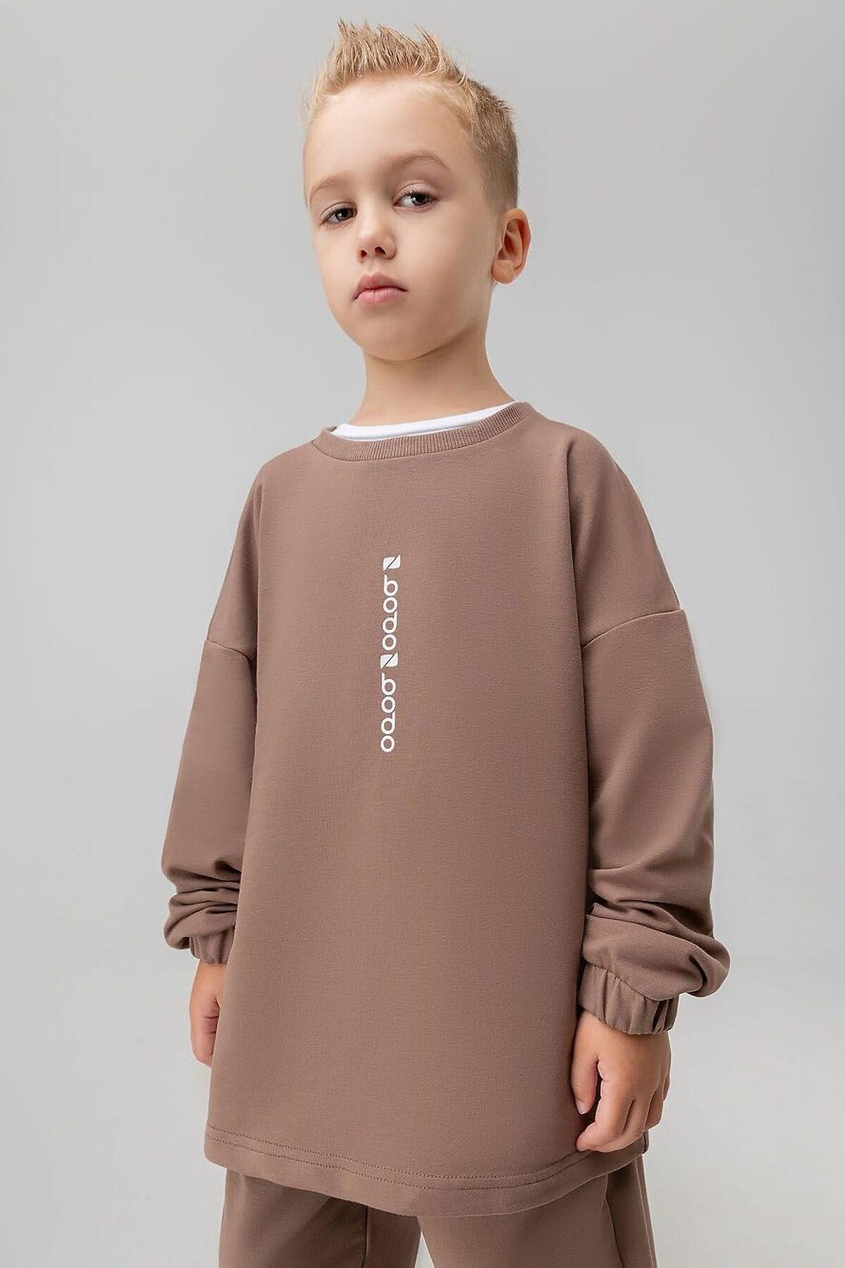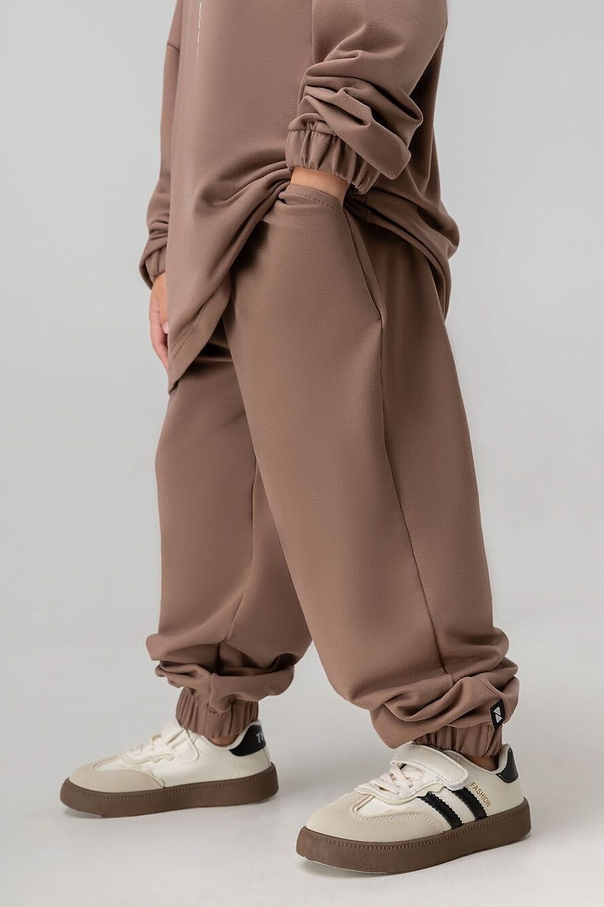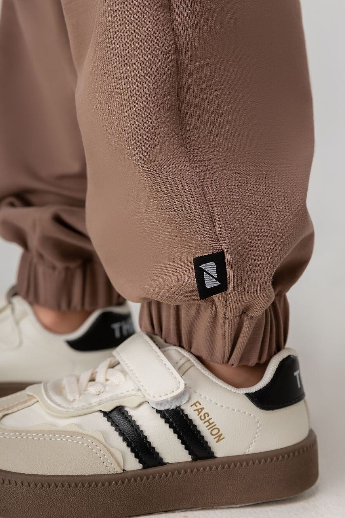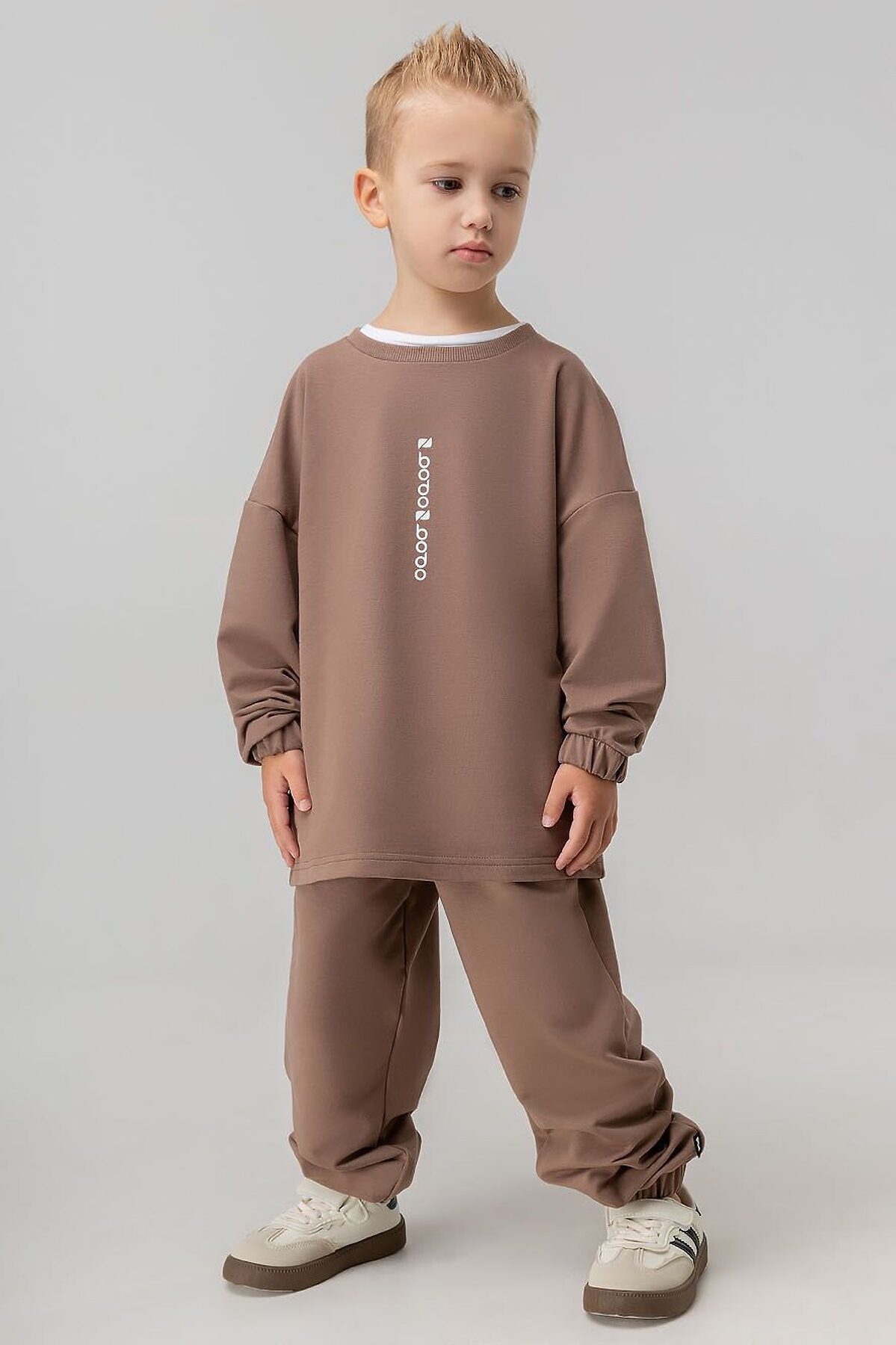 Костюм детский. Свитшот, полуприлегающий покрой, рукава на манжетах, Брюки- джоггеры. Детали: пояс - эластичная резинка, низ изделия- манжеты, карманы с отрезным бочком. Состав: футер двухнитка 92% хлопок 8% лайкра