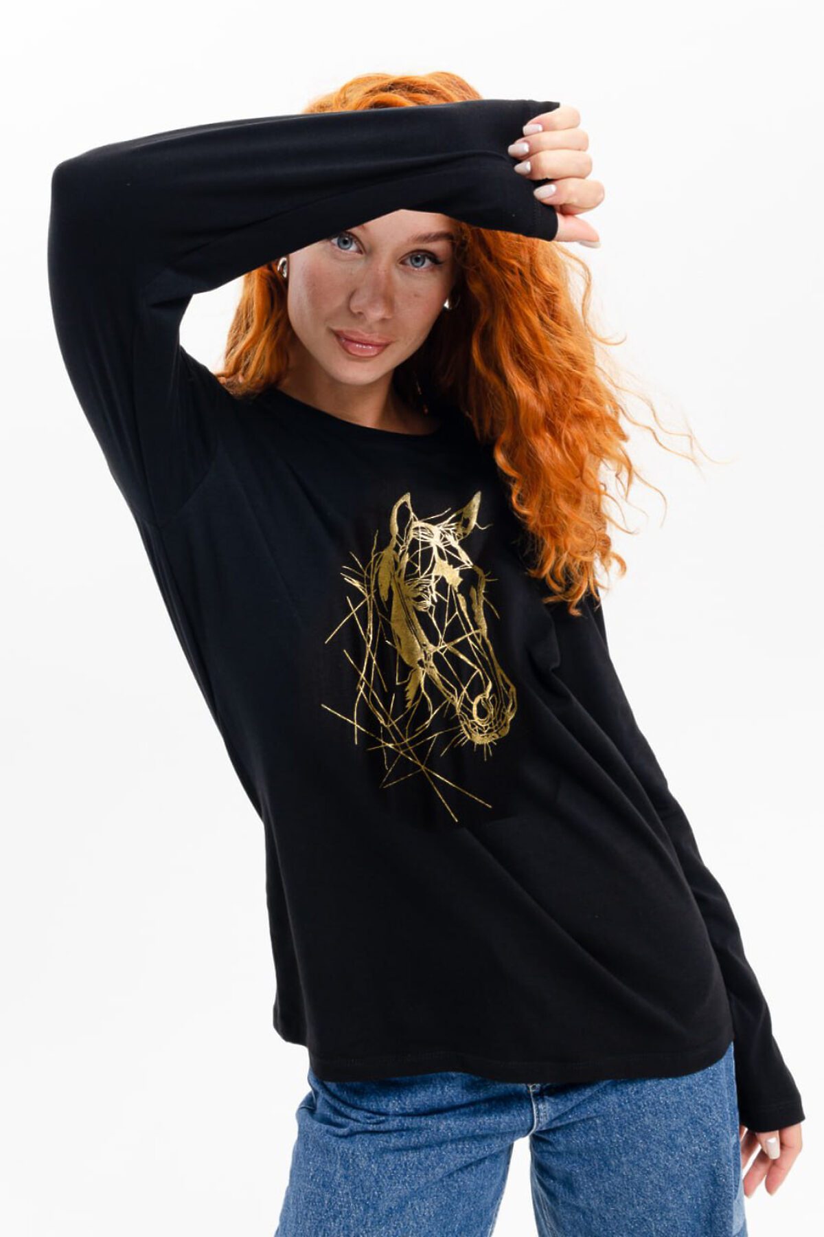 8574 футболка с дл.рукавом унисекс НАТАЛИ, черный +нг