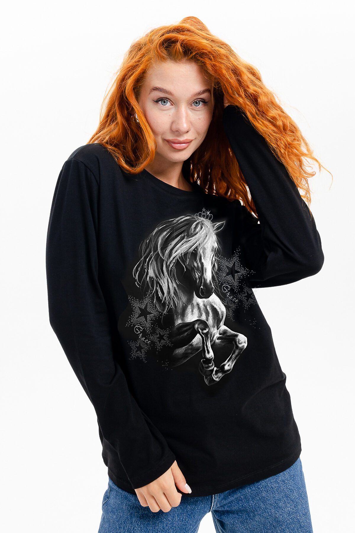 Футболка 8575 НАТАЛИ, черный + лошадь грация