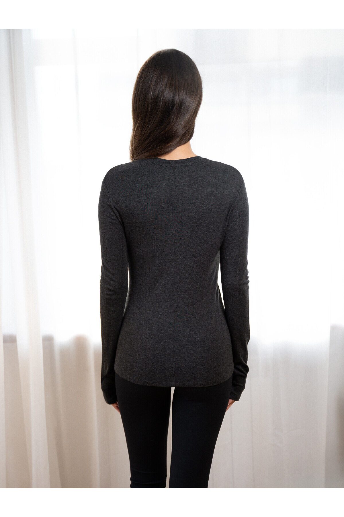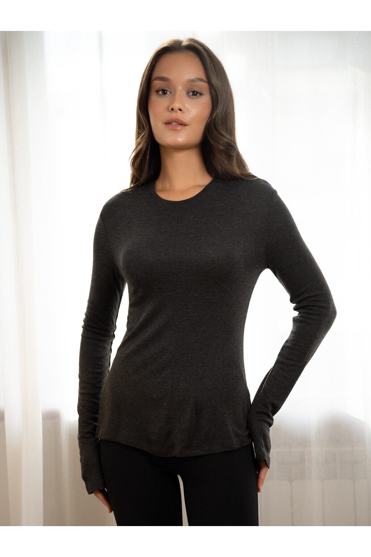 Женский лонгслив Indefini выполнен в глубоком темно-сером оттенке с едва заметной меланжевой текстурой — идеальный выбор для тех, кто ценит сдержанную элегантность и безупречный крой. Модель с длинными рукавами и круглым вырезом создана для повседневного комфорта и легкой универсальности. Изготовлен из мягкой смесовой ткани — 69% вискозы (rayon), 29.5% акрила и 1.5% спандекса — он обладает невероятной мягкостью, приятной на ощупь фактурой и легкой эластичностью, которая обеспечивает идеальную посадку по фигуре без сковывания движений. Дышащий материал и тонкая плотность делают этот лонгслив незаменимым элементом базового гардероба: он подойдет как для уютных домашних вечеров, так и для прогулок, офиса или встреч с друзьями. Легко сочетается с джинсами, брюками, юбками и даже под пиджак или жилет — превращая простой образ в стильный и завершенный.