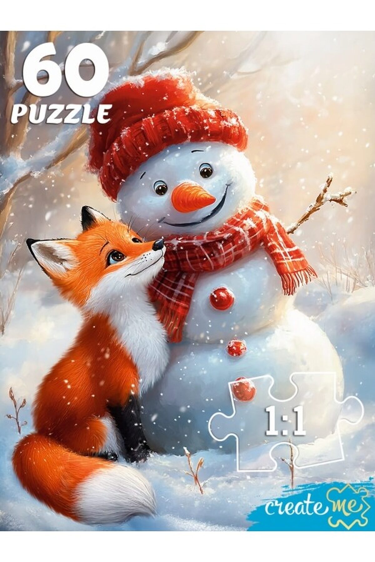 Пазлы 60 "Лисенок и снеговичок" URAL TOYS, мультиколор