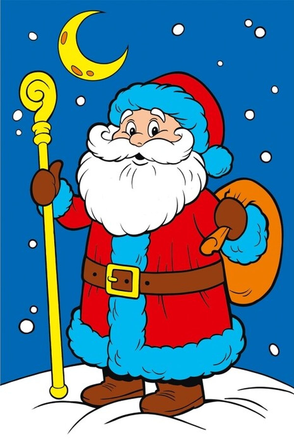 Холст мини 10х15 по номерам "Дед Мороз с мешком подарков" (7цв.)