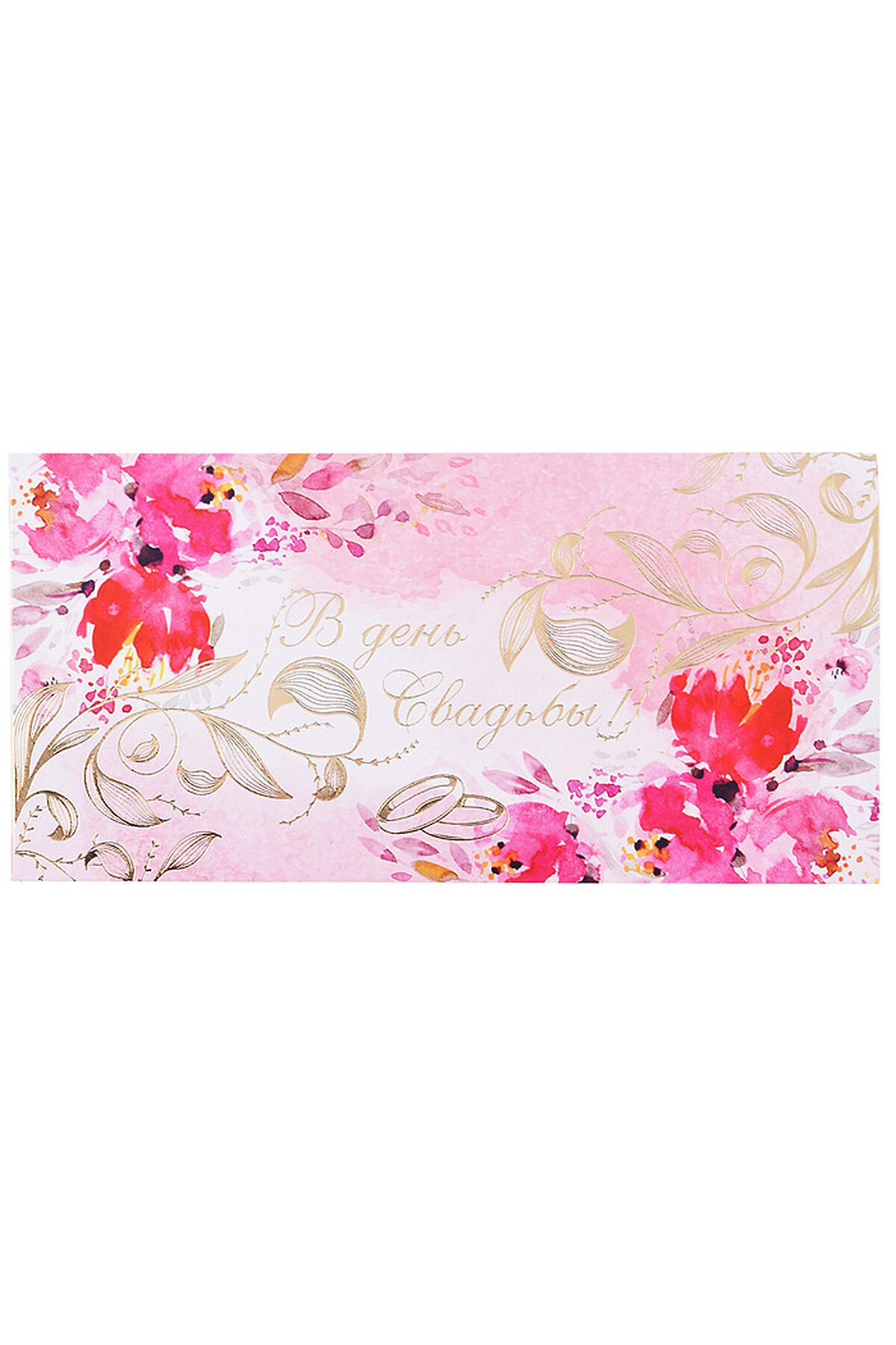 Конверт для денег на склейке "В День Свадьбы!" (золотая фольга) URAL TOYS, розовый