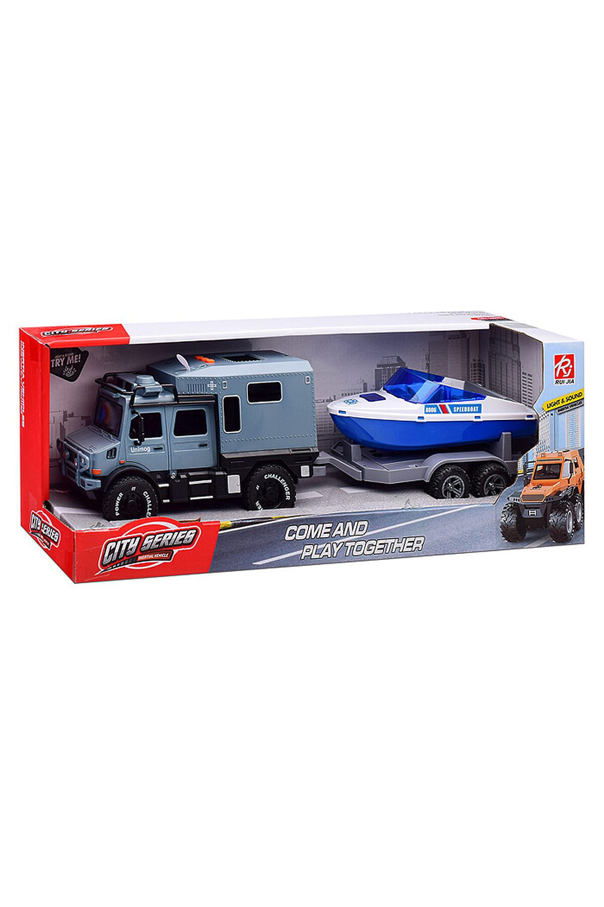 Машина "Трейлер" с прицепом и лодкой (свет, звук) в коробке