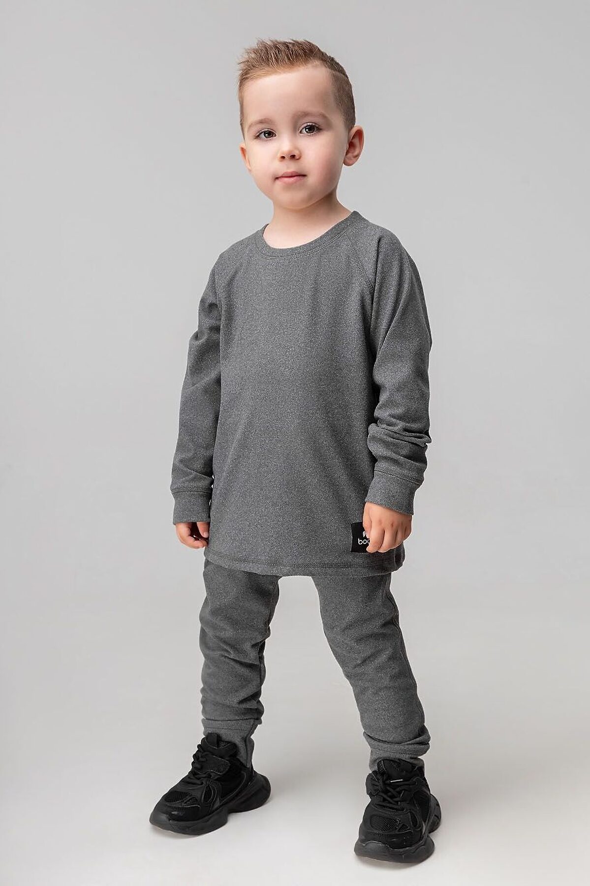 Лонгслив свободного силуэта с длинным рукавом на манжетах, округлая горловина. Леггинсы прямые, пояс на резинке, низ на манжетах.