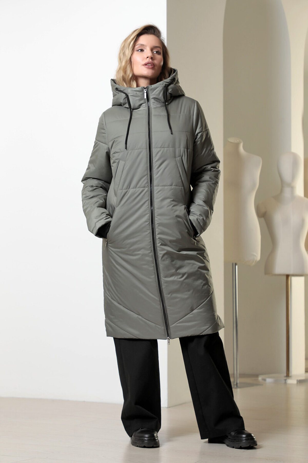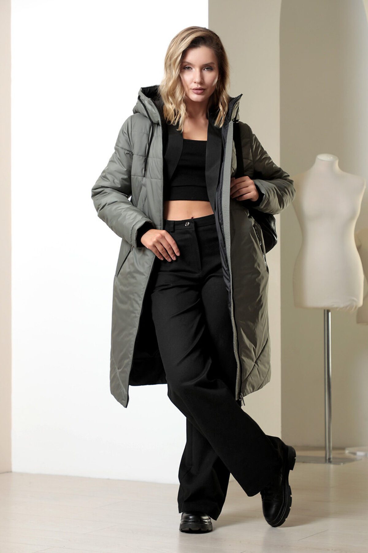 Зимнее пальто на молнии.