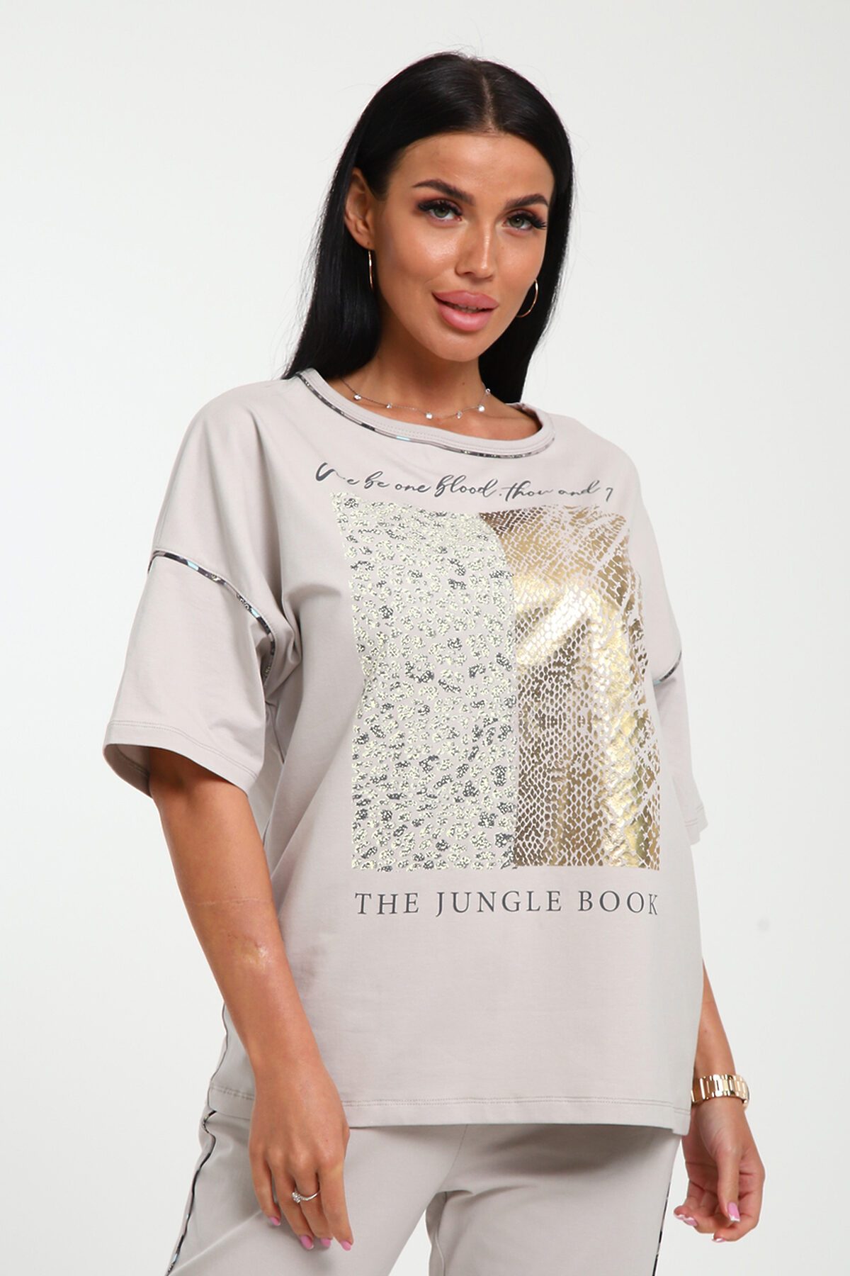 Трикотажная футболка премиум качества с модным принтом от NINEL. Модель выполнена из высококачественного кулирного волокна с лайкрой.