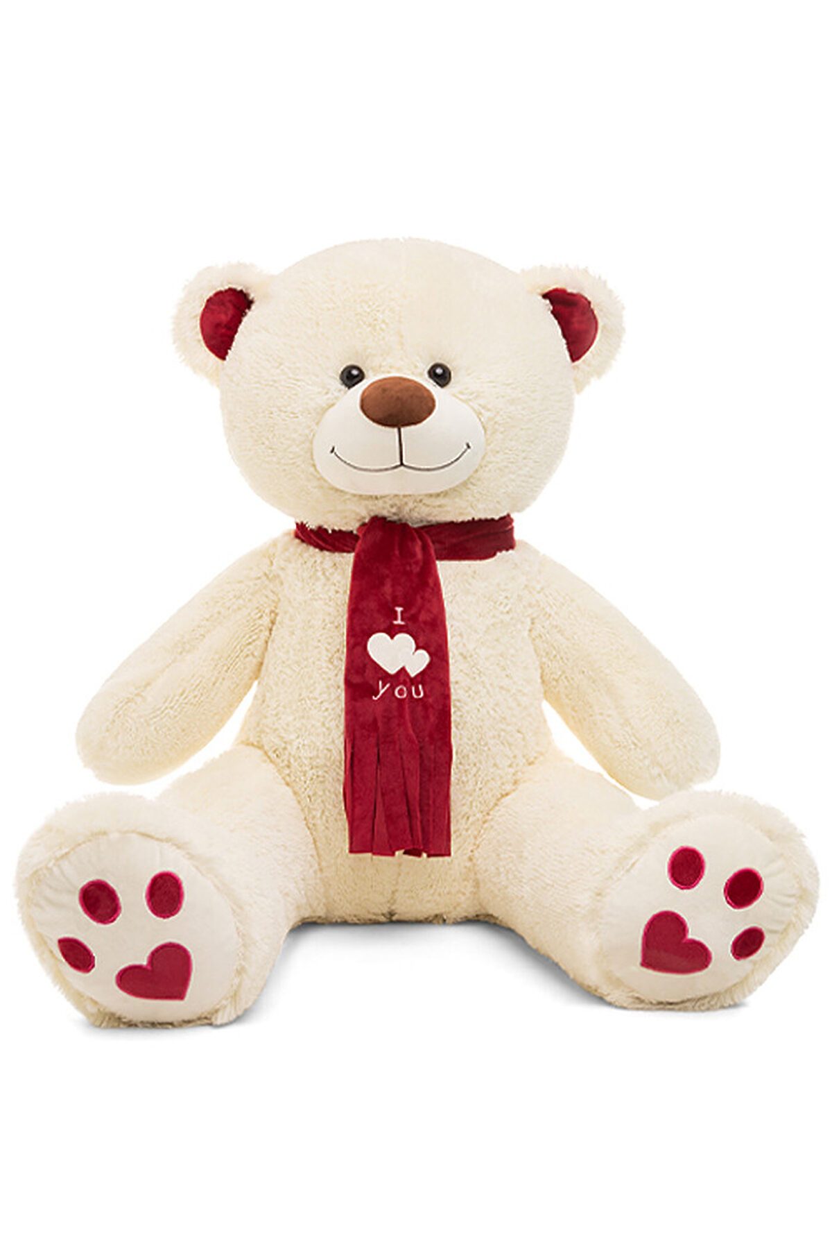 • Высота игрушки: 115 см.\n• Высота игрушки (сидя): 80 см.\n• Состав: мех искусственный, волокно полиэфирное.\n• Пластиковые глаза.\n• Соответствует стандартам качества и требованиям безопасности продукции.\n• Для детей от 3-х лет.