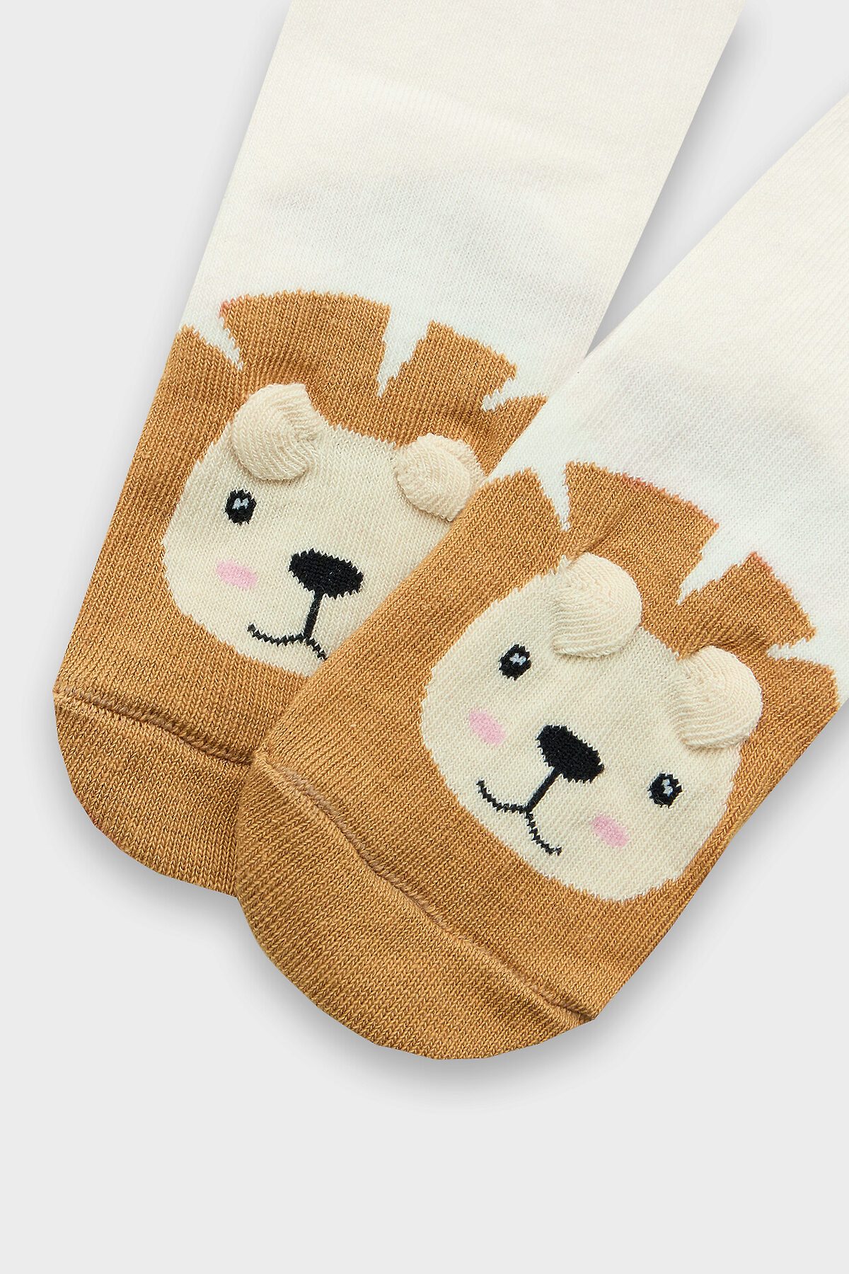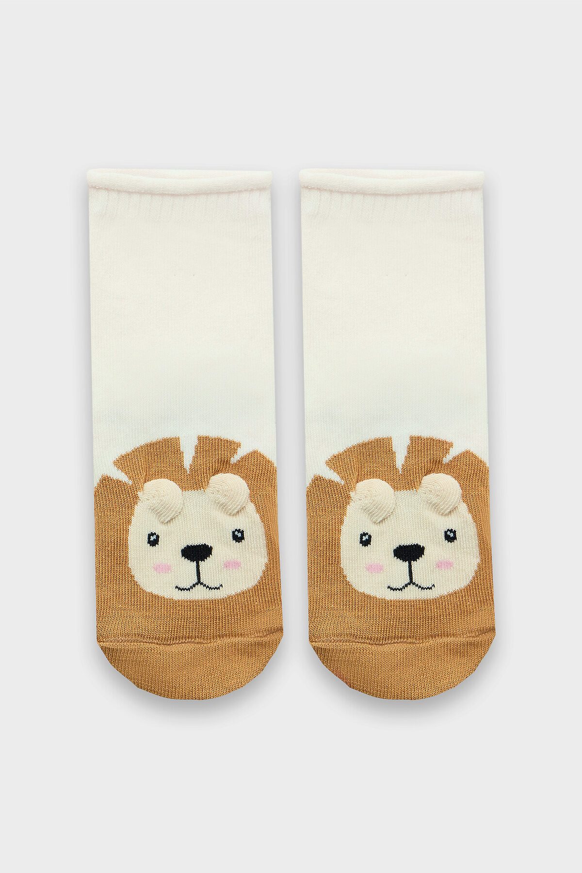 рис.2934 Детские гладкие носки без борта, с рисунком в виде львенка и цветным мыском.