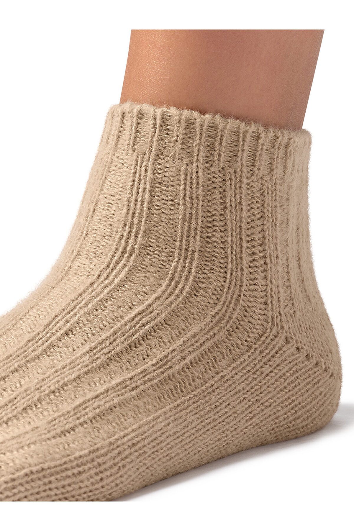 Женские зимние укороченные носки в рубчик. Изготовлены из современного технологичного материала, который прекрасно сохраняет тепло, отводит влагу и приятно ощущается на коже. Удобная резинка мягко облегает ногу и обеспечивает комфорт в течение всего дня. Нежные, мягкие и невероятно стильные — эти носки выполнены в ретро-эстетике, имитирующей ручную вязку. Такой дизайн отсылает к винтажному уюту и в то же время идеально вписывается в актуальные тренды, где комфорт и ностальгические акценты становятся частью городского стиля. Их можно носить в сочетании с oversize-свитерами, утеплёнными пальто, грубыми ботинками или домашними аутфитами — для создания тёплых, гармоничных образов с модным звучанием.