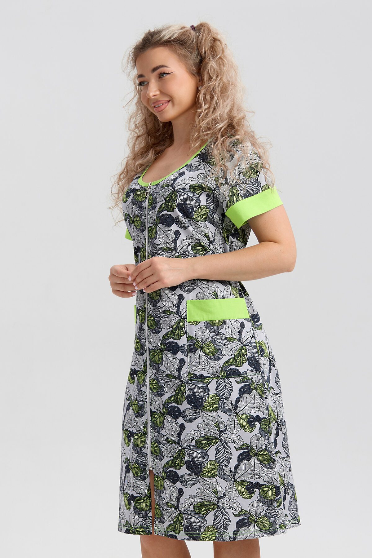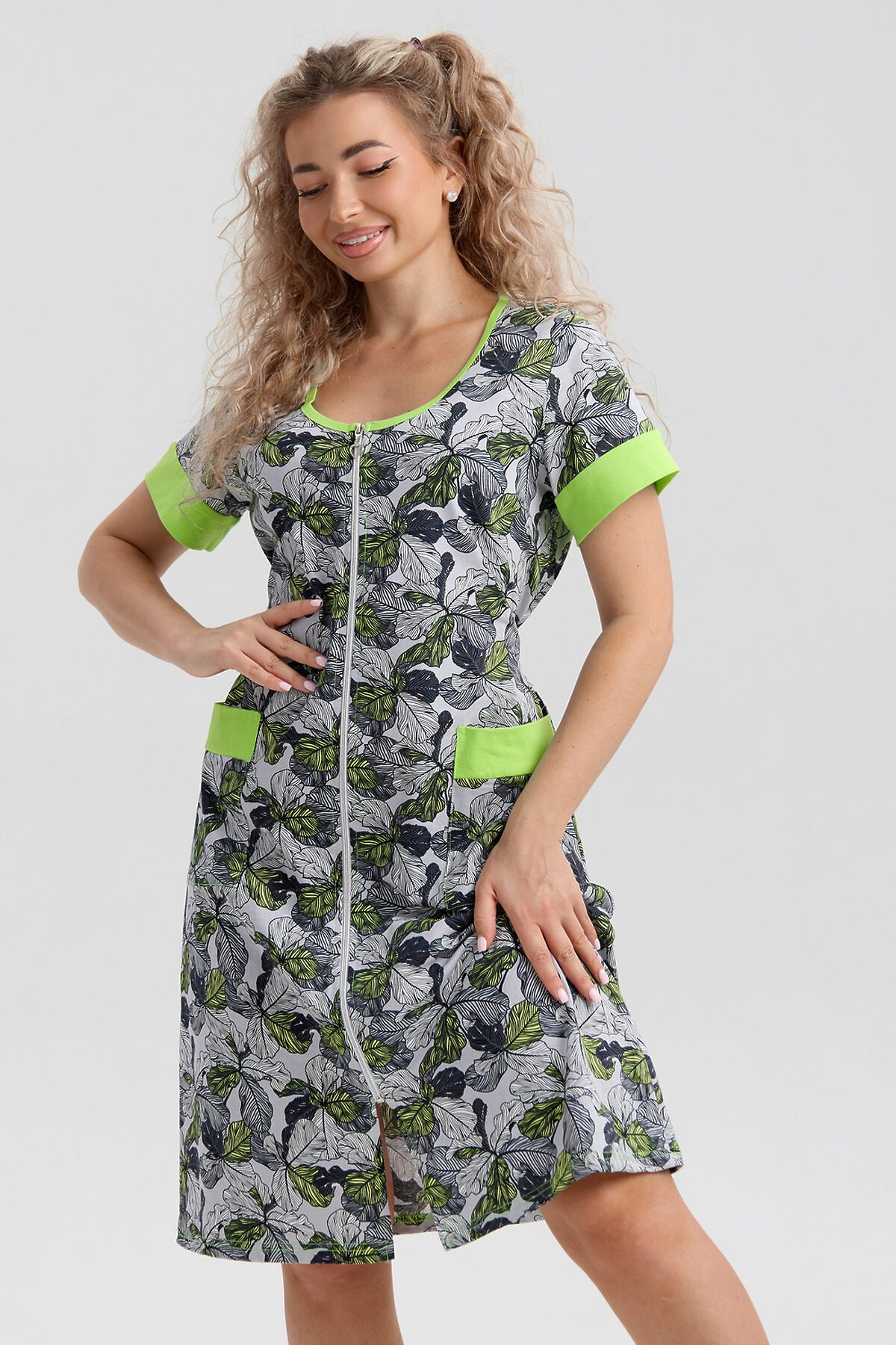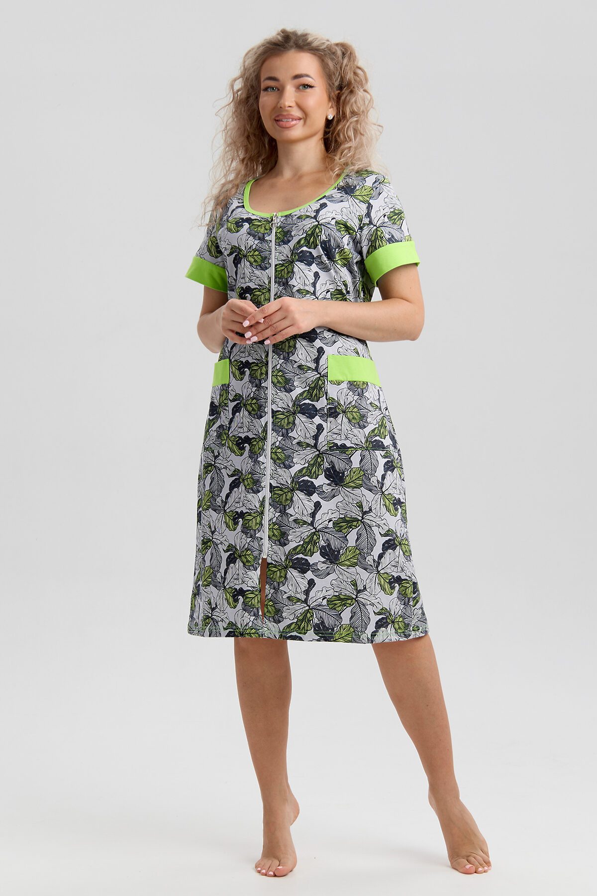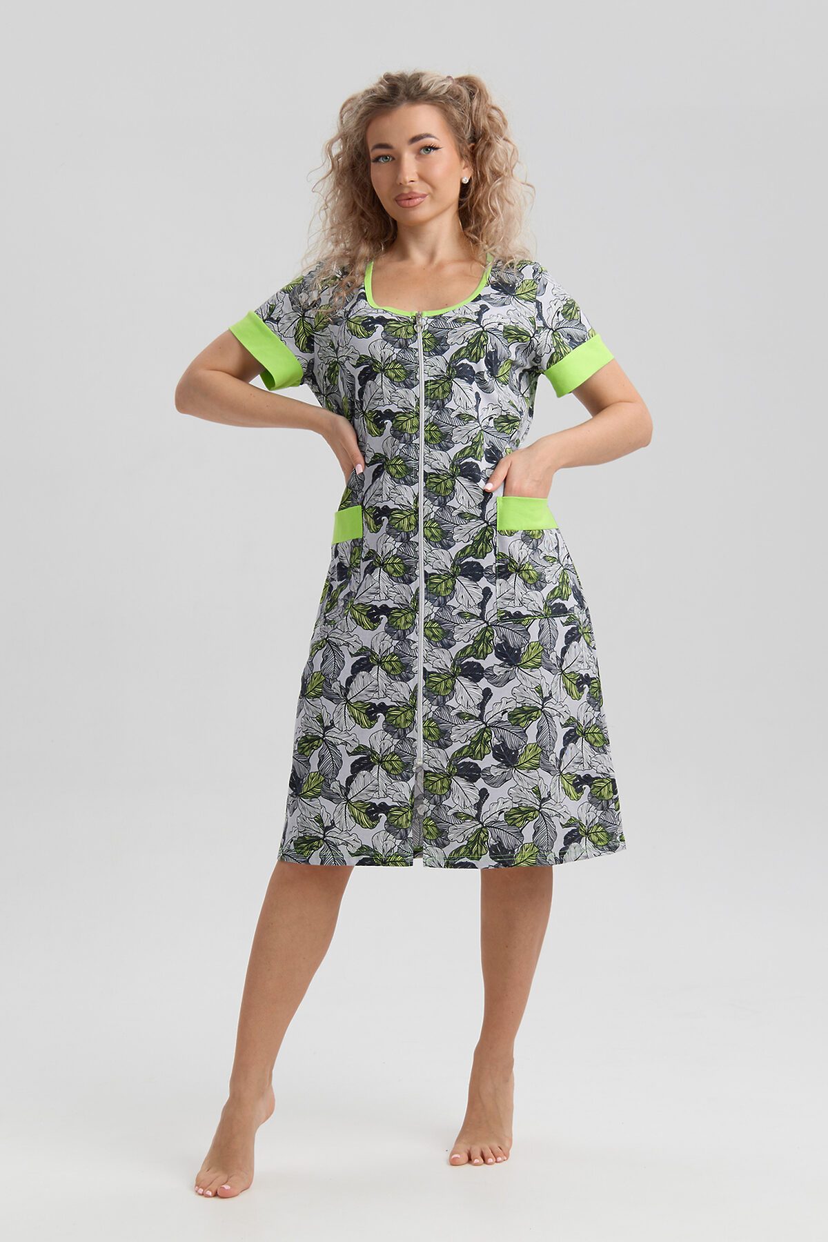 Женский халатик на молнии самая распространенная и универсальная одежда для домашнего отдыха и хозяйственных хлопот. После трудного рабочего дня, приходя домой, первым делом хочется переодеться. И данная модель это идеальный вариант среди представительниц прекрасной половины человечества. Модель выполнена из 100% хлопчатобумажной ткани. Халат так же дополняет яркая отделка по рукавам и карманам. А пояс на линии талии поможет легко смоделировать женственный силуэт и при этом Вы будете чувствовать себя легко и непринуждённо. Данная модель прекрасно подойдёт для дома, дачи и отдыха, создавая по-настоящему яркий образ и хорошее настроение! Рост модели на фото 165см.