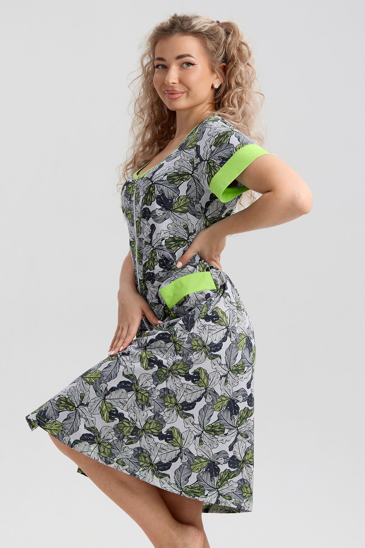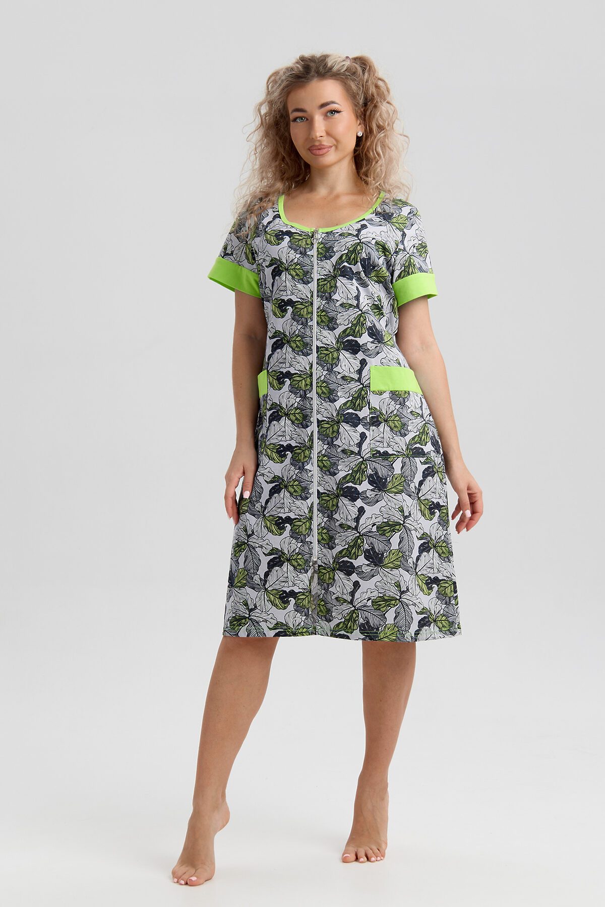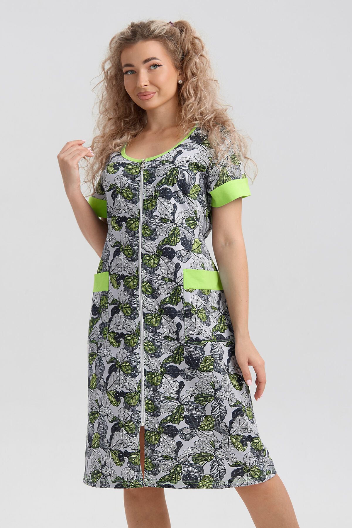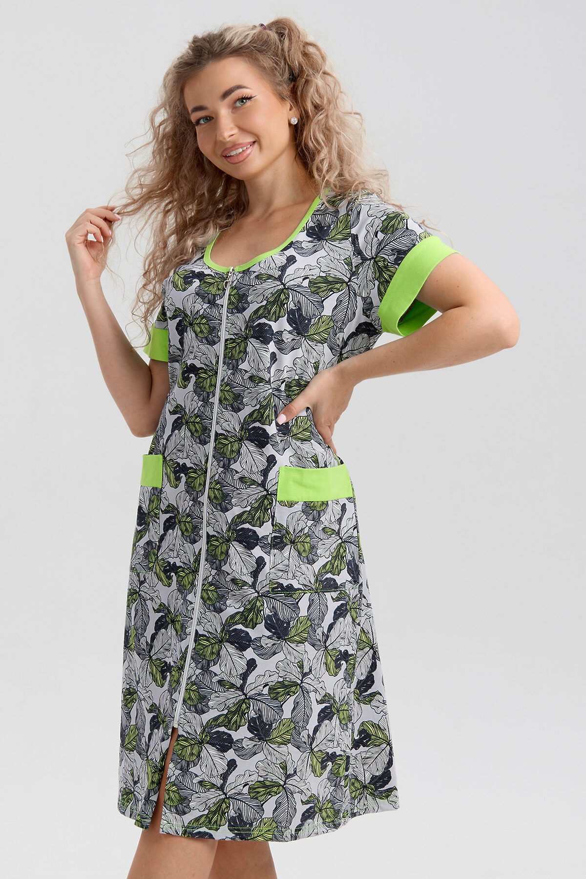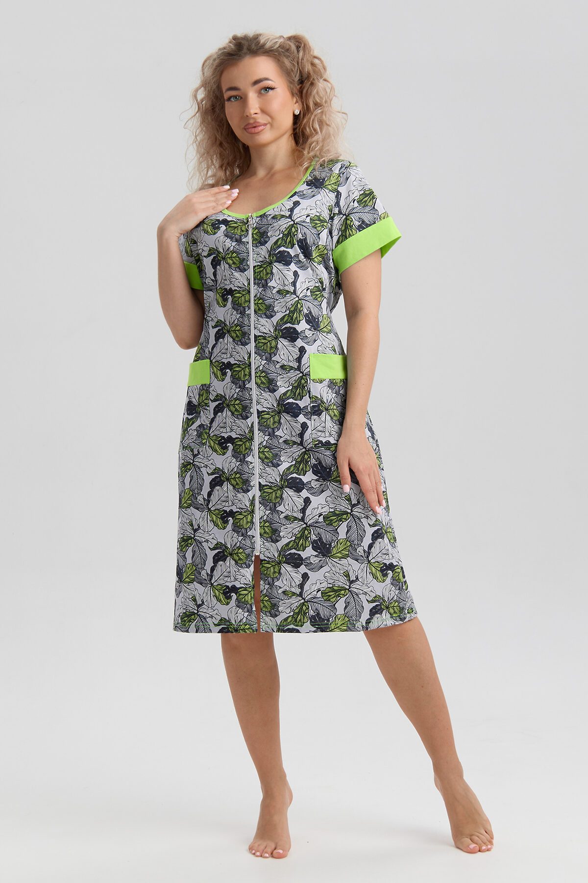 Женский халатик на молнии самая распространенная и универсальная одежда для домашнего отдыха и хозяйственных хлопот. После трудного рабочего дня, приходя домой, первым делом хочется переодеться. И данная модель это идеальный вариант среди представительниц прекрасной половины человечества. Модель выполнена из 100% хлопчатобумажной ткани. Халат так же дополняет яркая отделка по рукавам и карманам. А пояс на линии талии поможет легко смоделировать женственный силуэт и при этом Вы будете чувствовать себя легко и непринуждённо. Данная модель прекрасно подойдёт для дома, дачи и отдыха, создавая по-настоящему яркий образ и хорошее настроение! Рост модели на фото 165см.
