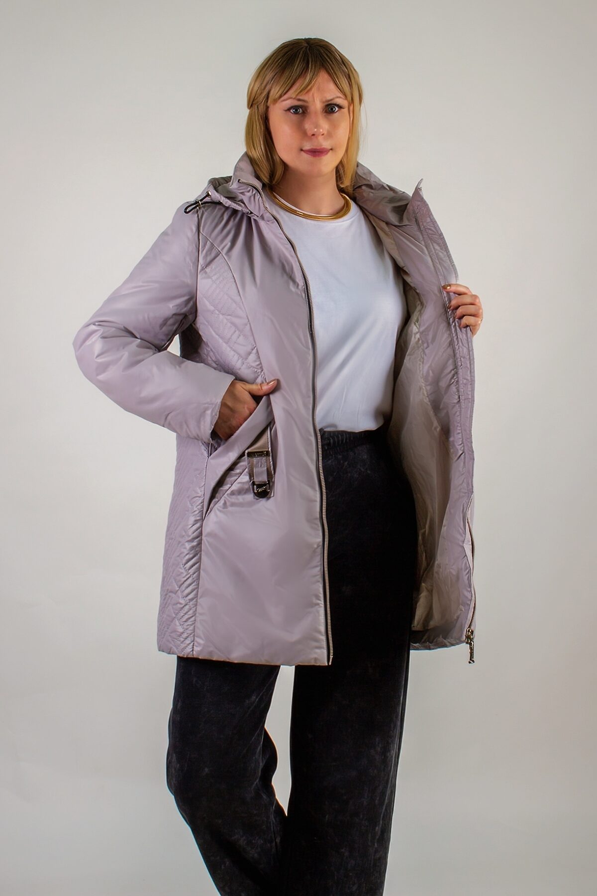 Демисезонная куртка Лайт, арт.2298 идеальный выбор для современного городского стиля! Эта куртка средней длины воплощает в себе последние модные тенденции и продуманный дизайн, призванный не только защитить Вас от переменчивой весенне-осенней погоды, но и подчеркнуть Вашу индивидуальность, визуально скорректировать фигуру и создать по-настоящему привлекательный образ. Уникальная фактурная стежка ультрастеп визитная карточка этой модели. Выполненная на капюшоне и полосой по бокам, она элегантно проходит через карманы, добавляя изделию неповторимый характер: ее расположение стратегически продумано для визуальной коррекции силуэта, вытягивая фигуру и делая ее более стройной и пропорциональной. Практичность и комфорт на первом месте: - Отстегивающийся капюшон с фиксаторами: Позволяет легко адаптировать куртку к любым погодным условиям. Регулируйте степень защиты от ветра и влаги, создавая оптимальный комфорт. - Специальная курточная ткань: Приятная на ощупь, легкая и износостойкая. Главное преимущество ее уникальные свойства: к ней не прилипает грязь или шерсть домашних любимцев, что делает уход за курткой невероятно простым и удобным. Больше никаких утомительных чисток после прогулки с собакой или поездки в общественном транспорте. - Прямой свободный крой: Обеспечивает максимальную свободу движений. Куртка не сковывает, позволяя Вам с легкостью перемещаться по городу, комфортно чувствовать себя в транспорте или за рулем автомобиля. Ее длина идеально подходит для активного образа жизни, не стесняя движений. - Два боковых кармана на кнопке: Функциональные и надежные, они позволят Вам держать необходимые мелочи под рукой, сохраняя их в безопасности. - Качественный пошив гарантия долговечности и безупречного внешнего вида. Каждая деталь этой куртки продумана и исполнена с заботой о Вас, от аккуратных швов до надежной фурнитуры. Эта куртка это не просто предмет одежды, это инвестиция в Ваш стиль, комфорт и уверенность в себе. Она станет незаменимым спутником в прохладные дни теплой весны и осени, добавляя Вашим образам элегантности, актуальности и неповторимого шарма.