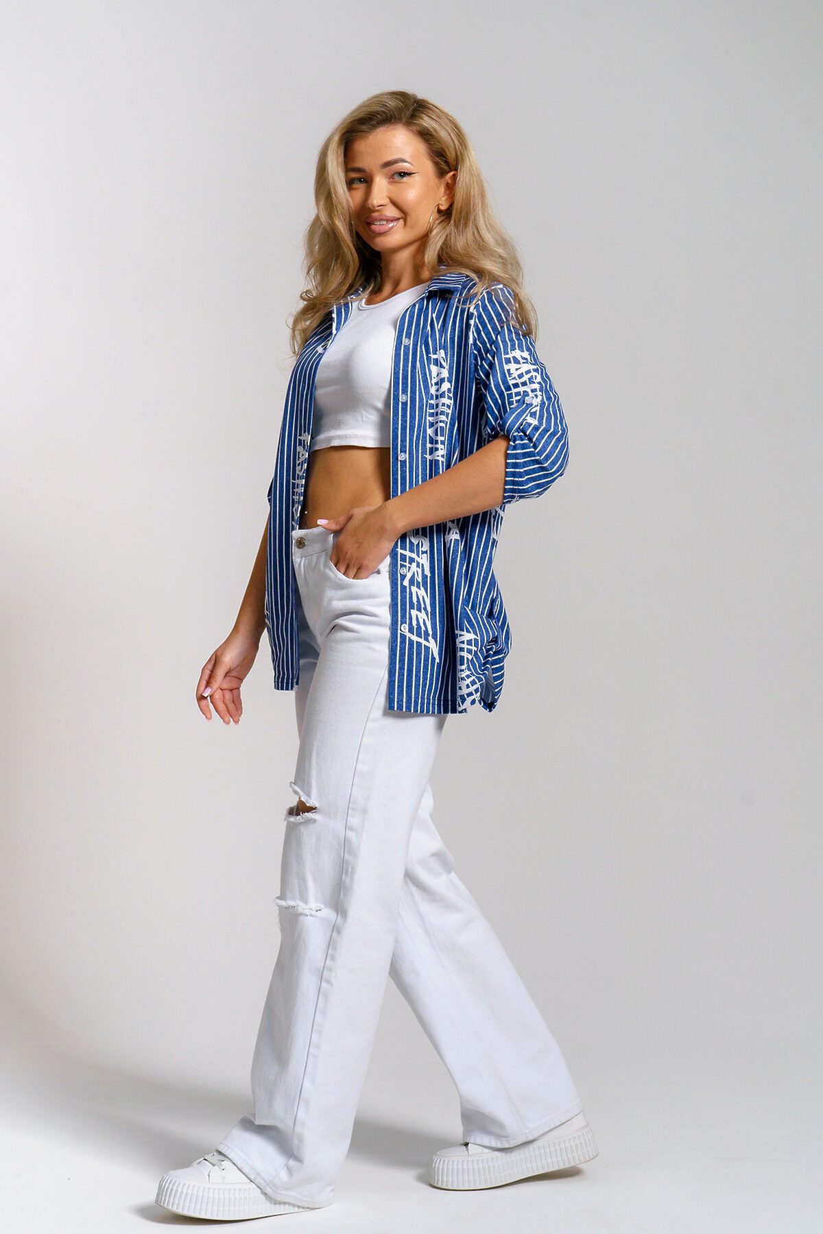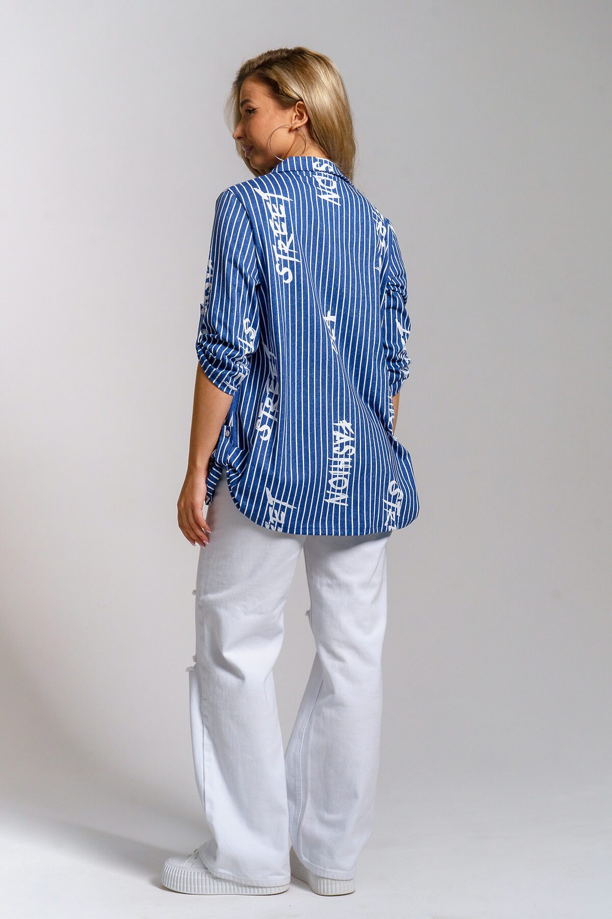 Женская стильная туника - рубашка выполнена из 100% хлопчатобумажного полотна. Новый дизайн и отличное качество делает изделие модным, легким и приятным на ощупь, не сковывает движения, поэтому отлично подойдет как для школы, дома и работы, так и для повседневной носки. Модель дополняет рубашечный воротник, паты и планка с расстёгивающимися пуговицами, делая её более комфортной. Женская свободная рубашка не сковывает движения, поэтому отлично подойдет будущим мамам, беременным женщинам и кормящим. Расстёгивающаяся планка сделает кормление малыша удобным и комфортным, а за счет качественного хлопкового трикотажа еще и безопасным и экологичным. Мы специально разработали рубашку для женщин большого размера. Большие размеры любят и подростки, которые предпочитают вещи оверсайз (oversize). Рубашка женская - это базовая вещь в гардеробе девушки или женщины, является идеальным вариантом для офиса, работы, школы и путешествий. Удлиненную рубашку можно носить дома и в качестве повседневной одежды. Внимание! Замеры длины рукава проводились в застёгнутом виде. В расстёгнутом виде длина рукава добавится на 10 см.