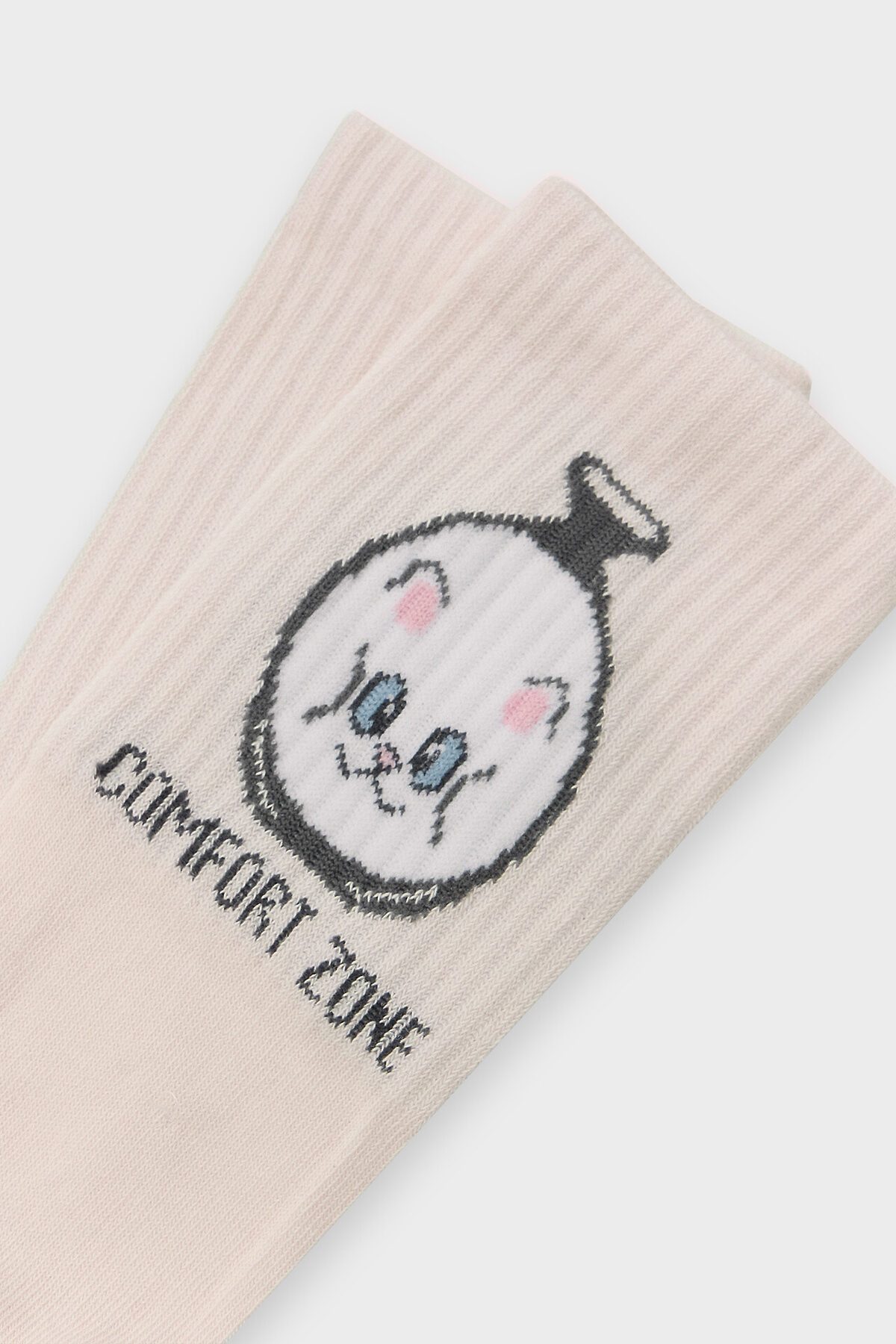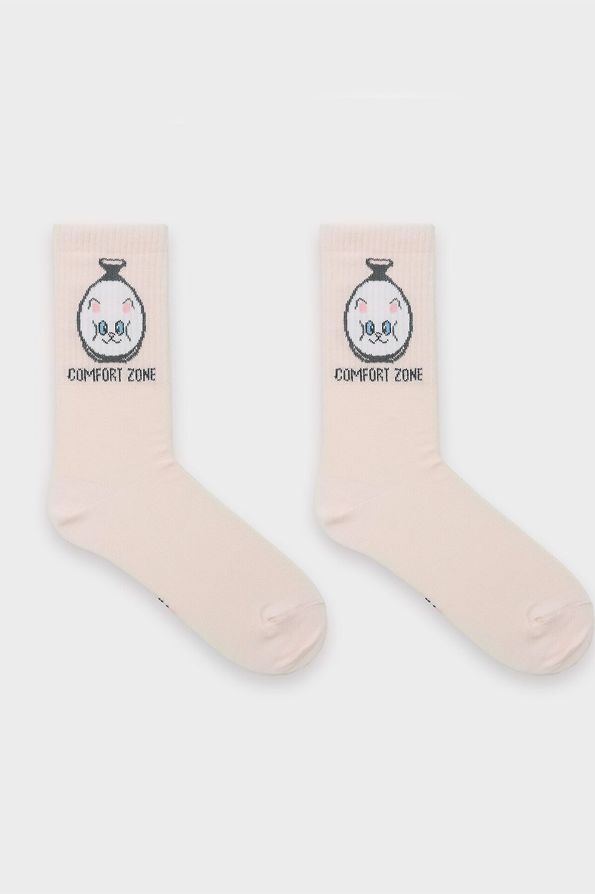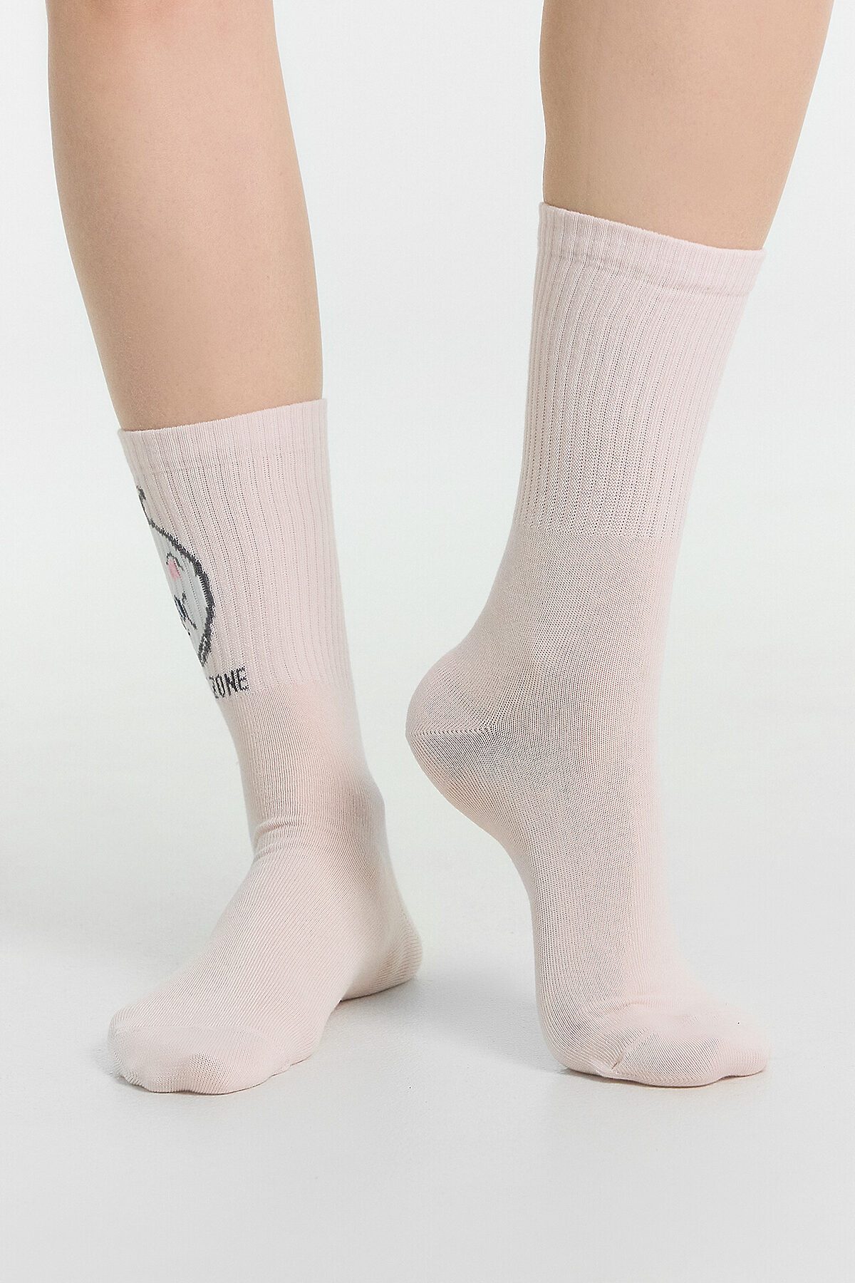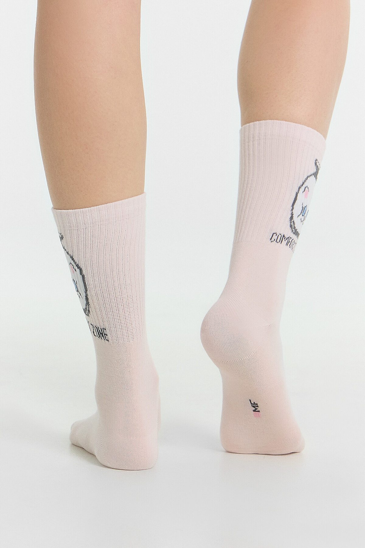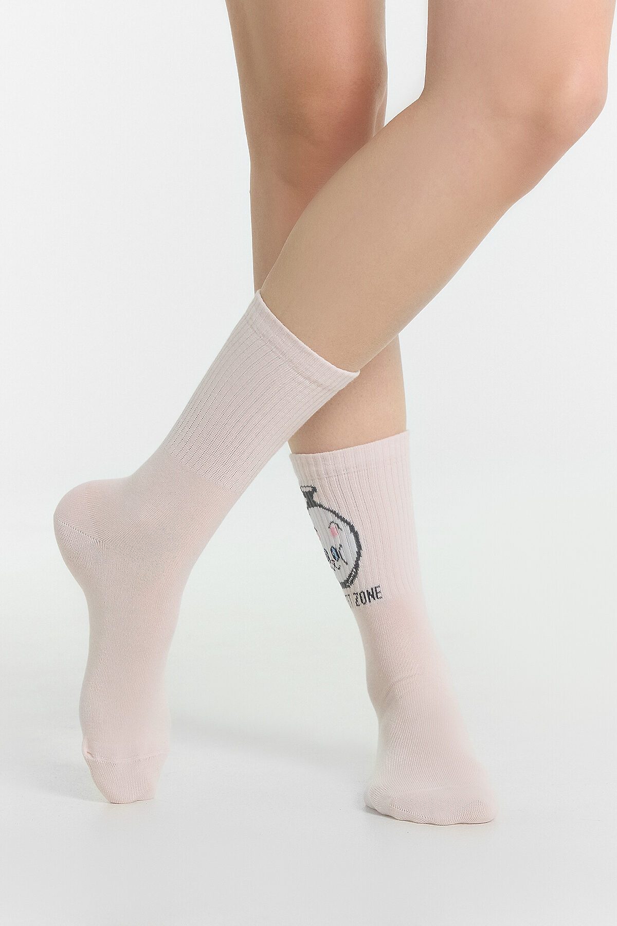 рис.3053 Женский носок с высоким плотным бортом и рисунком в виде котика в бутылке.