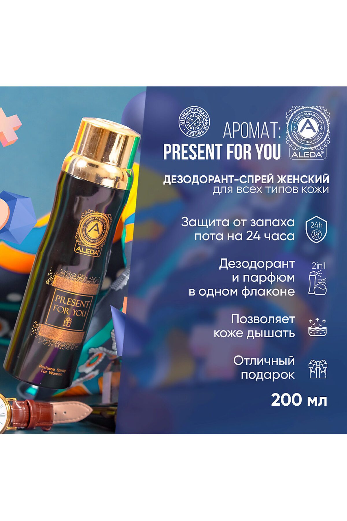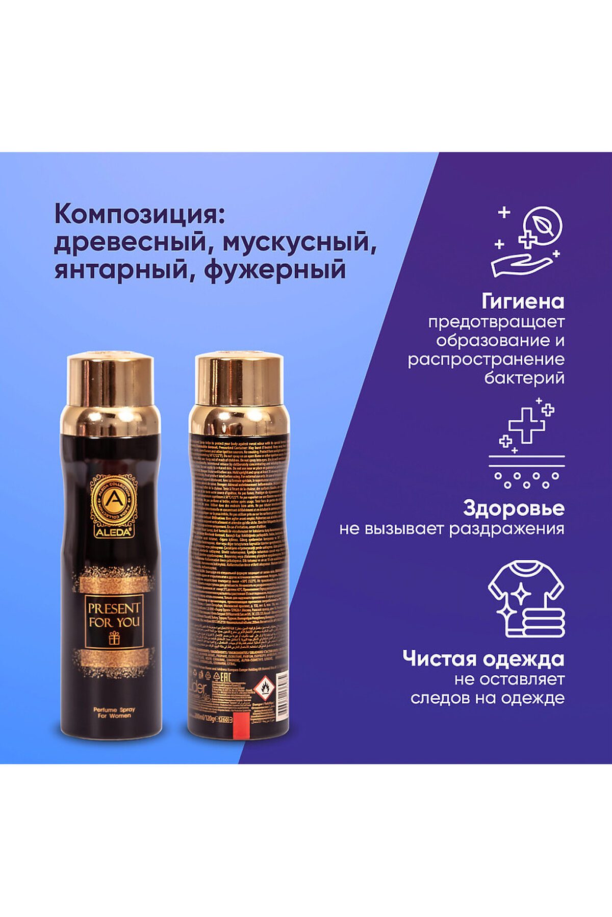 Дезодорант парфюмированный женский Aleda Present for You 200 мл с фруктово-древесным ароматом Эффектные, освежающие, гармоничные ноты Верхняя нота: фруктовый, цитрусовый Нота сердца: цветочные Базовая нота: древесный, мускусный, янтарный Парфюмированный дезодорант Aleda Present for You — ваше секретное оружие в мире стиля и элегантности Представляем вашему вниманию нашу новинку — парфюмированный дезодорант Aleda Present for You, объемом 200 мл, который станет вашим верным спутником в мире стиля и безупречности. Этот дезодорант создан для женщин, которые ценят высокое качество и безупречный образ. Этот дезодорант для тела станет вашим тайным помощником, даря длительную свежесть и оставляя за вами невидимый след элегантности. Удобный формат спрея обеспечивает равномерное распределение аромата, что делает его идеальным выбором для повседневного использования. Мы используем только самые утонченные ингредиенты, которые не только эффективно защищают от неприятных запахов, но и бережно относятся к вашей коже, сохраняя ее мягкость и гладкость. Этот парфюмированный дезодорант для женщин предлагает 24 часа надежной защиты от запаха пота, что делает его незаменимым аксессуаром в вашей косметичке. Парфюмированный дезодорант Aleda отлично подходит для любого типа кожи, включая чувствительную, и не вызывает раздражений. Отзывы о дезодоранте Aleda подчеркивают его эффективность и стойкость аромата. Вы будете чувствовать себя уверенно и привлекательно в течение всего дня, окружая себя атмосферой роскоши. Не упустите возможность отправиться в мир элегантности вместе с дезодорантом Aleda. Закажите его прямо сейчас и ощущайте свежесть и утонченность каждый день. Парфюмированный дезодорант купить можно уже сегодня — попробуйте сами и убедитесь в его качестве! Состав: Alcohol Denat, Butane, Propane, Isobutane, Ethane, Isopropil Myristate, Coumarin, Citral, Citronellol. Выбирайте лучшие дезодоранты для женщин и создайте свой уникальный образ с жидким парфюмированным дезодорантом Aleda. aleda, aleda дезодорант, дезодорант aleda отзывы, парфюмированный дезодорант aleda, дезодорант для тела парфюмированный, парфюмированный дезодорант, парфюмированный дезодорант купить, парфюмированный дезодорант отзывы, парфюмированный дезодорант спрей, аледа дезодорант, аледа дезодорант женский, безопасные дезодоранты для женщин, безопасный дезодорант для женщин без алюминия, дезодорант для женщин отзывы, дезодорант драй драй женский, дезодорант женский от запаха, дезодорант женский парфюмированный, дезодорант женский рейтинг, дезодорант от запаха пота женский, дезодорант пота женский, дезодорант турция, дезодорант турция купить, дезодоранты для женщин, дезодоранты пота женщин, женский дезодорант, женский дезодорант отзывы, женский дезодорант спрей, женский дезодорант цена, какие дезодоранты хорошие для женщин, какой дезодорант женский лучше, какой женский дезодорант, купить женский дезодорант, лучшие дезодоранты для женщин, лучшие дезодоранты для женщин от запаха, лучшие