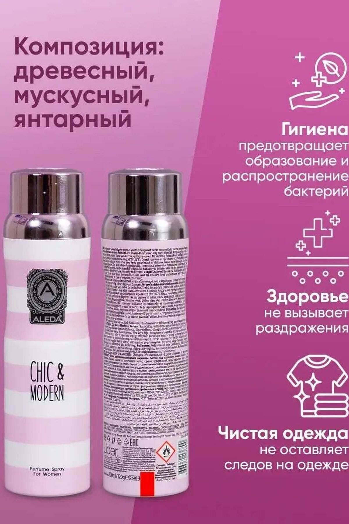 Дезодорант парфюмированный женский Aleda Chic Modern 200 мл с цветочно-мускусным ароматом Эффектные, освежающие, гармоничные ноты Верхняя нота: цитрусовые, океан Нота сердца: цветочный, пряный Базовая нота: древесный, мускусный, янтарный Aleda: Chic Modern — Ваш идеальный парфюмированный дезодорант Представляем вашему вниманию уникальный дезодорант Chic Modern от Aleda — роскошный аромат в линейке популярных турецких парфюмированных средств. Этот дезодорант для женщин разработан специально для борьбы с неприятными запахами и подходит для любого типа кожи, включая чувствительную. Chic Modern обеспечит надежную защиту от пота на целых 24 часа! Погрузитесь в мир роскоши и элегантности с нашим парфюмированным дезодорантом-спреем! Композиция ароматов включает древесные, мускусные и янтарные ноты, создавая неповторимый шлейф, который подчеркнет вашу индивидуальность и создаст атмосферу изысканности. Парфюмированный дезодорант Aleda — это идеальное сочетание надежной защиты от пота и утонченного аромата. Он создан для женщин, которые ценят качество и стиль, и станет вашим незаменимым помощником в борьбе с неприятными запахами. Наслаждайтесь восхитительной свежестью на протяжении всего дня! Дезодорант легко наносится благодаря инновационному спрей-механизму, который обеспечивает равномерное распределение на коже. Он бережно заботится о вашей коже, делая ее мягкой и гладкой, и не оставляет следов на одежде. Не упустите возможность добавить в свою коллекцию парфюмированный дезодорант для тела от Aleda! Он идеально подойдет для ежедневного использования и станет прекрасным подарком для близких — сестры, подруги или мамы. Закажите парфюмированный дезодорант прямо сейчас и наслаждайтесь элегантностью, чувством свежести и высокой атмосферой стиля! Почитайте отзывы о парфюмированном дезодоранте Aleda и выберите лучший женский дезодорант, который завоевал доверие многих женщин. Какой женский дезодорант лучше? С Chic Modern от Aleda вы точно не ошибетесь! aleda, aleda дезодорант, дезодорант aleda отзывы, парфюмированный дезодорант aleda, дезодорант для тела парфюмированный, парфюмированный дезодорант, парфюмированный дезодорант купить, парфюмированный дезодорант отзывы, парфюмированный дезодорант спрей, аледа дезодорант, аледа дезодорант женский, безопасные дезодоранты для женщин, безопасный дезодорант для женщин без алюминия, дезодорант для женщин отзывы, дезодорант драй драй женский, дезодорант женский от запаха, дезодорант женский парфюмированный, дезодорант женский рейтинг, дезодорант от запаха пота женский, дезодорант пота женский, дезодорант турция, дезодорант турция купить, дезодоранты для женщин, дезодоранты пота женщин, женский дезодорант, женский дезодорант отзывы, женский дезодорант спрей, женский дезодорант цена, какие дезодоранты хорошие для женщин, какой дезодорант женский лучше, какой женский дезодорант, купить женский дезодорант, лучшие дезодоранты для женщин, лучшие дезодоранты для женщин от запаха, лучшие дезодоранты для женщин от