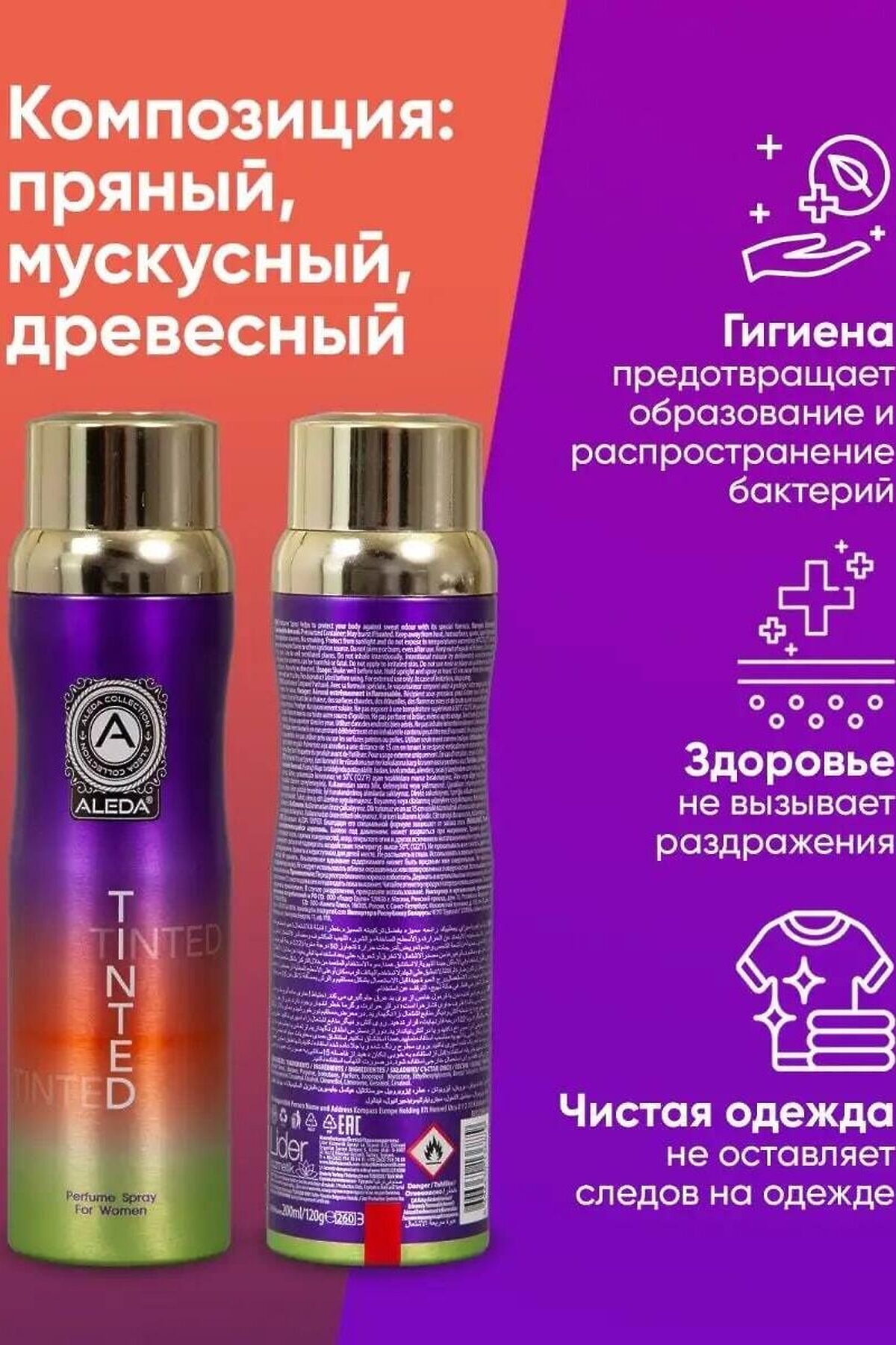Дезодорант парфюмированный женский Aleda Tinted 200 мл с фруктово-цветочным ароматом Эффектные, освежающие, гармоничные ноты Верхняя нота: цитрус, фиалка Нота сердца: жасмин, ананас Базовая нота: ваниль, мускус, амбра, сандаловое дерево Tinted - это женский аромат из популярной линейки парфюмированных дезодорантов Aleda. Этот дезодорант Aleda эффективно справляется с неприятными запахами и подходит для всех типов кожи, включая чувствительную. Он обеспечивает защиту от запаха пота на 24 часа и является идеальным выбором для тех, кто ищет безопасные дезодоранты для женщин. Парфюмированный дезодорант Aleda Tinted гарантирует 24 часа исключительного аромата на вашем теле. Аэрозольный дезодорант Aleda объемом 200 мл надежно защищает на протяжении всего дня, ухаживает за кожей, быстро сохнет и не оставляет следов на одежде. Этот дезодорант для тела парфюмированный придаёт коже свежесть и мягкость, обладает тонизирующим эффектом и защищает подмышки от пота и неприятных запахов. Отзывы о дезодоранте Aleda подчеркивают его эффективность даже в стрессовых ситуациях или во время занятий спортом. Парфюмированная серия дезодорантов Aleda, включая женский дезодорант, предлагает яркие ароматы и отражает естественную женственность, заряжая позитивом на весь день. Женский дезодорант в стильной упаковке может стать отличным подарком для себя или для любимой подруги, сестры, мамы и коллеги. Выберите свой аромат из представленных в линейке Aleda и наслаждайтесь свежестью и чистотой на протяжении всего дня. Парфюмированный дезодорант Aleda - это отличное решение для ежедневного использования, обеспечивающее защиту от неприятных запахов. Дезодорант Aleda не содержит солей алюминия, поэтому он является безопасным дезодорантом для женщин. Преимущества дезодоранта Aleda включают: Парфюм и дезодорант в одном флаконе; Надежная защита от запаха пота на 24 часа; Не оставляет следов на одежде; Без солей алюминия. Если вы ищете лучшие дезодоранты для женщин, дезодорант Aleda станет вашим идеальным выбором. Он поможет вам чувствовать уверенность и комфорт в любой ситуации. Купите парфюмированный дезодорант Aleda и узнайте, почему он занимает высокие позиции в рейтингах дезодорантов для женщин! aleda, aleda дезодорант, дезодорант aleda отзывы, парфюмированный дезодорант aleda, дезодорант для тела парфюмированный, парфюмированный дезодорант, парфюмированный дезодорант купить, парфюмированный дезодорант отзывы, парфюмированный дезодорант спрей, аледа дезодорант, аледа дезодорант женский, безопасные дезодоранты для женщин, безопасный дезодорант для женщин без алюминия, дезодорант для женщин отзывы, дезодорант драй драй женский, дезодорант женский от запаха, дезодорант женский парфюмированный, дезодорант женский рейтинг, дезодорант от запаха пота женский, дезодорант пота женский, дезодорант турция, дезодорант турция купить, дезодоранты для женщин, дезодоранты пота женщин, женский дезодорант, женский дезодорант отзывы, женский дезодорант спрей, женский дезод