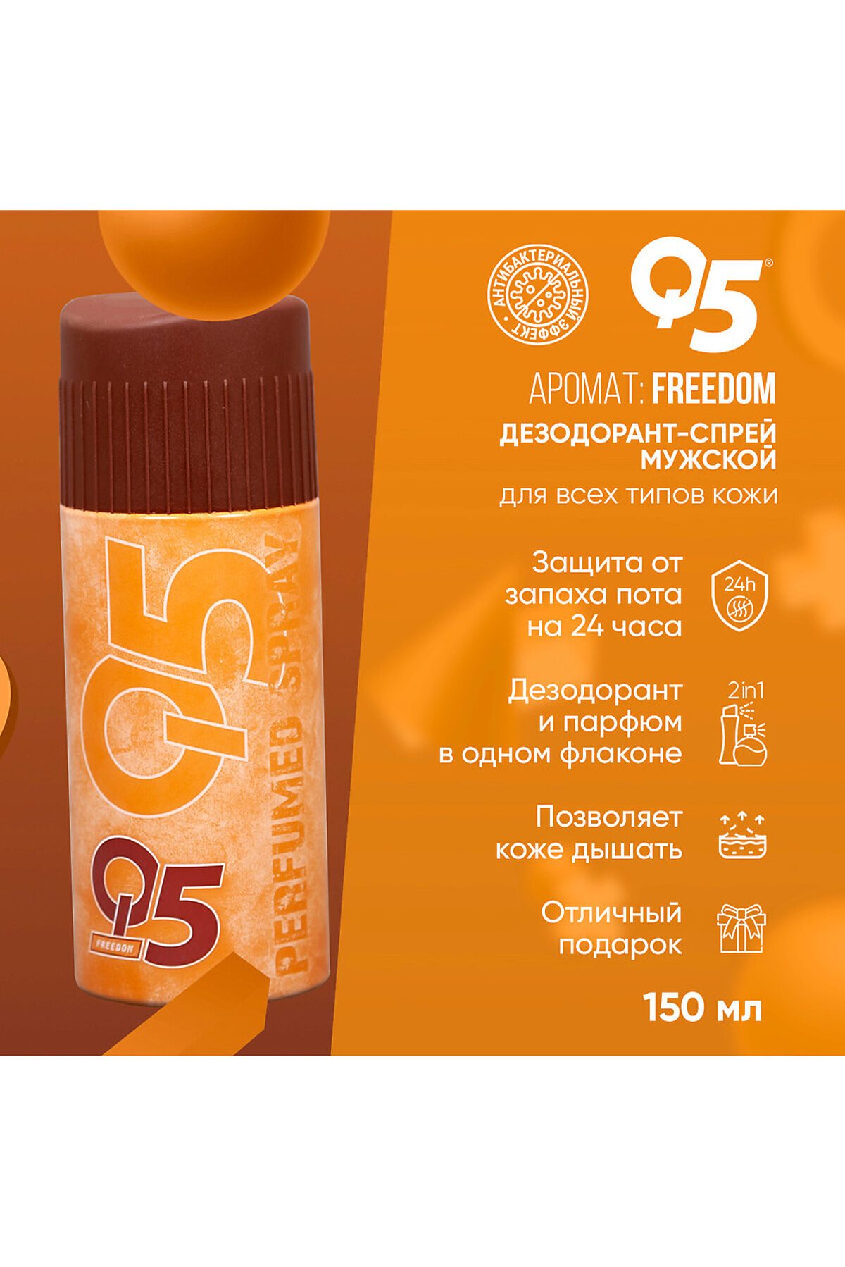 Дезодорант мужской Q5 Freedom 150 мл Парфюмированный цветочно-хвойный Freedom - мужской аромат в линейке популярных турецких роликовых дезодорантов Q5. Отлично справляется с неприятными запахами, подходит любому типу кожи, в том числе чувствительной. Защитит от неприятного запаха и подарит вам эффект свежести на 24 часа. Freedom – это аромат веселых, молодых, спортивных и сильных людей. Палитра дезодоранта включает в себя: верхние ноты: бергамот, лаванда; средние ноты: розовая герань, сандаловое дерево; шлейф: амбра, кедровое дерево. Дезодорант мужской Q5 Freedom 150 мл — это парфюмированный продукт, созданный для активных, молодых и уверенных мужчин. Этот дезодорант отлично борется с неприятными запахами и подходит для любого типа кожи, включая чувствительную. Он обеспечивает защиту на 24 часа, даря ощущение свежести на протяжении всего дня. Аромат Freedom сочетает в себе цветочные и хвойные ноты, что делает его уникальным и запоминающимся. Верхние ноты бергамота и лаванды придают легкость и яркость, мгновенно поднимая настроение. Средние ноты розовой герани и сандалового дерева добавляют тепло и глубину, создавая гармоничное звучание. Шлейф из амбры и кедрового дерева завершает композицию, оставляя стойкий и притягательный след. Удобная упаковка объемом 150 мл идеально подходит для повседневного использования и путешествий. Выберите Q5 Freedom, чтобы подчеркнуть свою индивидуальность и оставаться свежим и энергичным в любой ситуации. Дезодорант мужской Q5 Freedom 150 мл Парфюмированный создан для настоящих мачо, которые хотят чувствовать себя уверенно и стильно. Этот аэрозольный парфюмированный дезодорант предназначен для тех, кто не боится идти своим путем, готов следовать за своей мечтой и привык действовать! Средство от запаха пота в области подмышек и тела обладает великолепным ледяным ароматом, созданным в сотрудничестве с одной из лучших мировых парфюмерных команд. Благодаря специальной формуле, дезодорант не оставляет белых следов и желтых пятен на одежде. Парфюмированный дезодорант для мужчин ежедневно дарит желанную свежесть вашей коже подмышек и одежде. Легендарная формула спрея включает в себя два основных элемента защиты: надежную защиту от запаха пота на 24 часа непревзойденный аромат. Этот яркий и мощный коктейль для бодрого начала дня! Запах средства напоминает свежевыжатый сок, где не только чувствуется лед, но и присутствуют нежные нотки пряных трав. Дезодорант-спрей станет изысканным дополнением к вашей коллекции средств личной гигиены. Дезодорант для мужчин содержит активный компонент, который эффективно борется с бактериями, вызывающими неприятный запах при потливости. Он не содержит солей алюминия и озоноразрушающих веществ, а также не тестируется на животных. Наносите дезодорант после душа, чтобы сохранить чистоту и свежесть на протяжении всего дня. Аэрозольные дезодоранты более гигиеничны в использовании, чем другие форматы с контактными аппликаторами. С этим дезодорантом вы забудете о следах и пятнах
