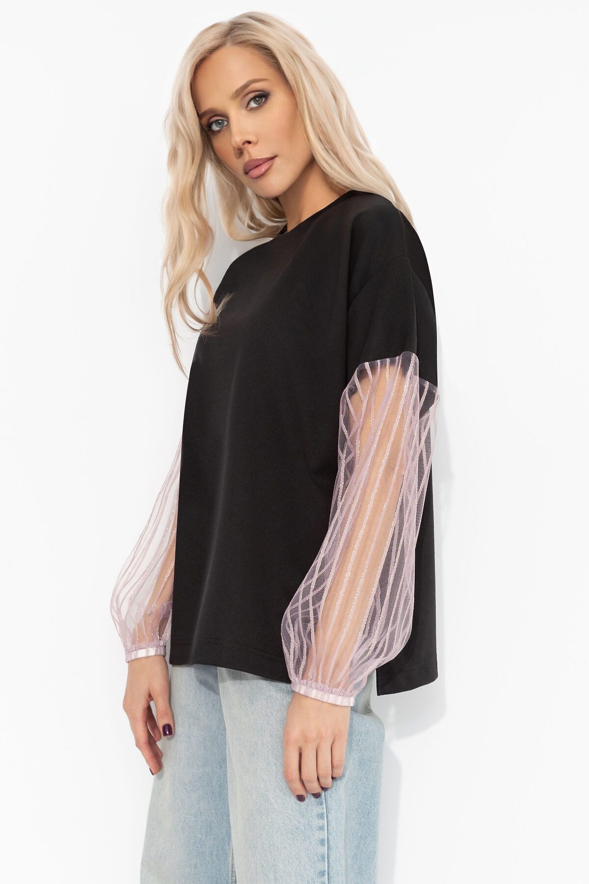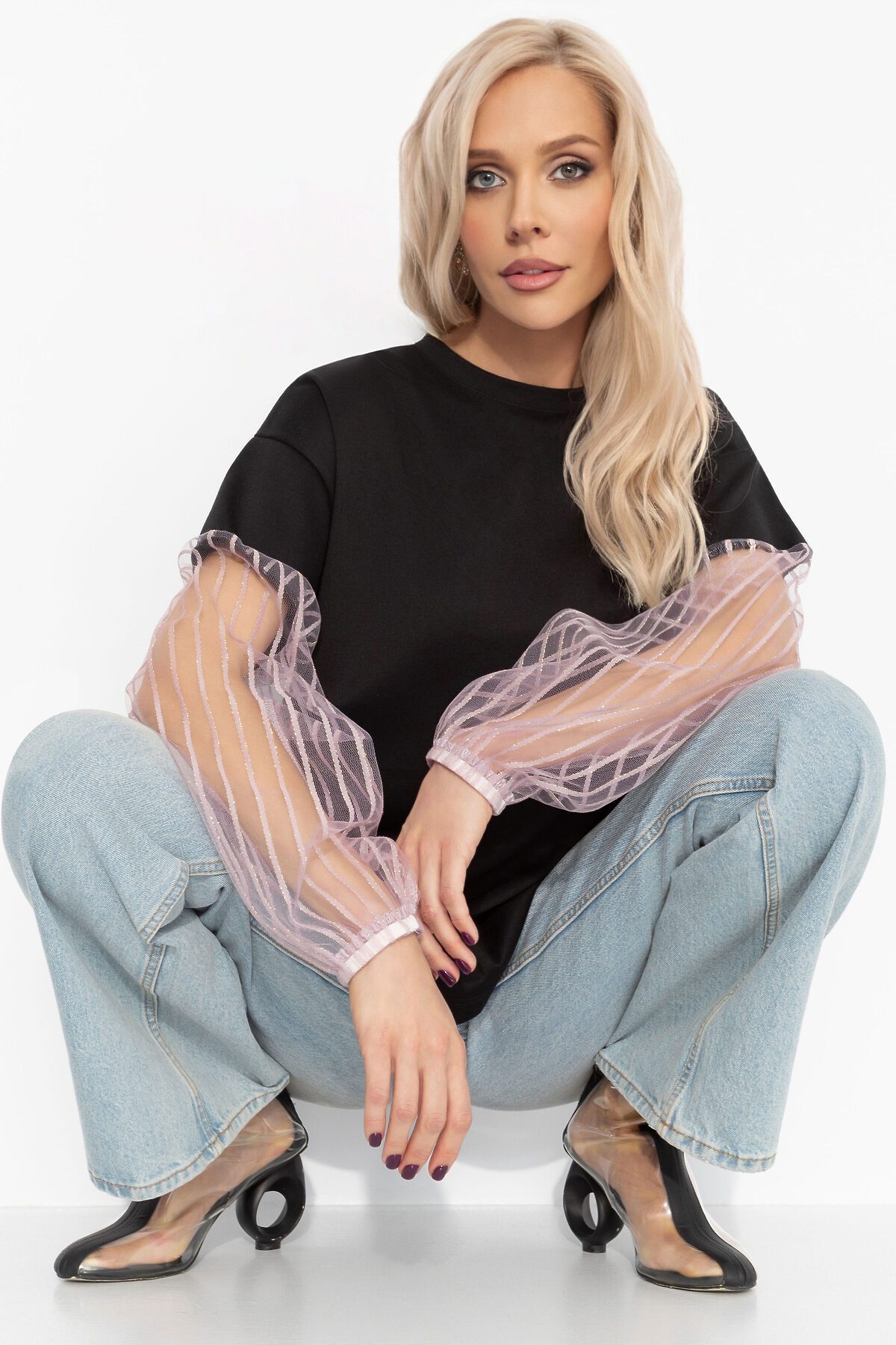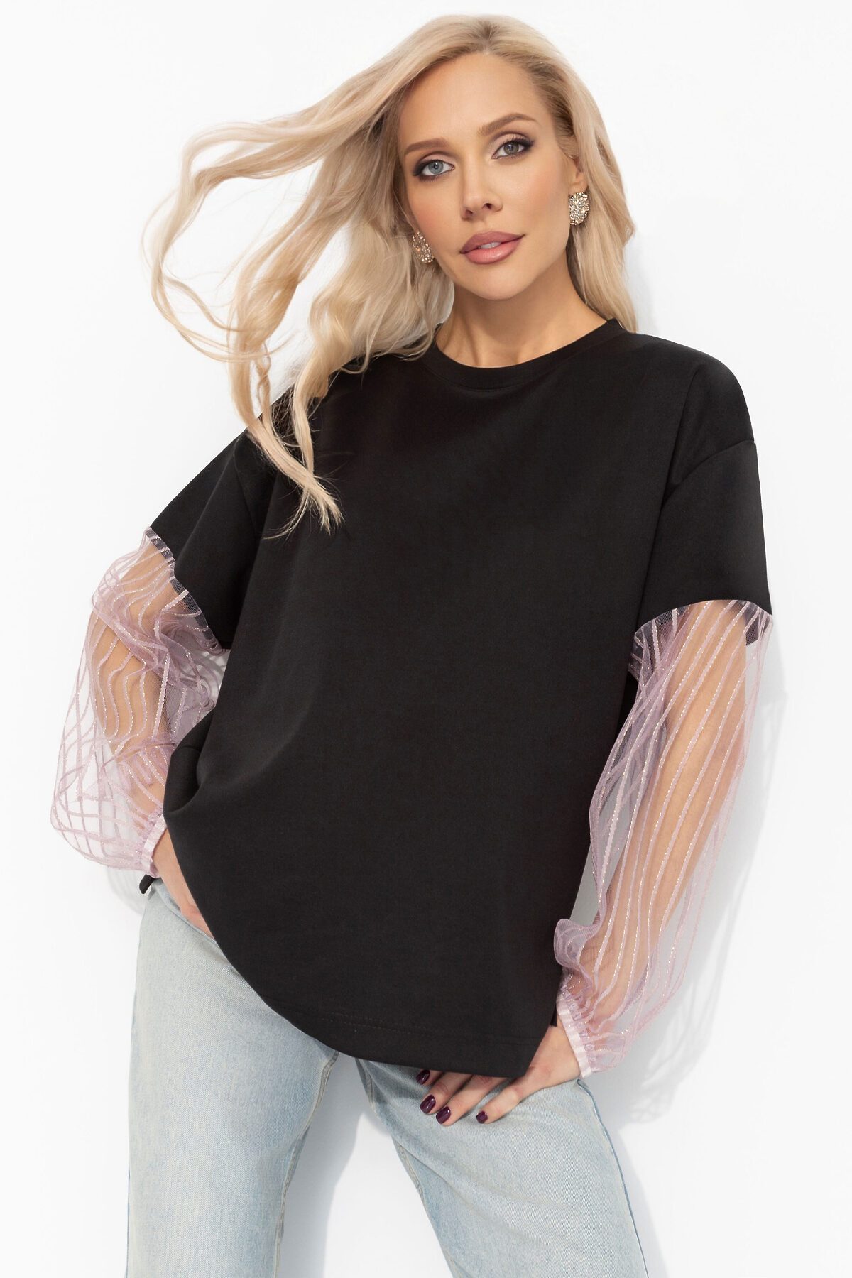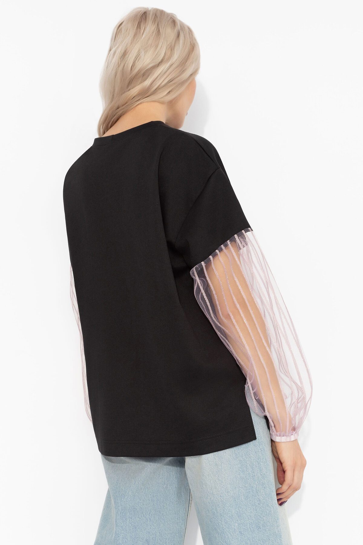 Футболка ЧАРУТТИ с акцентными длинными рукавами – идеальное воплощение дерзкого женского настроения. Мягкий, легкий розовый цвет, словно намёк на нежность, вступает в диалог фундаментальным цветом и кроем основной части. Ажурные рукава, парящие как лепестки пиона, добавляют образу кокотства. При этом все то с вами знаем, кто здесь «сильный пол». Футболка свободного кроя. Рукава полупрозрачные, из гипюра. Деликатные разрезы по бокам изделия. Футболка хорошо смотрится на любом типе фигуры.