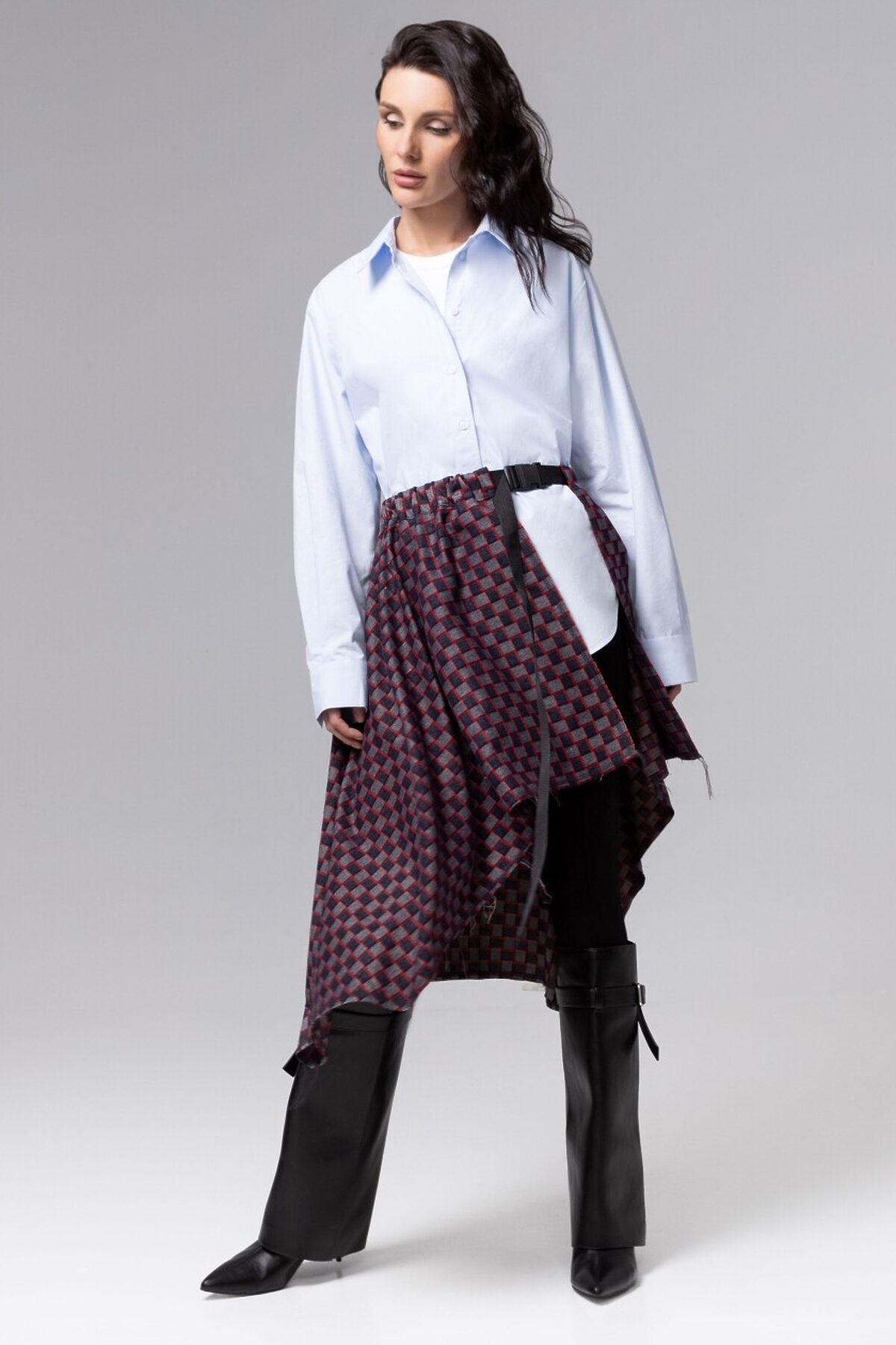 Юбка-килт ЧАРУТТИ из премиальной коллекции – смелый эксперимент с формой и асимметрией. Легко сочетается с брюками, дарит силуэту глубину и загадочность. Эта юбка не про скромность. «Игра теней» ломает привычные пропорции и создаёт графику прямо на вашем образе. Изделие для тех, кто не боится выйти за рамки. Регулируемый пояс позволяет идеально подогнать силуэт под индивидуальные параметры, подчеркивая талию.