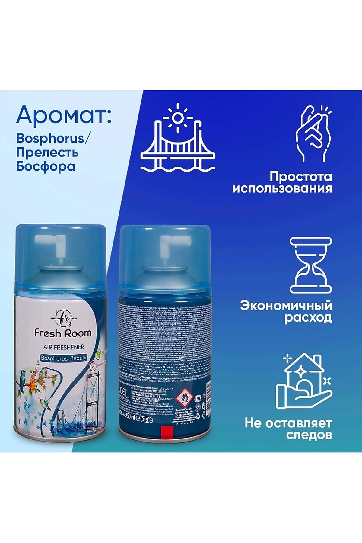 Освежитель воздуха Fresh Room Красота Босфора 250 мл, Аэрозольный с минерально-цветочным ароматом Погрузитесь в атмосферу весеннего ветерка с освежителем воздуха Fresh Room «Красота Босфора» объемом 250 мл. Просто установите сменный баллончик в автоматический распылитель, и он будет без усилий распространять легкий и ненавязчивый аромат по заданному расписанию, наполняя ваш дом естественной свежестью. Если вы стремитесь создать обстановку чистоты и свежести в своем интерьере, тогда Fresh Room — это идеальное решение для вас! Бренд Fresh Room, известен своим вниманием к разработке качественных освежителей воздуха. Мы долгое время радуем потребителей оптимальным соотношением цены и качества, благодаря чему этого освежителя стали настоящим фаворитом на рынке. У нас вы найдете разнообразные ароматы, которые подойдут для любых помещений: кристальная свежесть для офисов, утонченные и нежные ноты для спальни или гостиной, яркие и освежающие для кухни и столовой, а также сдержанные ароматы для кабинета. В нашем ассортименте присутствуют автоматические распылители, которые помогут поддерживать желаемую концентрацию ароматов без вашего участия. Сменный баллон освежителя Fresh Room способен преобразить ваше пространство и устранить неприятные запахи, создавая приятную атмосферу в любом уголке вашего дома. Он быстро распространяет свежий аромат, который наполняет комнату непрерывным и долговременным благоуханием. Стильный и компактный дизайн освежителя позволяет легко вписать его в любой интерьер. Fresh Room — это также экономичный выбор, предлагающий длительное использование. Надежный механизм обеспечивает контроль над интенсивностью аромата, позволяя вам настроить его под свои предпочтения. Что делает Fresh Room уникальным среди прочих освежителей? Во-первых, его эффективная формула успешно борется с неприятными запахами, включая ароматы пищи, дыма и домашних животных. Во-вторых, он абсолютно безопасен для применения в домашних условиях и не оставляет никаких пятен на мебели. Выберите Fresh Room и создайте идеальную атмосферу, которая поможет расслабиться и наслаждаться комфортом вашего дома! освежитель воздуха, освежитель воздуха купить, освежитель воздуха для дома, освежитель воздуха для туалета, сменный освежитель воздуха, освежитель воздуха мл, освежитель воздуха air, какой освежитель воздуха, освежители воздуха для дома автоматический, запахи освежителя воздуха, распыление освежителей воздуха, освежитель воздуха цена, лучшие освежители воздуха, освежитель воздуха 300, домашний освежитель воздуха, освежитель воздуха airwick, освежитель воздуха 300 мл, аэрозольный освежитель воздуха, распылитель освежителя воздуха, освежитель воздуха 300мл, автоматический освежитель воздуха air wick, освежитель воздуха свежесть, освежитель воздуха 250мл, освежители воздуха красный, освежитель воздуха фреш, fresh room, освежитель воздуха хвойный, освежитель воздуха ягоды, мини освежитель воздуха, натуральный освежитель воздуха, освежитель воздуха лимон, освежител