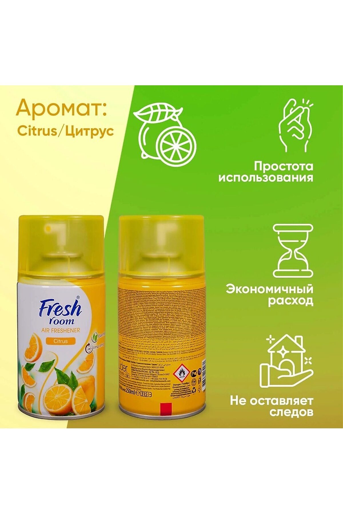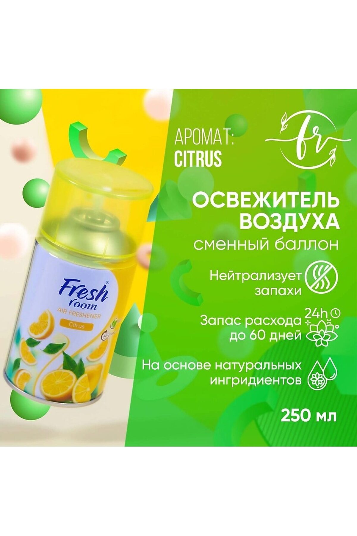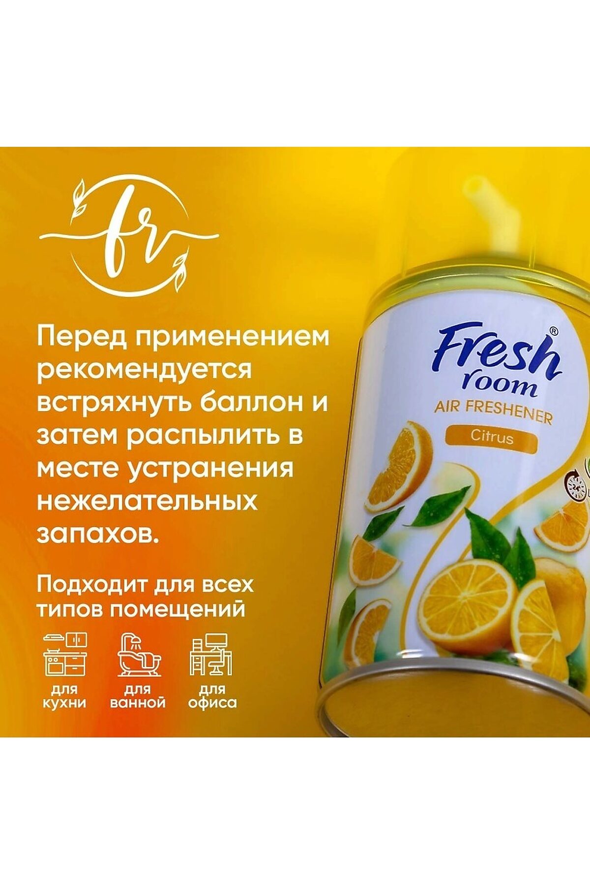 Освежитель воздуха Fresh Room Цитрус 250 мл, Аэрозольный с цветочно-цитрусовым освежающим ароматом Вдохновляющая атмосфера в вашем доме с ароматом цитрусовых фруктов Ароматы цитрусовых фруктов, наполняющие ваш дом летней свежестью, способны создать по-настоящему вдохновляющую атмосферу. Установите сменный баллон в автоматический освежитель воздуха, и он будет равномерно распылять нежный, ненавязчивый аромат с заданными интервалами, превращая ваше пространство в настоящий оазис натуральной свежести. Освежитель воздуха Fresh Room Цитрус — ваш идеальный выбор для чистоты и свежести Освежитель воздуха Fresh Room, представленный в виде цитрусового аромата объемом 250 мл, станет вашим верным спутником в создании атмосферы чистоты и свежести в вашем доме. Этот бренд, созданный компанией Lider Kozmetik, которая специализируется на косметике, парфюмерии и средствах по уходу за домом, неизменно радует своих клиентов гармоничным сочетанием цены и качества. Широкий ассортимент ароматов для любого помещения В ассортименте Fresh Room представлен широкий выбор ароматов, которые помогут вам подобрать идеальный запах для любого помещения: от кристально чистого для офисов до утонченных и мягких для спальни или гостиной; от ярких и свежих для кухни до сдержанных для кабинета. Кроме того, в ассортименте представлены автоматические распылители, которые поддерживают желаемую концентрацию ароматов без необходимости участия пользователя. Сменные баллоны Fresh Room — создайте уголок благоухания в любом помещении Сменные баллоны Fresh Room способны превратить любое помещение в настоящий уголок благоухания. Освежитель мгновенно наполняет комнату легким и продолжительным ароматом, устраняя неприятные запахи и создавая уютную атмосферу. Стильный дизайн и компактные размеры позволяют удобно вписать его в любой интерьер, а экономичный объем 250 мл обеспечивает длительное использование. Изощренный механизм баллона позволяет контролировать интенсивность запаха, что делает его идеальным средством для создания расслабляющей и комфортной обстановки в вашем доме. Если вы ищете, где приобрести освежитель воздуха, обратите внимание на автоматические варианты, подходящие для туалета и других помещений. Вы сможете выбрать подходящий ароматизатор, например, хвойный, лимонный или ягодный, а также мини-освежитель для удобства. Оцените различные упаковки — освежитель воздуха 300 мл или 250 мл — и найдите наилучший вариант по доступной цене. В продаже представлены как аэрозольные, так и подовые модели, которые отвечают всем вашим запросам. Обратите внимание на предложения оптовой покупки и специальные секции, где освежители можно приобрести экономично. Fresh Room — ваш надежный партнер в поддержании свежести в доме. освежитель воздуха, освежитель воздуха купить, освежитель воздуха для дома, освежитель воздуха для туалета, сменный освежитель воздуха, освежитель воздуха мл, освежитель воздуха air, какой освежитель воздуха, освежители воздуха для дома автоматический, запахи освежителя