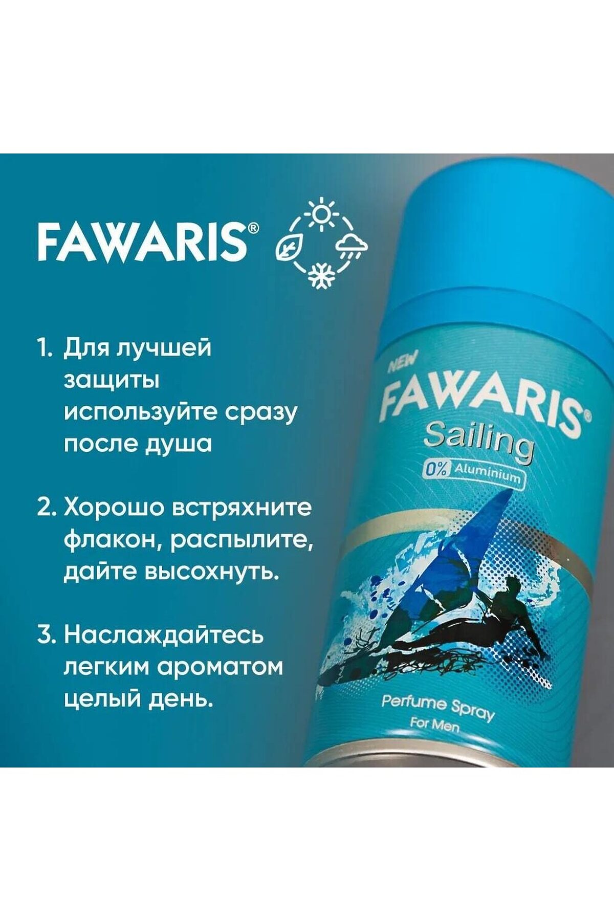 Дезодорант парфюмированный мужской FAWARIS Sailing 150 мл с фруктово-древесным ароматом Дезодорант мужской спортивный FAWARIS Sailing – мужской аромат в линейке популярных и недорогих турецких парфюмированных спрей-дезодорантов Fawaris. Отлично справляется с неприятными запахами, подходит любому типу кожи, в том числе и чувствительной. Защитит от неприятного запаха на 24 часа. Дезодорант мужской спортивный Sailing – аромат, гармонично соединивший в себе фруктовые и древесные ноты. Дезодорант мужской спортивный Sailing – аромат твоих успехов. Наш дезодорант - это идеальное решение для современного и стильного мужчины, который ценит комфорт и надежность в повседневной жизни. Он обеспечивает эффективную защиту от неприятных запахов и пота, позволяя вам оставаться свежим и уверенным на протяжении всего дня. Наш спрей для тела обладает мощной формулой, специально разработанной для мужской кожи. Он обеспечивает надежную защиту от пота и неприятных запахов, не оставляя следов на одежде. Вы можете быть уверены, что наш дезодорант будет держать вас свежим и сухим даже в самых активных ситуациях. Свежий и мужественный аромат нашего антиперспиранта создает приятную атмосферу и подчеркивает вашу индивидуальность. Он добавляет уверенности и стиля в ваш повседневный образ, делая вас заметным и привлекательным. Мы используем только высококачественные и безопасные ингредиенты, чтобы обеспечить максимальную эффективность и комфорт. Наш дезодорант не содержит алюминия, парабенов или других вредных веществ, поэтому он безопасен для вашей кожи. Позвольте нашему мужскому дезодоранту стать вашим надежным спутником в борьбе с неприятными запахами и потом. Вы будете чувствовать себя свежим и уверенным весь день, зная, что наш дезодорант заботится о вас. Закажите наш мужской антиперспирант прямо сейчас и наслаждайтесь свежестью и комфортом каждый день. Почувствуйте разницу и насладитесь уверенностью в своей мужественности и стиле! Мужской дезодорант с восхитительным ароматом, гармонично соединивший в себе древесные ноты и выразительные фруктовые аккорды. Парфюмированный спрей-дезодорант для мужчин 200 мл Держа флакон вертикально, распылите в зоне подмышек с расстояния 15 см. Не одевайте одежду сразу после применения, подождите 1-2 минуты, чтобы дезодорант высох. Не наносить на раздраженную или поврежденную кожу. дезодорант мужской, купить дезодорант, дезодорант без, дезодорант мужской купить, дезодорант цена, дезодорант без алюминия, купить женский дезодорант, дезодорант мужской спрей, дезодорант без запаха, безопасные дезодоранты, лучшие мужские дезодоранты, дезодорант стик мужской, дезодорант axe мужской, дезодорант акс мужской, шариковый дезодорант мужской, дезодорант без парабенов, дезодорант нивея мужской, рексона дезодорант мужской, дезодорант без алюминия и парабенов, купить шариковый дезодорант, мужской дезодорант old spice, дезодорант виши купить, дезодорант спрей купить, мужской дезодорант отзывы, запахи мужских дезодорантов, твердый дезодорант