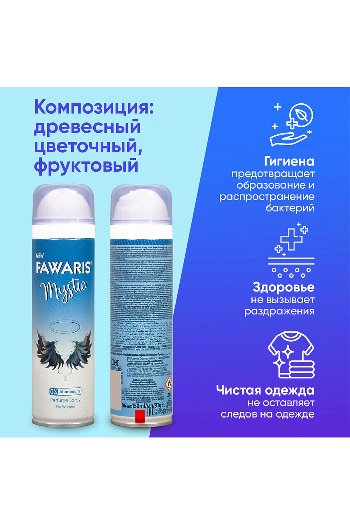 Дезодорант парфюмированный женский FAWARIS Mystic 150 мл с древесным и цветочно-фруктовым ароматом Аромат с гармоничным соединением древесных, цветочных и фруктовых нот создан специально для современной женщины, которая придерживается динамичного, энергичного образа жизни, оставаясь при этом романтиком. Mystic - женский аромат в линейке популярных и недорогих турецких парфюмированных спрей-дезодорантов Fawaris. Отлично справляется с неприятными запахами, подходит любому типу кожи, в том числе и чувствительной. Защитит от неприятного запаха на 24 часа. Mystic – аромат запада во всей красе, все это благодаря гармоничному соединению древесных, цветочных и фруктовых нот. Fawaris Mystic – ароматы для энергичных романтиков. Почувствуйте свежесть и уверенность весь день с нашим женским дезодорантом! Наш дезодорант женский спрей - это идеальное решение для женщин, которые ценят комфорт и надежность. Он обеспечивает эффективную защиту от неприятных запахов и пота, позволяя вам оставаться свежей и уверенной в любой ситуации. Наш женский дезодорант обладает превосходной формулой, которая не только предотвращает неприятные запахи, но и обеспечивает длительную свежесть. Его мягкая текстура легко наносится на кожу и быстро впитывается, не оставляя следов или ощущения липкости. Мы используем только натуральные и безопасные ингредиенты, которые бережно заботятся о вашей коже. Наш антиперсперант женский не содержит алюминия, парабенов или других вредных веществ, поэтому вы можете быть уверены в его безопасности и эффективности. Кроме того, наш дезодорант обладает приятным ароматом, который оставляет на вас свежий и женственный запах. Он создает приятную атмосферу и дарит вам уверенность в своей естественной красоте. Позвольте нашему женскому дезодоранту стать вашим надежным спутником в борьбе с неприятными запахами и потом. Вы будете чувствовать себя свежей и уверенной весь день, зная, что наш дезодорант заботится о вас. Закажите наш женский дезодорант прямо сейчас и наслаждайтесь свежестью и комфортом каждый день. Почувствуйте разницу и насладитесь уверенностью в своей естественной красоте! купить дезодорант, женский дезодорант, дезодорант без, дезодоранты для женщин, дезодорант без алюминия, купить женский дезодорант, рексона дезодорант женский, лучшие дезодоранты для женщин, безопасные дезодоранты, шариковый дезодорант женский, женский дезодорант спрей, лучшие женские дезодоранты, дезодорант без парабенов, дезодорант без алюминия и парабенов, дезодорант виши купить, дезодорант спрей купить, дезодорант рексона купить, дезодорант для подмышек женский, купить дезодорант олд спайс, дезодорант драй драй женский, где купить дезодорант, женский дезодорант цена, дезодорант цена женские, купить дезодорант на озон, безопасные дезодоранты для женщин, дезодорант твердый женский, дезодорант кристалл купить, дезодорант нивея купить, лучший женский дезодорант пота, какой женский дезодорант, дезодоранты олд спайс цены, дезодорант без солей, дезодорант драй драй цена