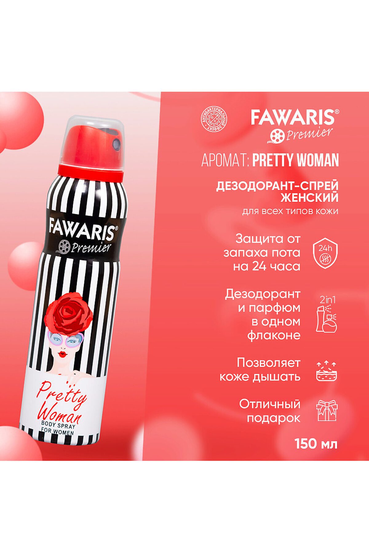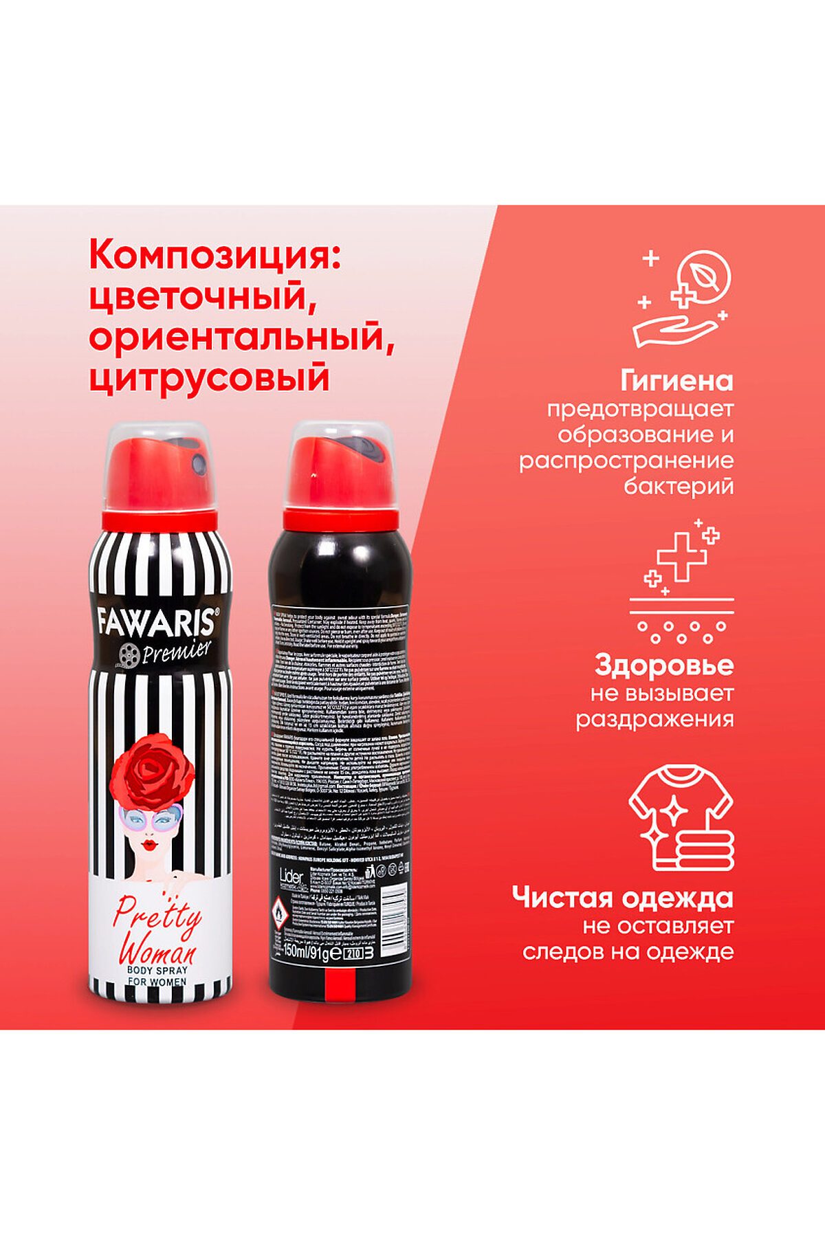 Дезодорант парфюмированный женский FAWARIS Premier Pretty Woman 150 мл с древесным и цветочно-фруктовым ароматом Аромат с гармоничным соединением древесных, цветочных и фруктовых нот создан специально для современной женщины, которая придерживается динамичного, энергичного образа жизни, оставаясь при этом романтиком. Pretty Woman - женский аромат в линейке популярных и недорогих турецких парфюмированных спрей-дезодорантов Fawaris. Отлично справляется с неприятными запахами, подходит любому типу кожи, в том числе и чувствительной. Защитит от неприятного запаха на 24 часа. Premier Pretty Woman – аромат запада во всей красе, все это благодаря гармоничному соединению древесных, цветочных и фруктовых нот. Fawaris Pretty Woman – ароматы для энергичных романтиков. Почувствуйте свежесть и уверенность весь день с нашим женским дезодорантом! Наш дезодорант женский спрей - это идеальное решение для женщин, которые ценят комфорт и надежность. Он обеспечивает эффективную защиту от неприятных запахов и пота, позволяя вам оставаться свежей и уверенной в любой ситуации. Наш женский дезодорант обладает превосходной формулой, которая не только предотвращает неприятные запахи, но и обеспечивает длительную свежесть. Его мягкая текстура легко наносится на кожу и быстро впитывается, не оставляя следов или ощущения липкости. Мы используем только натуральные и безопасные ингредиенты, которые бережно заботятся о вашей коже. Наш антиперсперант женский не содержит алюминия, парабенов или других вредных веществ, поэтому вы можете быть уверены в его безопасности и эффективности. Кроме того, наш дезодорант обладает приятным ароматом, который оставляет на вас свежий и женственный запах. Он создает приятную атмосферу и дарит вам уверенность в своей естественной красоте. Позвольте нашему женскому дезодоранту стать вашим надежным спутником в борьбе с неприятными запахами и потом. Вы будете чувствовать себя свежей и уверенной весь день, зная, что наш дезодорант заботится о вас. Закажите наш женский дезодорант прямо сейчас и наслаждайтесь свежестью и комфортом каждый день. Почувствуйте разницу и насладитесь уверенностью в своей естественной красоте! купить дезодорант, женский дезодорант, дезодорант без, дезодоранты для женщин, дезодорант без алюминия, купить женский дезодорант, рексона дезодорант женский, лучшие дезодоранты для женщин, безопасные дезодоранты, шариковый дезодорант женский, женский дезодорант спрей, лучшие женские дезодоранты, дезодорант без парабенов, дезодорант без алюминия и парабенов, дезодорант виши купить, дезодорант спрей купить, дезодорант рексона купить, дезодорант для подмышек женский, купить дезодорант олд спайс, дезодорант драй драй женский, где купить дезодорант, женский дезодорант цена, дезодорант цена женские, купить дезодорант на озон, безопасные дезодоранты для женщин, дезодорант твердый женский, дезодорант кристалл купить, дезодорант нивея купить, лучший женский дезодорант пота, какой женский дезодорант, дезодоранты олд спайс цены, дезодор