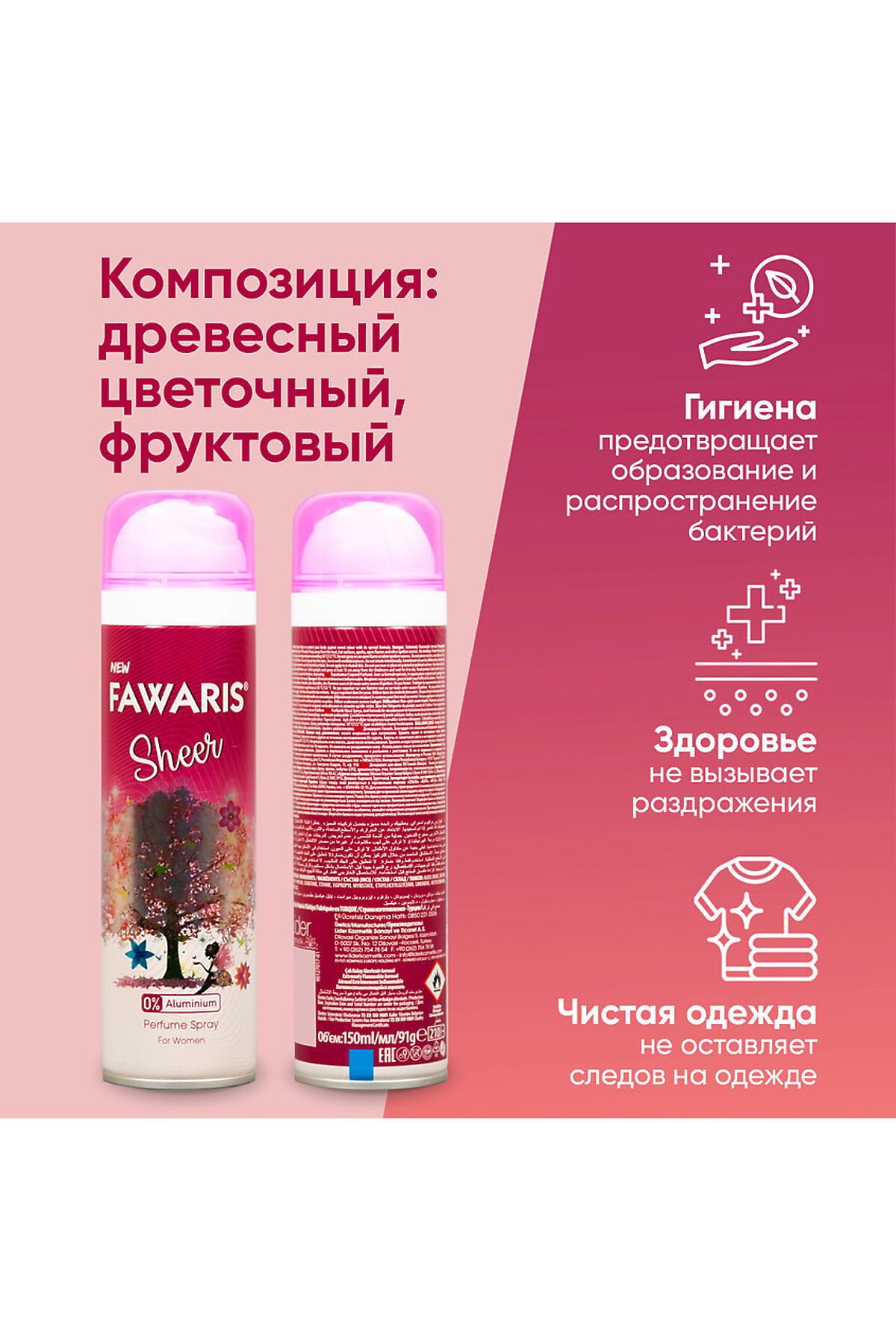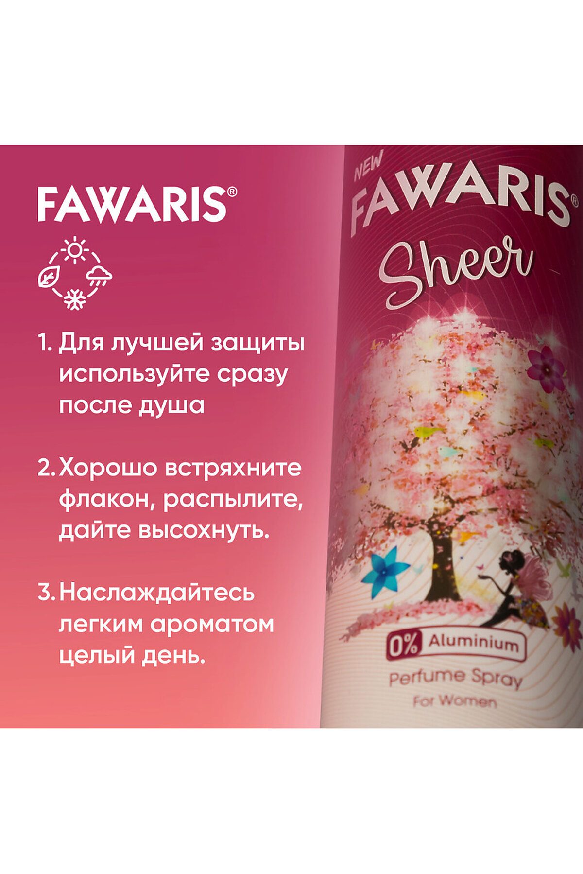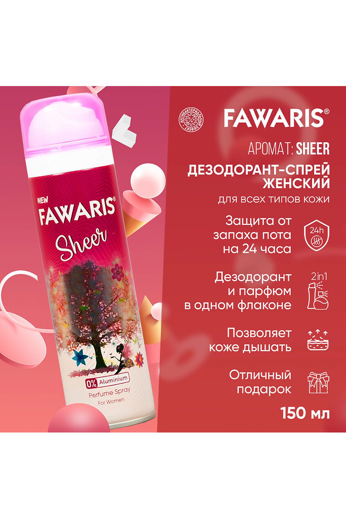 Дезодорант парфюмированный женский FAWARIS Sheer 150 мл с древесным и цветочно-фруктовым ароматом Аромат с гармоничным соединением древесных, цветочных и фруктовых нот создан специально для современной женщины, которая придерживается динамичного, энергичного образа жизни, оставаясь при этом романтиком. Sheer - женский аромат в линейке популярных и недорогих турецких парфюмированных спрей-дезодорантов Fawaris. Отлично справляется с неприятными запахами, подходит любому типу кожи, в том числе и чувствительной. Защитит от неприятного запаха на 24 часа. Sheer – аромат запада во всей красе, все это благодаря гармоничному соединению древесных, цветочных и фруктовых нот. Fawaris Sheer – ароматы для энергичных романтиков. Почувствуйте свежесть и уверенность весь день с нашим женским дезодорантом! Наш дезодорант женский спрей - это идеальное решение для женщин, которые ценят комфорт и надежность. Он обеспечивает эффективную защиту от неприятных запахов и пота, позволяя вам оставаться свежей и уверенной в любой ситуации. Наш женский дезодорант обладает превосходной формулой, которая не только предотвращает неприятные запахи, но и обеспечивает длительную свежесть. Его мягкая текстура легко наносится на кожу и быстро впитывается, не оставляя следов или ощущения липкости. Мы используем только натуральные и безопасные ингредиенты, которые бережно заботятся о вашей коже. Наш антиперсперант женский не содержит алюминия, парабенов или других вредных веществ, поэтому вы можете быть уверены в его безопасности и эффективности. Кроме того, наш дезодорант обладает приятным ароматом, который оставляет на вас свежий и женственный запах. Он создает приятную атмосферу и дарит вам уверенность в своей естественной красоте. Позвольте нашему женскому дезодоранту стать вашим надежным спутником в борьбе с неприятными запахами и потом. Вы будете чувствовать себя свежей и уверенной весь день, зная, что наш дезодорант заботится о вас. Закажите наш женский дезодорант прямо сейчас и наслаждайтесь свежестью и комфортом каждый день. Почувствуйте разницу и насладитесь уверенностью в своей естественной красоте! купить дезодорант, женский дезодорант, дезодорант без, дезодоранты для женщин, дезодорант без алюминия, купить женский дезодорант, рексона дезодорант женский, лучшие дезодоранты для женщин, безопасные дезодоранты, шариковый дезодорант женский, женский дезодорант спрей, лучшие женские дезодоранты, дезодорант без парабенов, дезодорант без алюминия и парабенов, дезодорант виши купить, дезодорант спрей купить, дезодорант рексона купить, дезодорант для подмышек женский, купить дезодорант олд спайс, дезодорант драй драй женский, где купить дезодорант, женский дезодорант цена, дезодорант цена женские, купить дезодорант на озон, безопасные дезодоранты для женщин, дезодорант твердый женский, дезодорант кристалл купить, дезодорант нивея купить, лучший женский дезодорант пота, какой женский дезодорант, дезодоранты олд спайс цены, дезодорант без солей, дезодорант драй драй цена, де