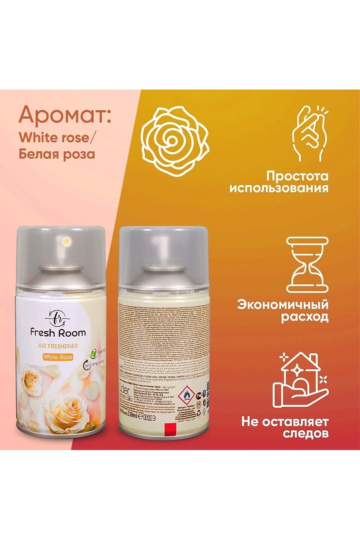 Освежитель воздуха Fresh Room Белая Роза 250 мл, Аэрозольный с фруктово-цветочным освежающим ароматом Хотите наполнить свой дом свежестью и чистотой? Тогда Fresh Room 250 мл — это то, что вам нужно! Освежитель воздуха Fresh Room "Белая роза" в формате аэрозоля (250 мл) наполняет пространство нежным и утончённым ароматом. Он борется с неприятными запахами, создавая атмосферу свежести и комфорта. Идеальное решение для дома и офиса, придающее уют и гармонию вашему окружению. Fresh Room — это ведущий бренд в области освежителей воздуха, созданный компанией, которая также производит косметику, парфюмерию и средства по уходу за домом. На протяжении многих лет Fresh Room радует своих потребителей оптимальным соотношением цены и качества. Широкий ассортимент ароматов позволяет подобрать идеальный запах для каждого помещения: кристально свежие ароматы для служебных комнат; утонченные и нежные — для спальни и гостиной; яркие и свежие десертные — для кухни и столовой; сдержанные и элегантные — для кабинета. Кроме того, в портфолио бренда представлены автоматические распылители, которые поддерживают заданную концентрацию ароматов без участия пользователя. Разнообразие сменных баллонов идеально дополняет функции автоматических освежителей Fresh Room. Вставьте сменный баллон в автоматический освежитель воздуха — и он будет автоматически распылять легкий ненавязчивый аромат с заданными интервалами, наполняя ваш дом естественной свежестью. Fresh Room 250мл — это сменный баллон, который способен превратить вашу обычную комнату в настоящий оазис благоухания. С его помощью вы сможете избавиться от неприятных запахов и создать приятную атмосферу в любом помещении. Освежитель Fresh Room мгновенно распространяет свежий и приятный аромат, наполняя комнату ненавязчивым и долговременным благоуханием. Его стильный дизайн и компактный размер позволяют легко интегрировать его в любой интерьер. Кроме того, Fresh Room 250мл — это экономичный вариант, который обеспечит вам длительное использование. Его сменный баллон оснащен надежным механизмом, который выделяет аромат по вашему желанию, позволяя контролировать интенсивность запаха. Создайте идеальную атмосферу, которая поможет вам расслабиться и насладиться уютом своего дома! освежитель воздуха, освежитель воздуха купить, освежитель воздуха для дома, освежитель воздуха для туалета, сменный освежитель воздуха, освежитель воздуха мл, освежитель воздуха air, какой освежитель воздуха, освежители воздуха для дома автоматический, запахи освежителя воздуха, распыление освежителей воздуха, освежитель воздуха цена, лучшие освежители воздуха, освежитель воздуха 300, домашний освежитель воздуха, освежитель воздуха airwick, освежитель воздуха 300 мл, аэрозольный освежитель воздуха, распылитель освежителя воздуха, освежитель воздуха 300мл, автоматический освежитель воздуха air wick, освежитель воздуха свежесть, освежитель воздуха 250мл, освежители воздуха красный, освежитель воздуха фреш, fresh room, освежитель воздуха хвойный,