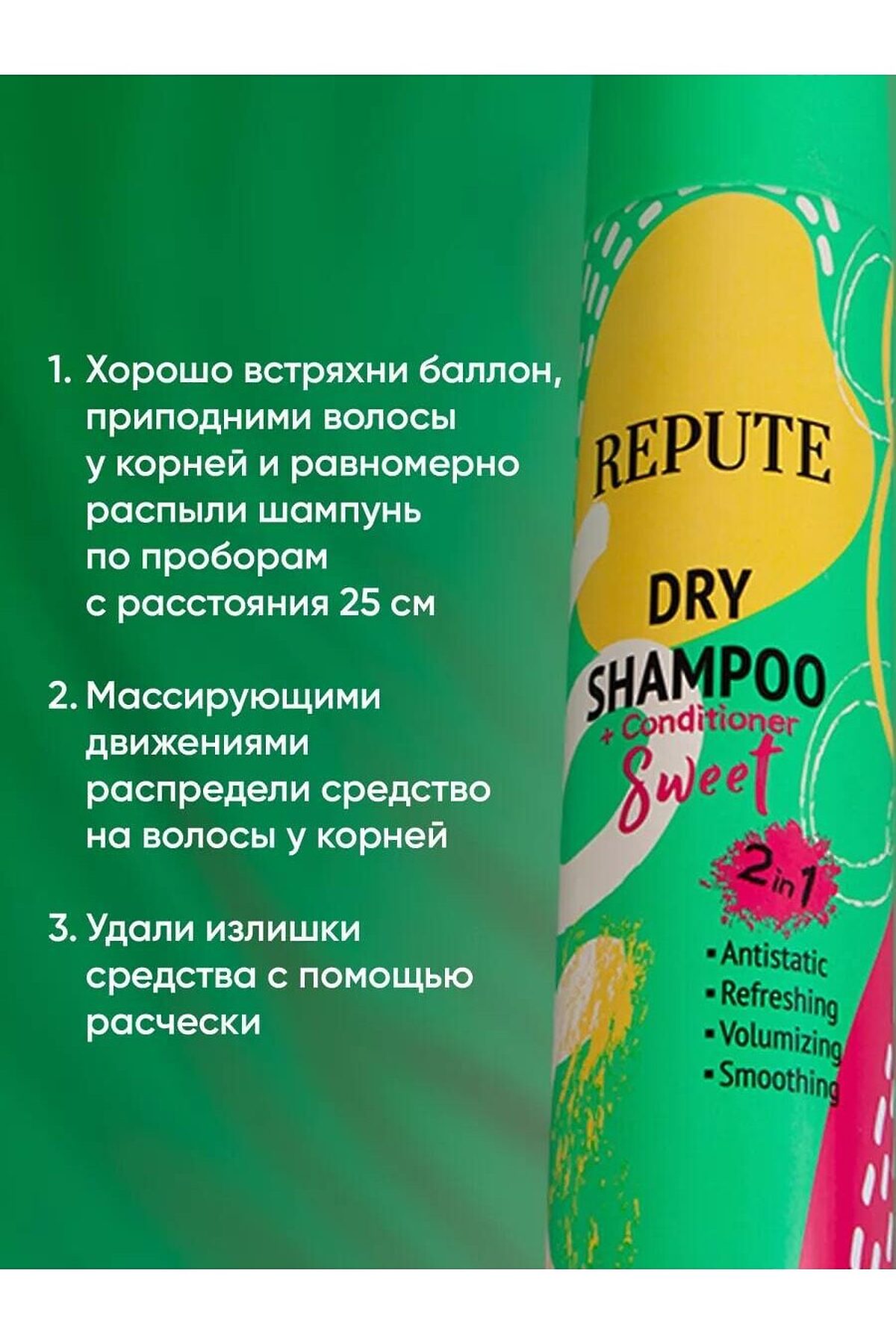 Шампунь сухой для волос Repute Sweet 200 мл (Шампунь+кондиционер: Придаёт объём и освежает) Прекрасная альтернатива обычному шампуню. Легко и эффективно очищает волосы без использования воды. Легко распыляется. Мгновенно освежает укладку. Мягкая формула не сушит волос. Шампунь сухой для волос Repute Sweet объемом 200 мл – это идеальное средство для тех, кто стремится к свежему виду волос без лишних усилий. Сочетая в себе свойства шампуня и кондиционера, он обеспечивает мгновенное очищение и восстановление, помогая поддерживать ухоженный вид прически в любое время дня. Этот сухой шампунь отличается уникальной формулой, которая эффективно устраняет излишки жира и загрязнения, добавляя объем и текстуру. При использовании продукта волосы выглядят свежими и опрятными, что особенно важно в условиях городской суеты или во время путешествий. Основные активные компоненты в составе шампуня разработаны для бережного ухода за волосами. Натуральные экстракты, входящие в его формулу, помогают увлажнить и укрепить волосы, не переутомляя их. В отличии от традиционных шампуней, продукт не содержит парабенов и сульфатов, что делает его безопасным для регулярного применения, включая чувствительную кожу головы. Чтобы использовать сухой шампунь Repute Sweet, просто распылите небольшое количество на корни сухих волос, подождите несколько минут и аккуратно помассируйте. Это действие мгновенно освежит вашу прическу и придаст ей дополнительный объем, экономя время на укладку. Сухой шампунь Repute Sweet станет вашим верным спутником в любой ситуации: на работе, учёбе или во время активного отдыха. Его компактный формат позволяет легко носить с собой в сумке или рюкзаке, обеспечивая мгновенный доступ к освежающему средству. Откройте для себя мир свежести и заботы с сухим шампунем Repute Sweet, который подарит вам мгновенный результат и уверенность в себе в любой момент! ollin perfect hair сухой шампунь оптом, дешевый сухой шампунь для волос, клоран сухой шампунь цена, лучшие дешевые сухие шампуни для волос, сухая шампунь для волос как пользоваться цена, сухая шампунь для волос отзывы цены, сухая шампунь для кошек отзывы цена, сухая шампунь для кошек цена, сухие шампуни дешево, сухой шампунь batiste цена, сухой шампунь bead head оптом, сухой шампунь day 2 оптом, сухой шампунь repute, сухой шампунь акции, сухой шампунь батист оригинал цена, сухой шампунь батист цена, сухой шампунь в аптеке цена, сухой шампунь дав цена, сухой шампунь для волос купить цена, сухой шампунь для волос магнит косметик цена, сухой шампунь для волос фаберлик цена, сухой шампунь для волос цена, сухой шампунь как пользоваться цена, сухой шампунь купить цена, сухой шампунь магнит косметик цена, сухой шампунь оптом, сухой шампунь отзывы цена, сухой шампунь прелесть цена, сухой шампунь скидки, сухой шампунь улыбка радуги цена, сухой шампунь фаберлик цена, сухой шампунь цена, сухой шампунь цена в магнит, сухой шампунь шамту цена, сухой шампунь шварцкопф цена, цена сухого шампуня гринвей