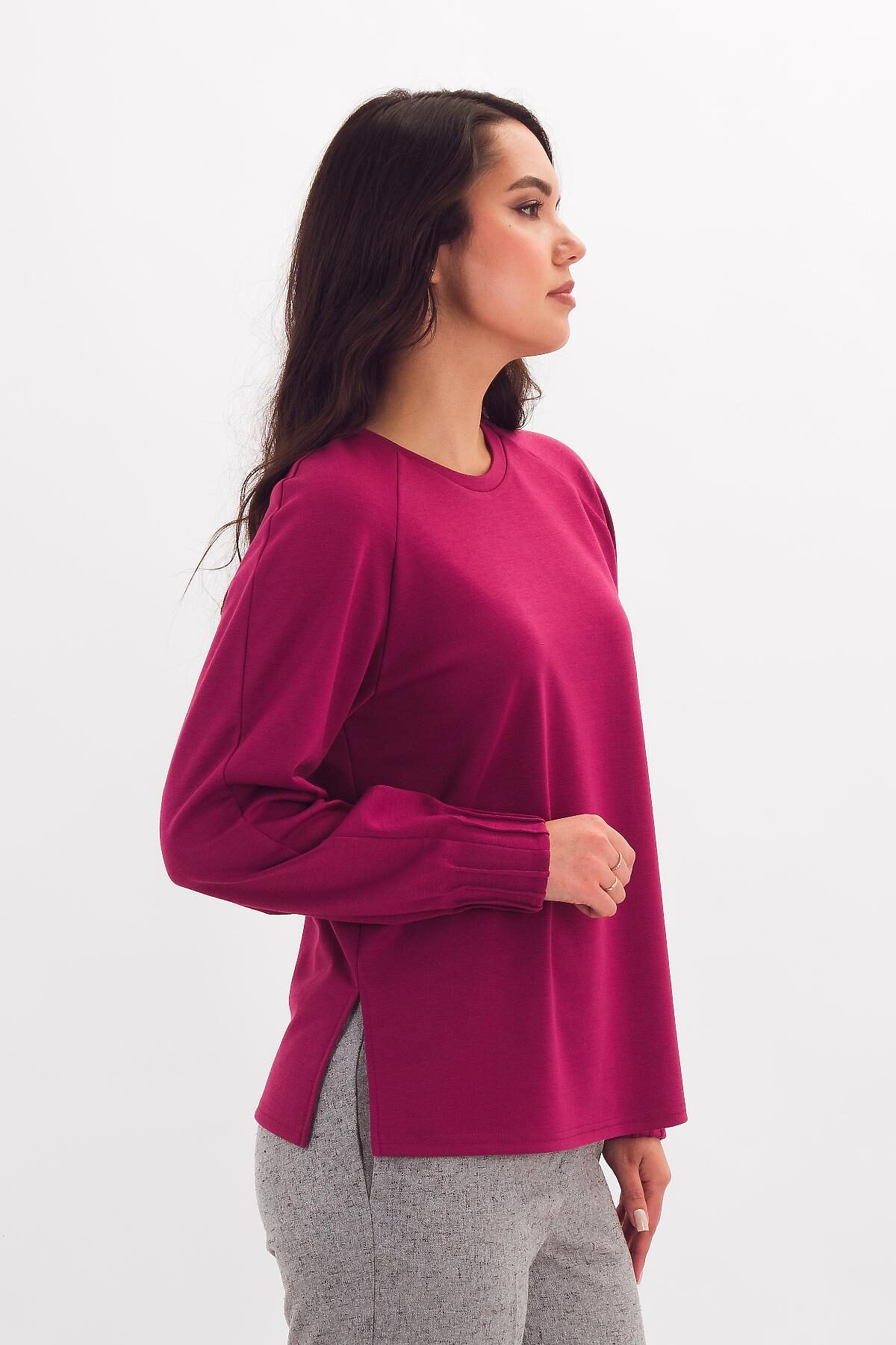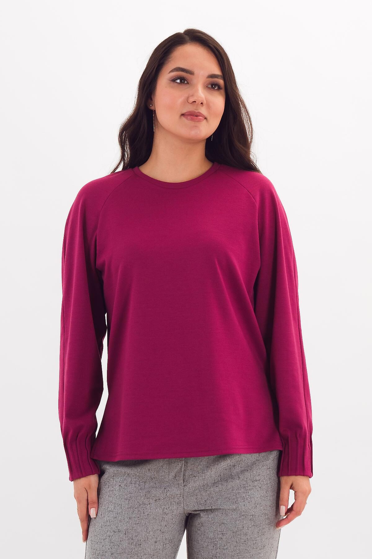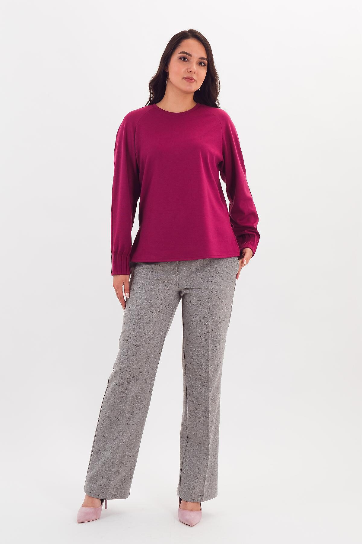 Стильный джемпер прямого силуэта обеспечит вам комфорт в движении, благодаоря разрезам по боковым швам изделиия. А защипы по низу рукава-ренглан - добавят в ваш образ оригинальности.