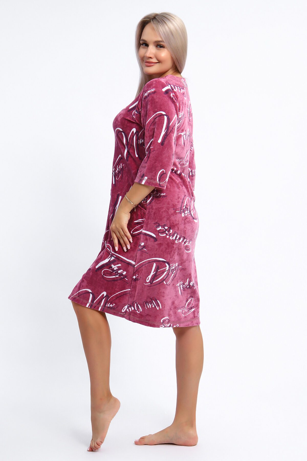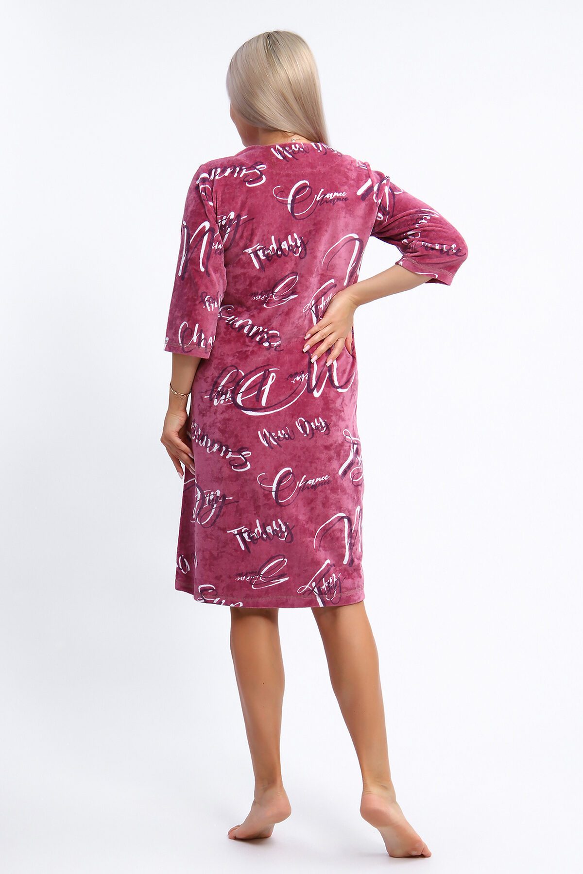Халат женский на молнии из набивного велюра полуприлегающего силуэта. Горловина халата имеет V-образный вырез, обработана обтачкой, рукав 3/4, карманы. Халат прекрасно подойдет для дома и отдыха.