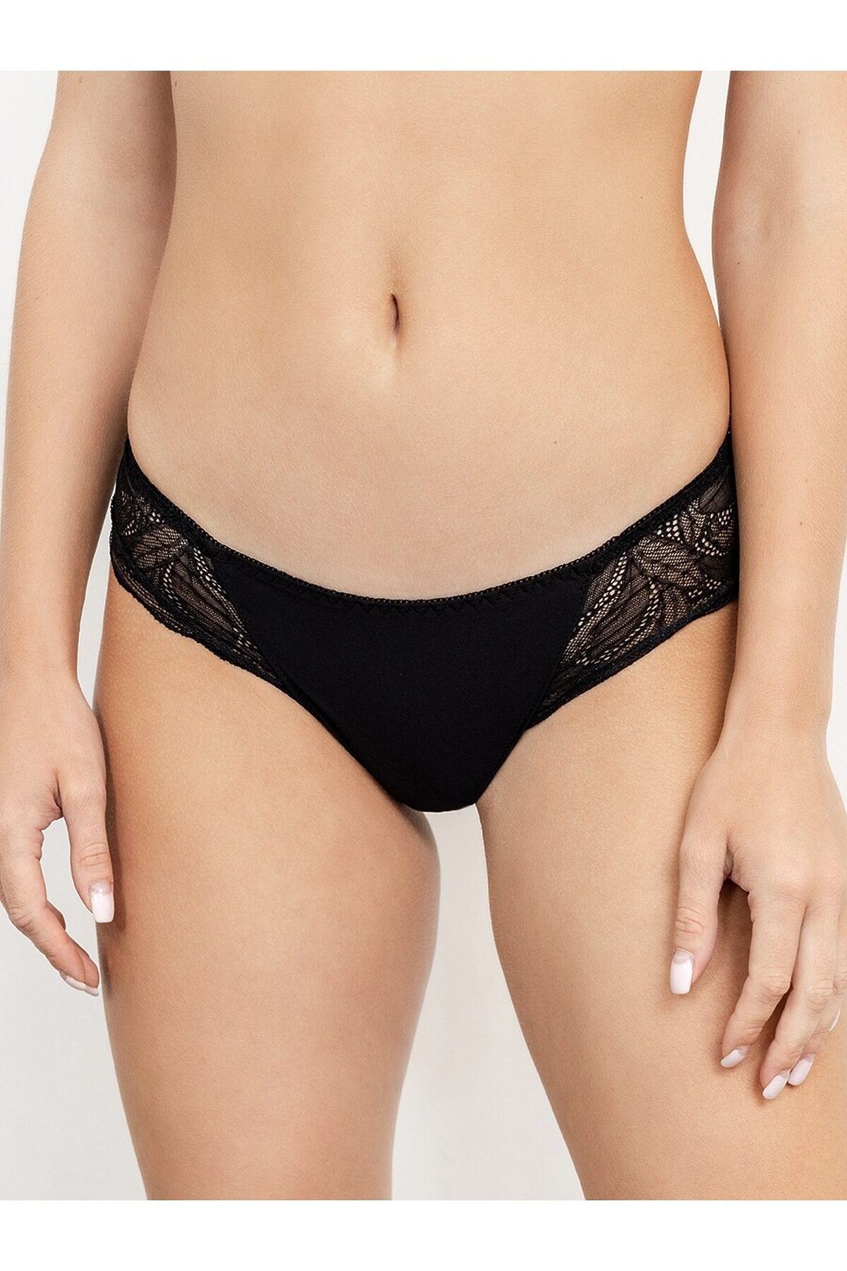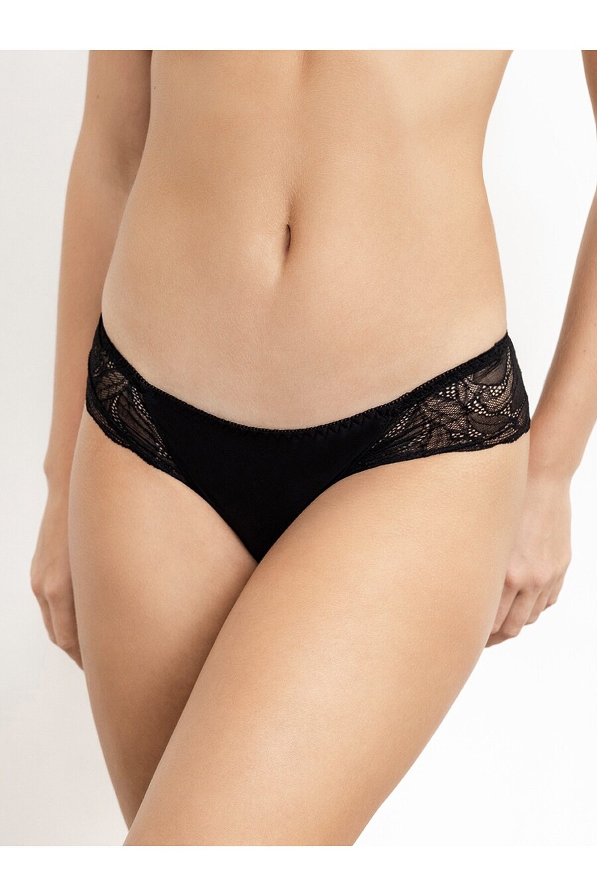 Элегантные трусики-бразилиана из ультратонкой микрофибры. Посадка по талии слегка занижена. По поясу проходит эластичная тесьма. Боковые и задняя части имеют фигурный край и выполнены из эластичного кружева.