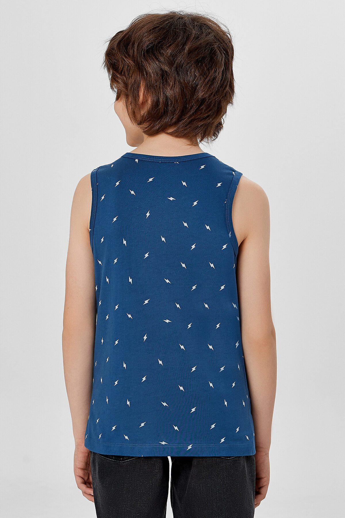 Майка полуприлегающего силуэта из хлопковой трикотажной кулирки. Длина до середины бедер. Горловина круглая, окантована мягкой бейкой. Нижний срез обработан плоским швом. Комфортная классика для вашего мальчика!