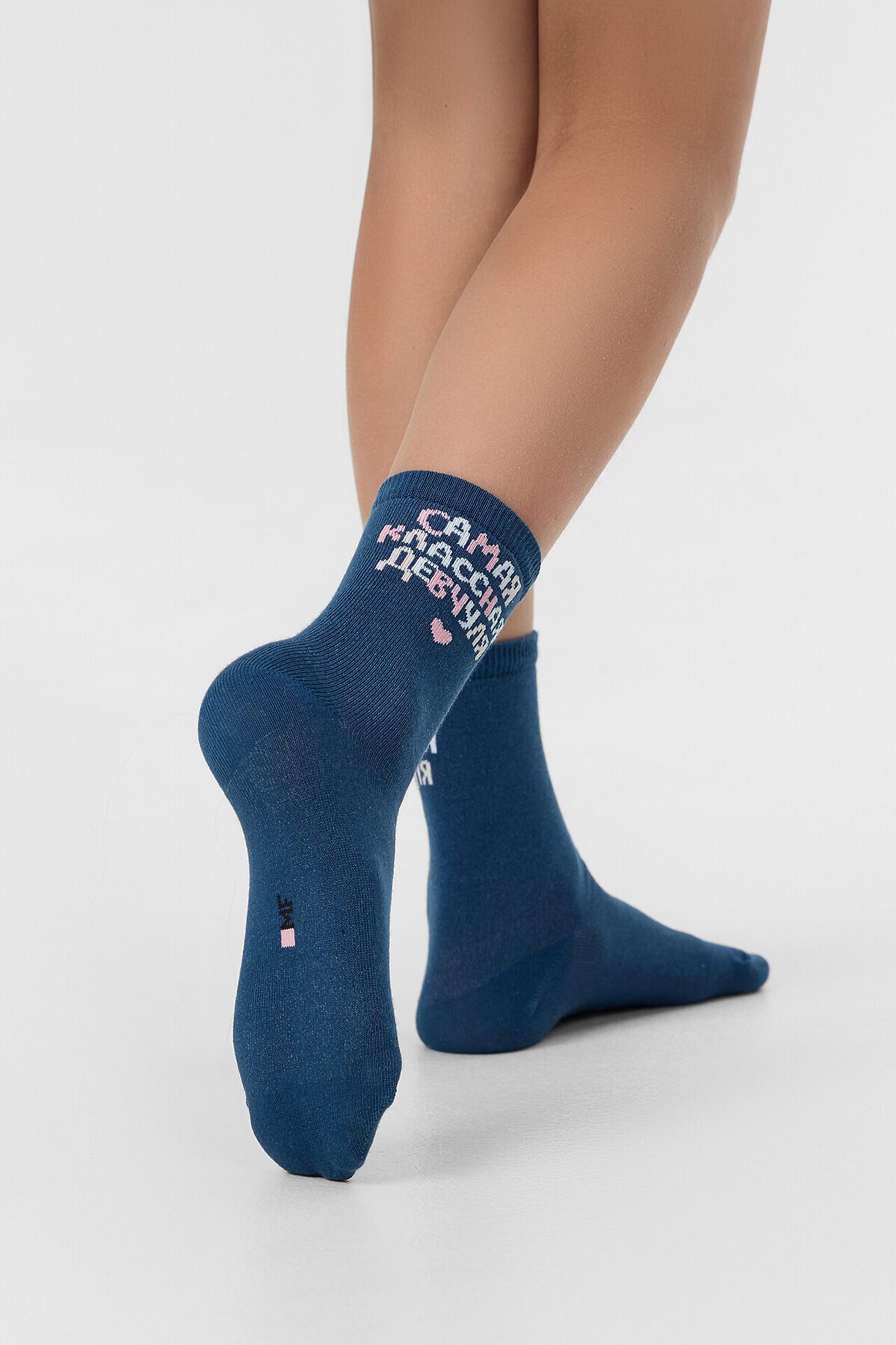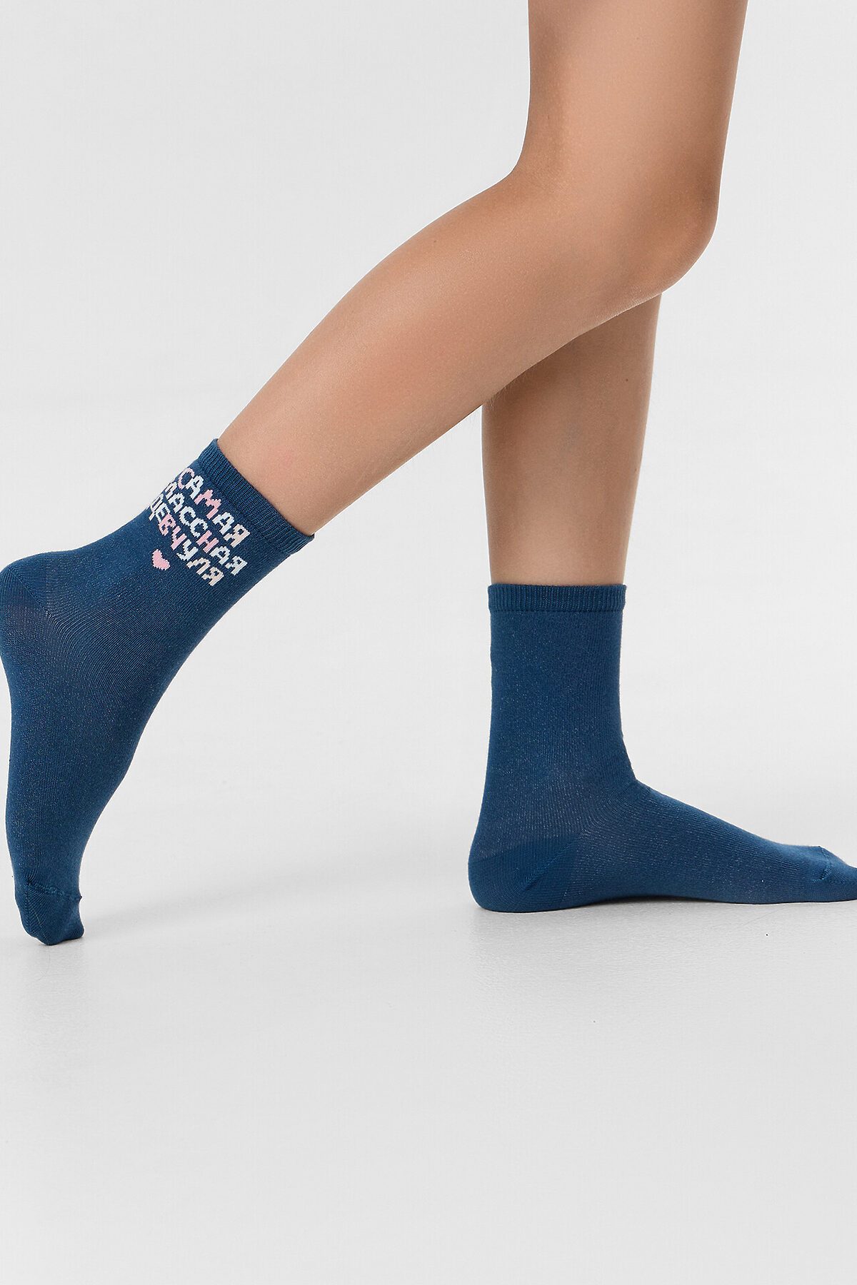 рис.3061 Детские классические носки с рисунком в виде надписи "Самая классная девчуля".