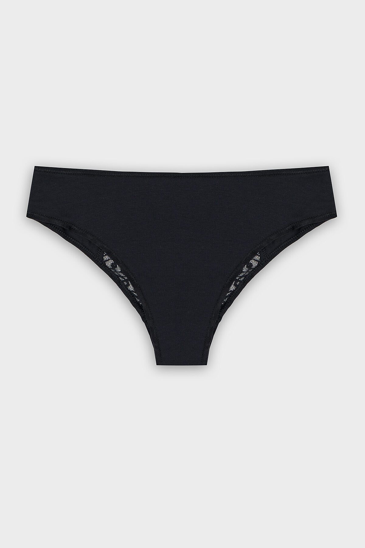 Трусы женские, средняя линия талии, силуэт - бразилиана, выполнены из трикотажного кулирного полотна в сочетании с эластичным кружевом. Передняя деталь цельная. Подкладка ластовицы из основного полотна, отлетная по верхнему срезу. Задняя деталь со средним швом, декорирована эластичным кружевом. В верхней части выполнено декоративное отверстие. Срезы кружева обработаны эл тесьмой 6 мм (жилка тканая Wt4-6 , девсел 13460 W). Верхний и нижние срезы обработаны эл тесьмой 6 мм(жилка тканая Wt4-6, девсел 13460W) с лицевой стороны с п/ш с верхним застилом в край. Тесьма по талии сзади соединяется через пластиковое кольцо 10 мм.