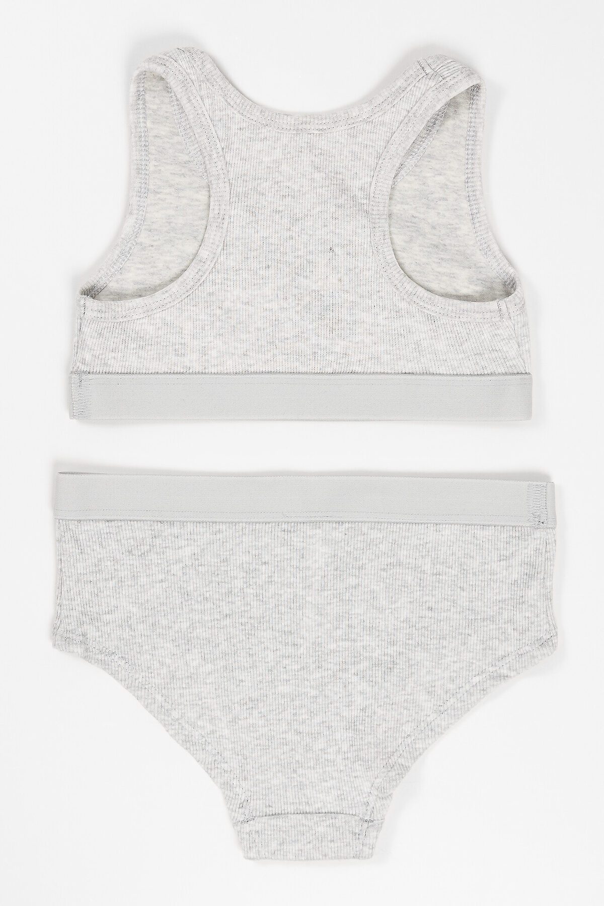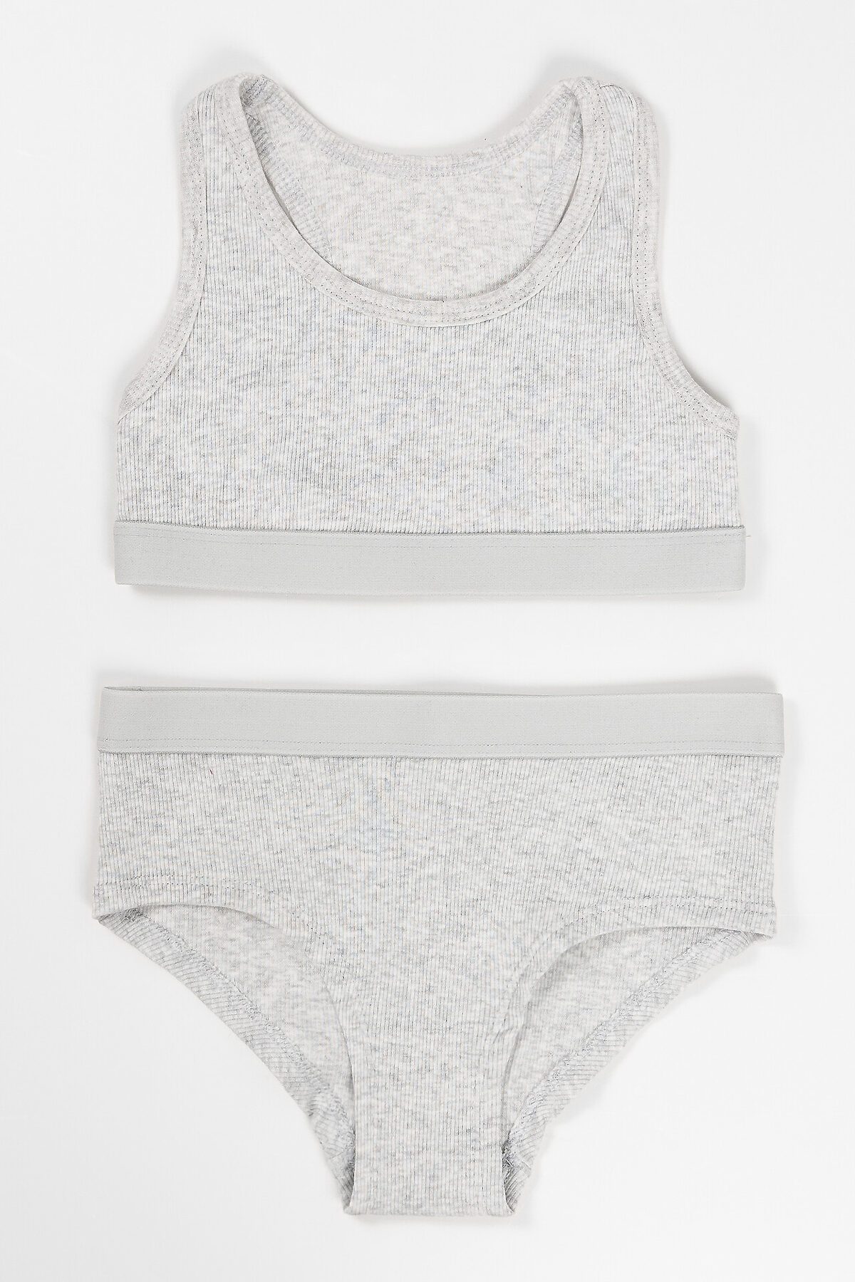 Трусики выполнены из того же дышащего материала, что и топ. Мягкая обработка швов предотвращает натирание, а эластичная тесьма по верхнему краю надежно фиксирует изделие. Комплект нижнего белья для девочки подходит для повседневной носки, занятий спортом или отдыха.