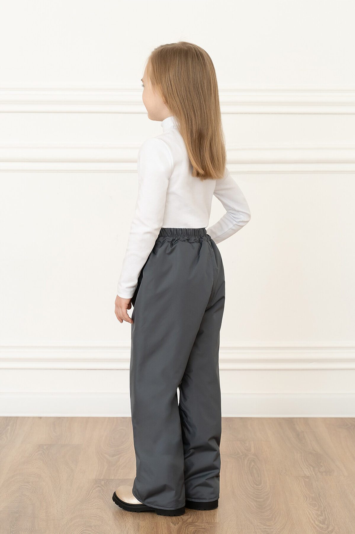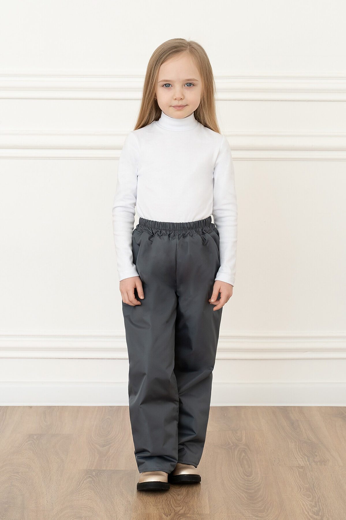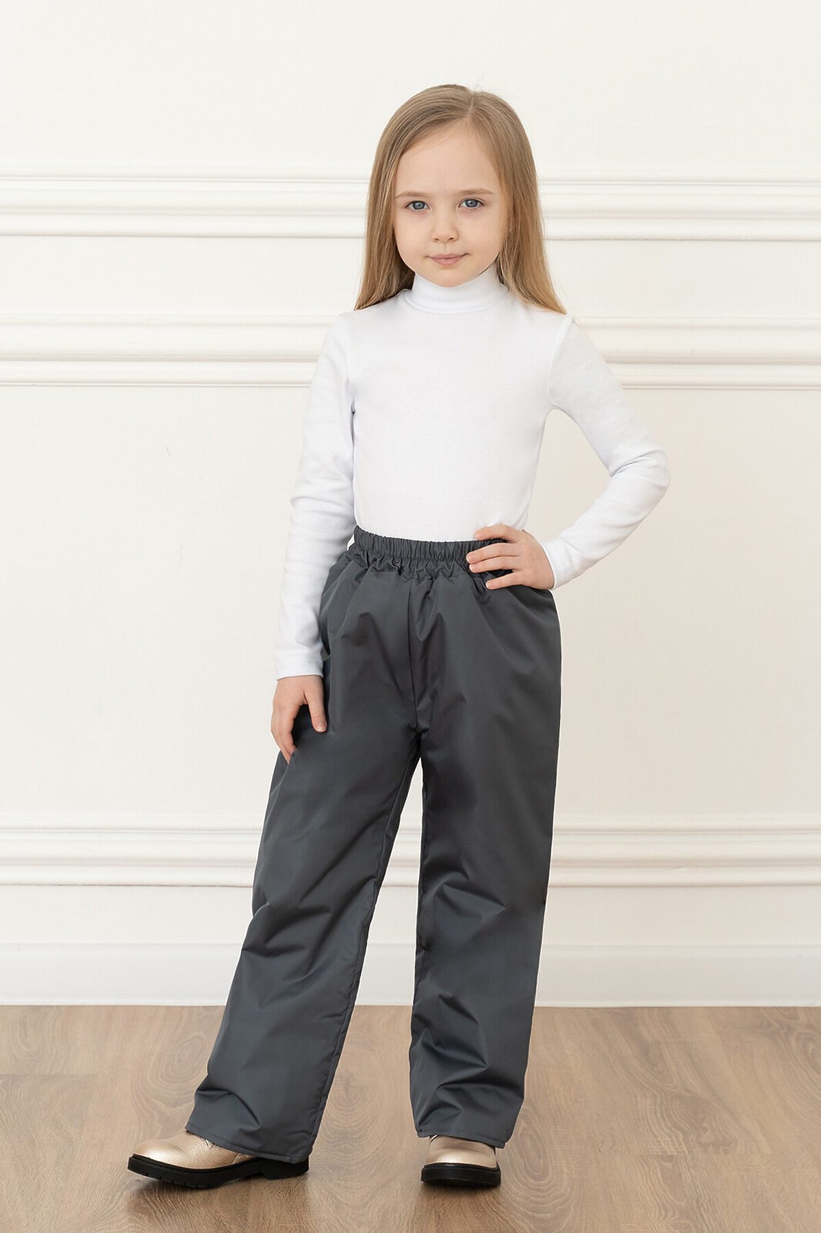 Удобные демисезонные брюки. В пояс вшита резинка. Размер можно отрегулировать, сделав на штанинах отвороты нужной длины. Выпускаются в однотонном сером цвете. >
