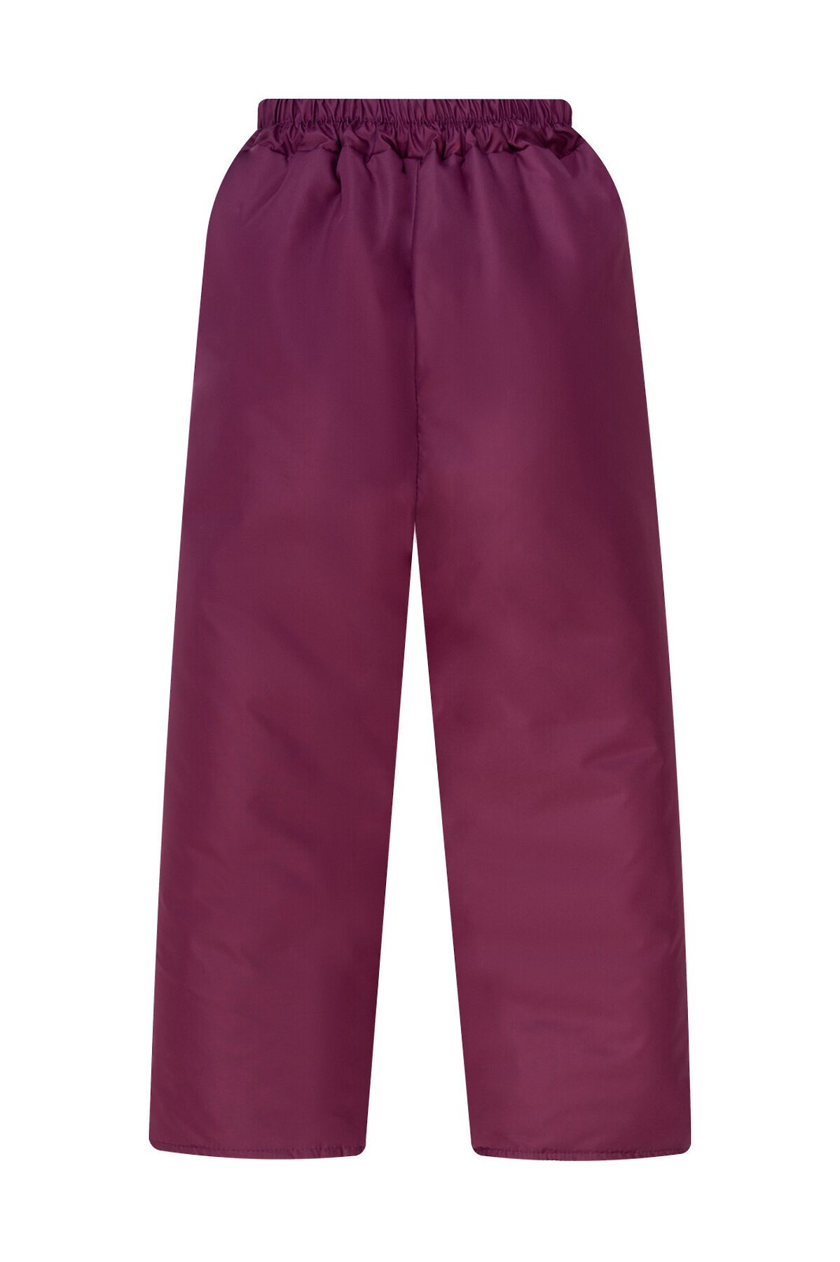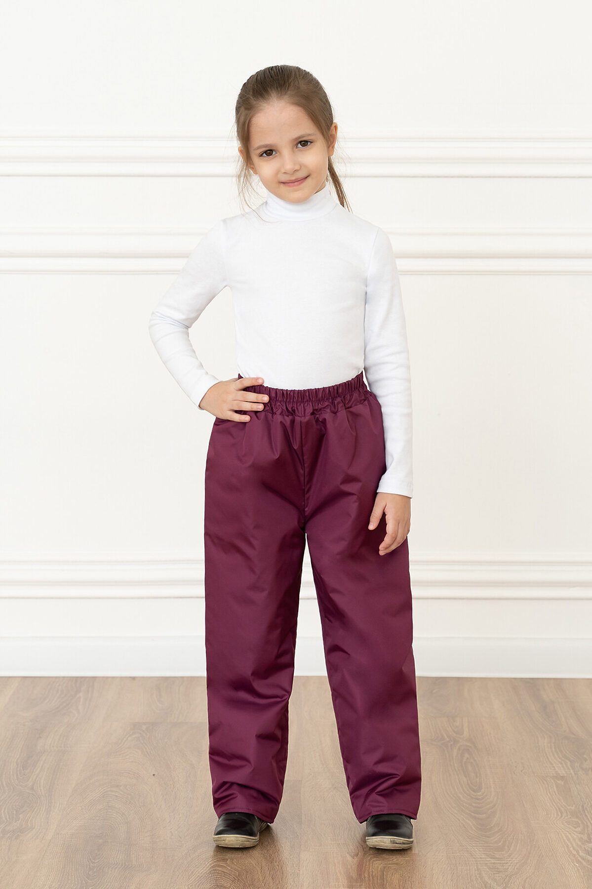 Удобные демисезонные брюки. В пояс вшита резинка. Размер можно отрегулировать, сделав на штанинах отвороты нужной длины. Выпускаются в однотонном пурпурном цвете. >