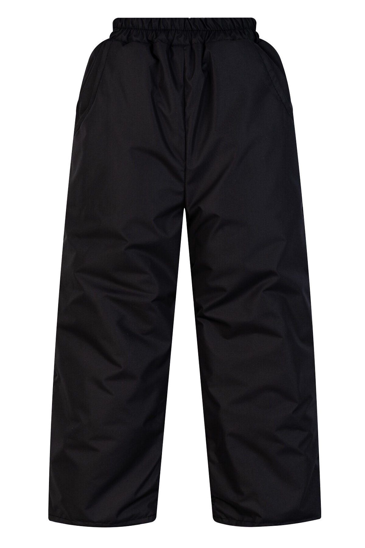 Демисезонные детские черные брюки из современных качественных материалов. Низ штанин подворачиваются на нужную длину, на отворотах подклад без флиса. По бокам расположены небольшие кармашки, в пояс брюк вдета резинка. На задней нижней части одной из штанин есть светоотражающая полоса.>