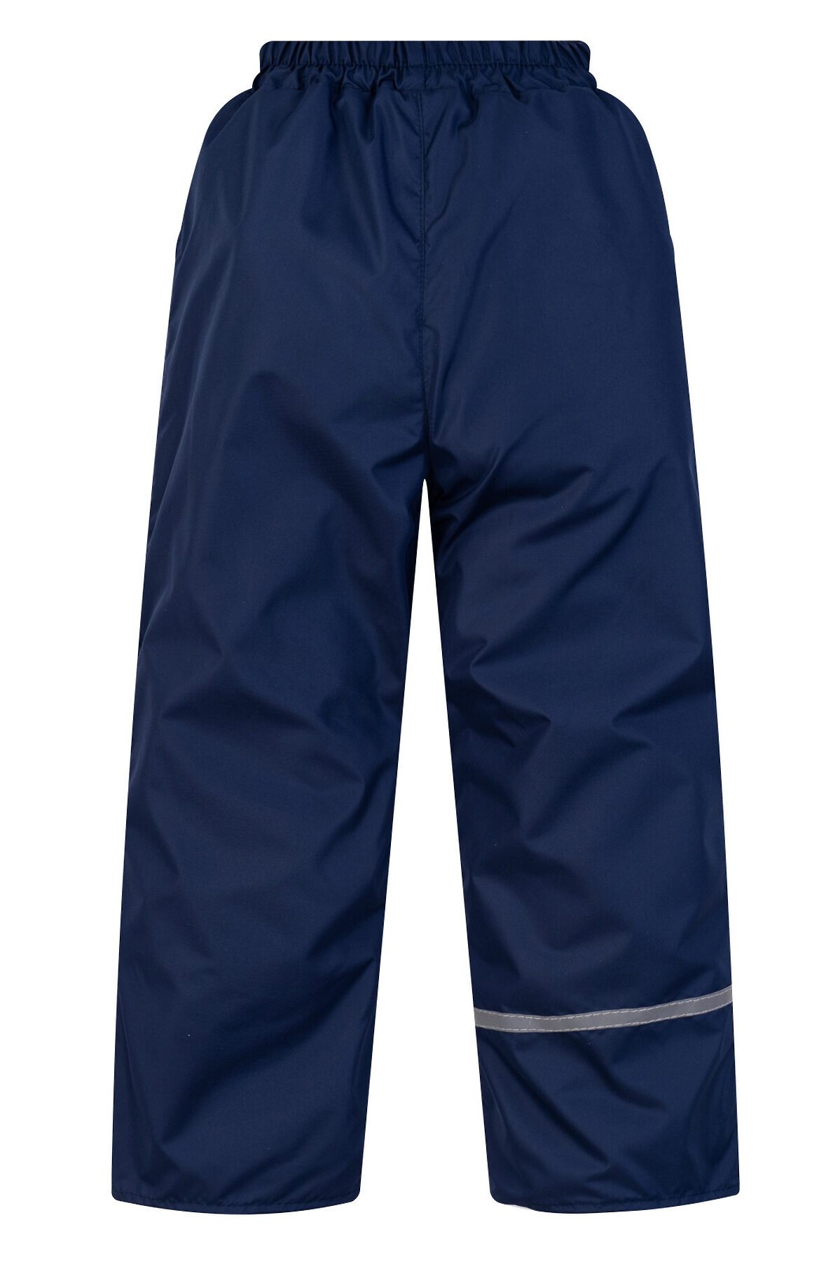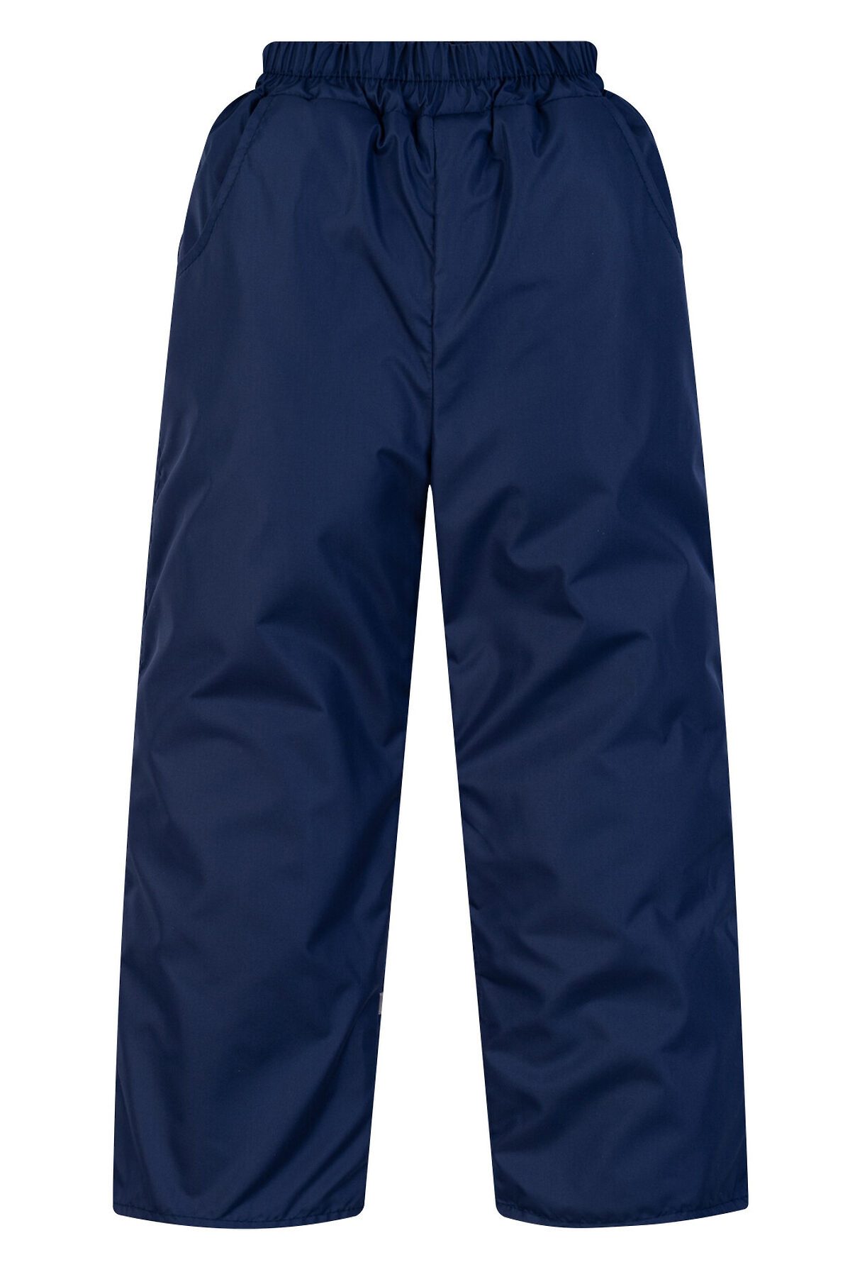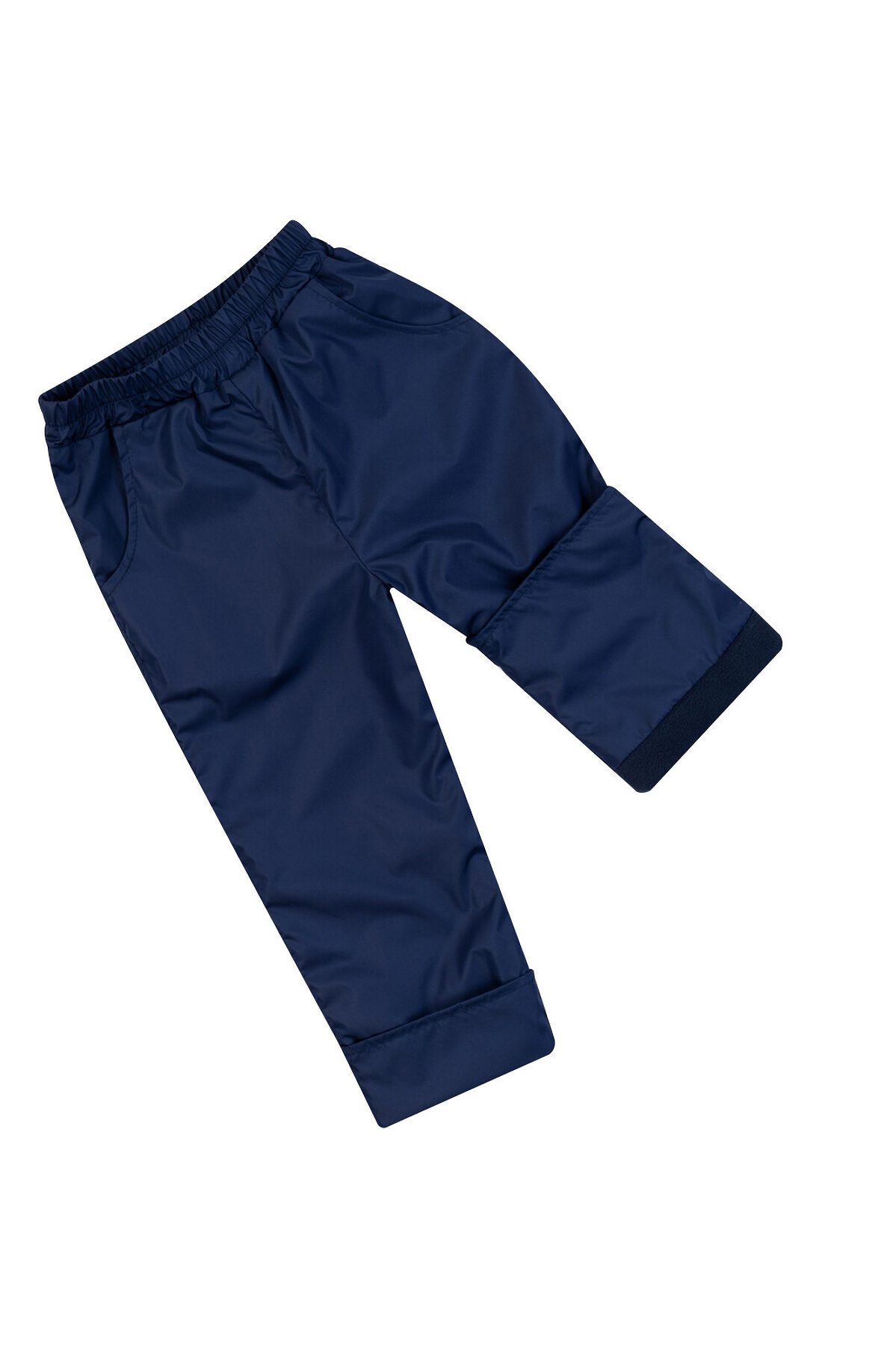 Демисезонные детские брюки из современных качественных материалов синего цвета. Низ штанин подворачиваются на нужную длину, на отворотах подклад без флиса. По бокам расположены небольшие кармашки, в пояс брюк вдета резинка. На задней нижней части одной из штанин есть светоотражающая полоса.>