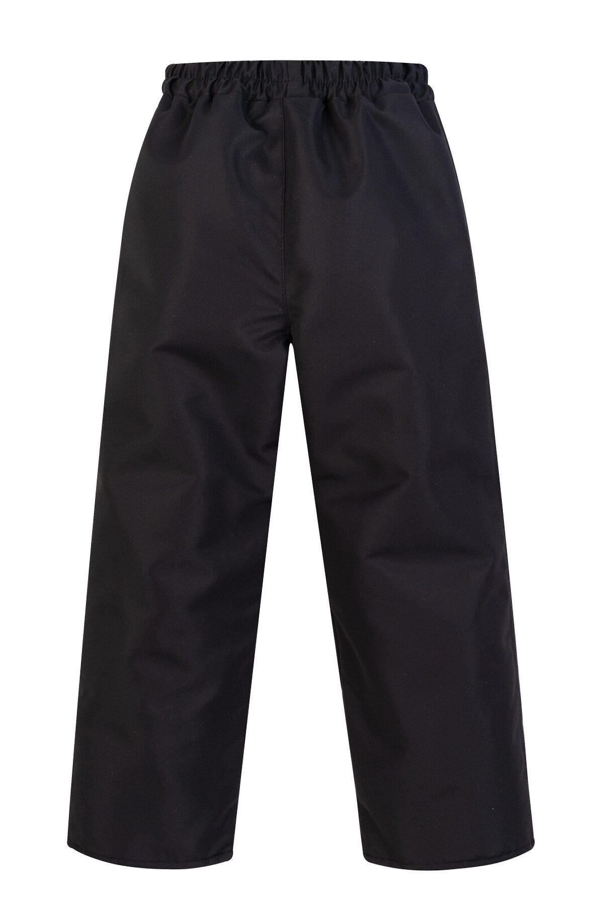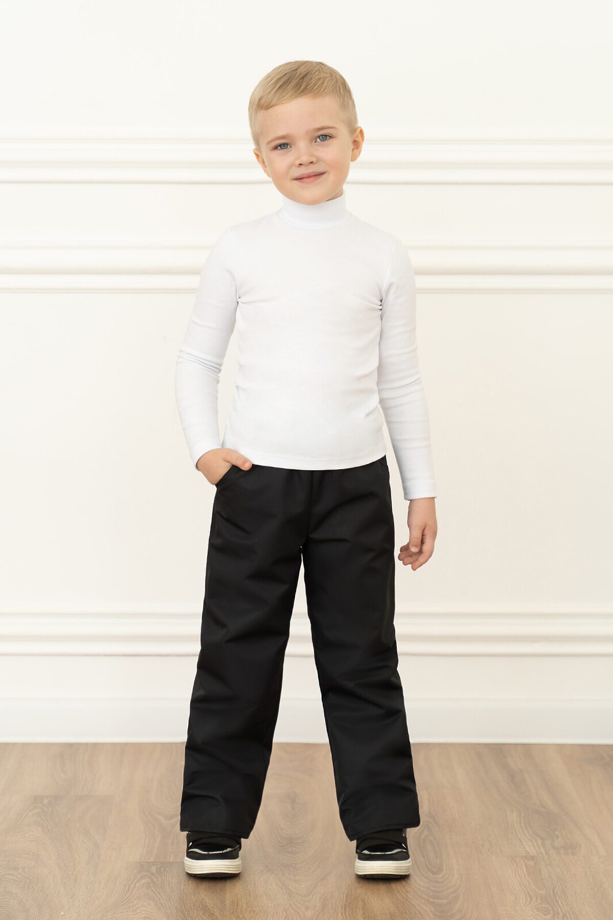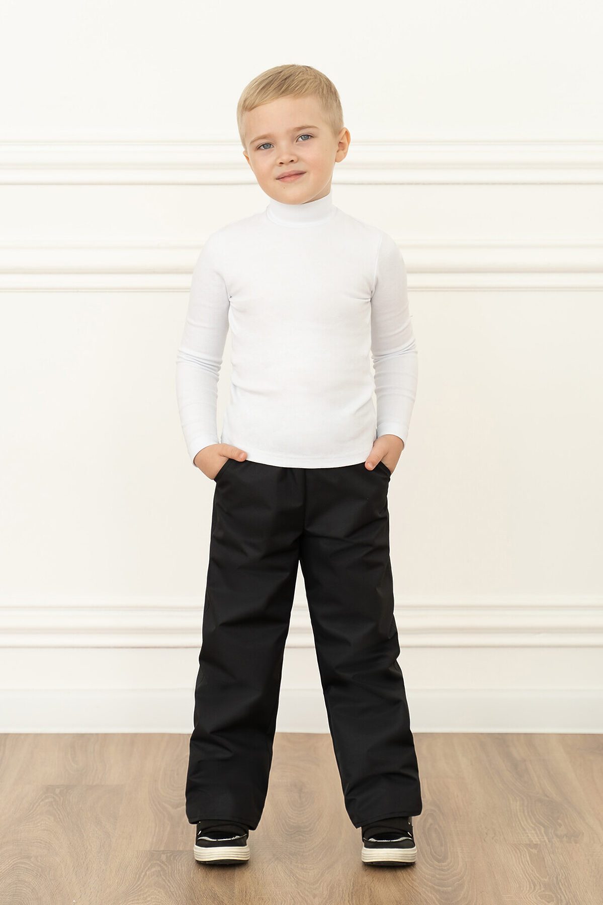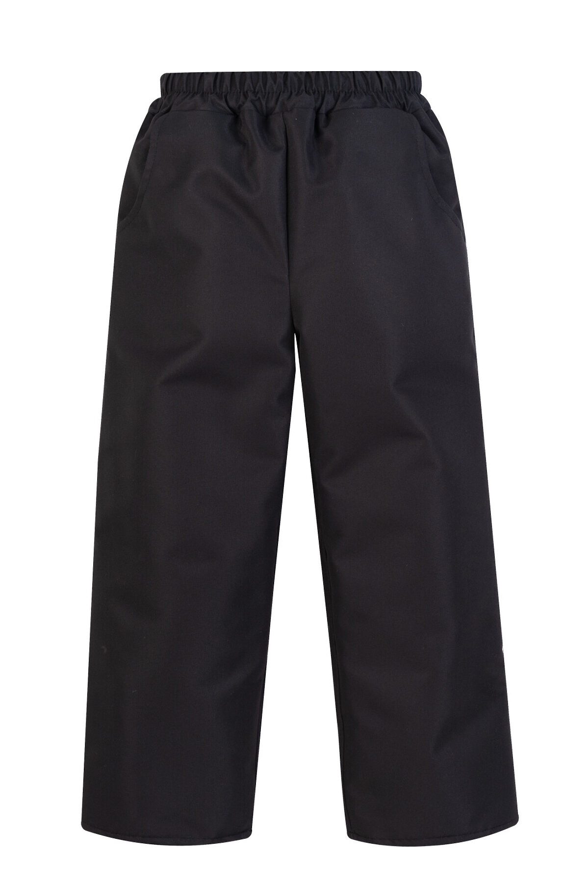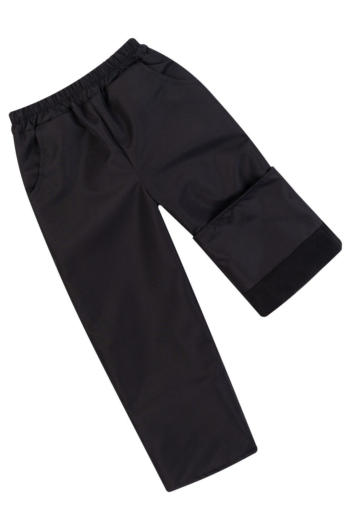 Практичные демисезонные брюки. Штанины можно подвернуть, отрегулировав отворотами нужную длину. В пояс вшита широкая резинка. По бокам карманы. Выпускаются в однотонном черном цвете.>